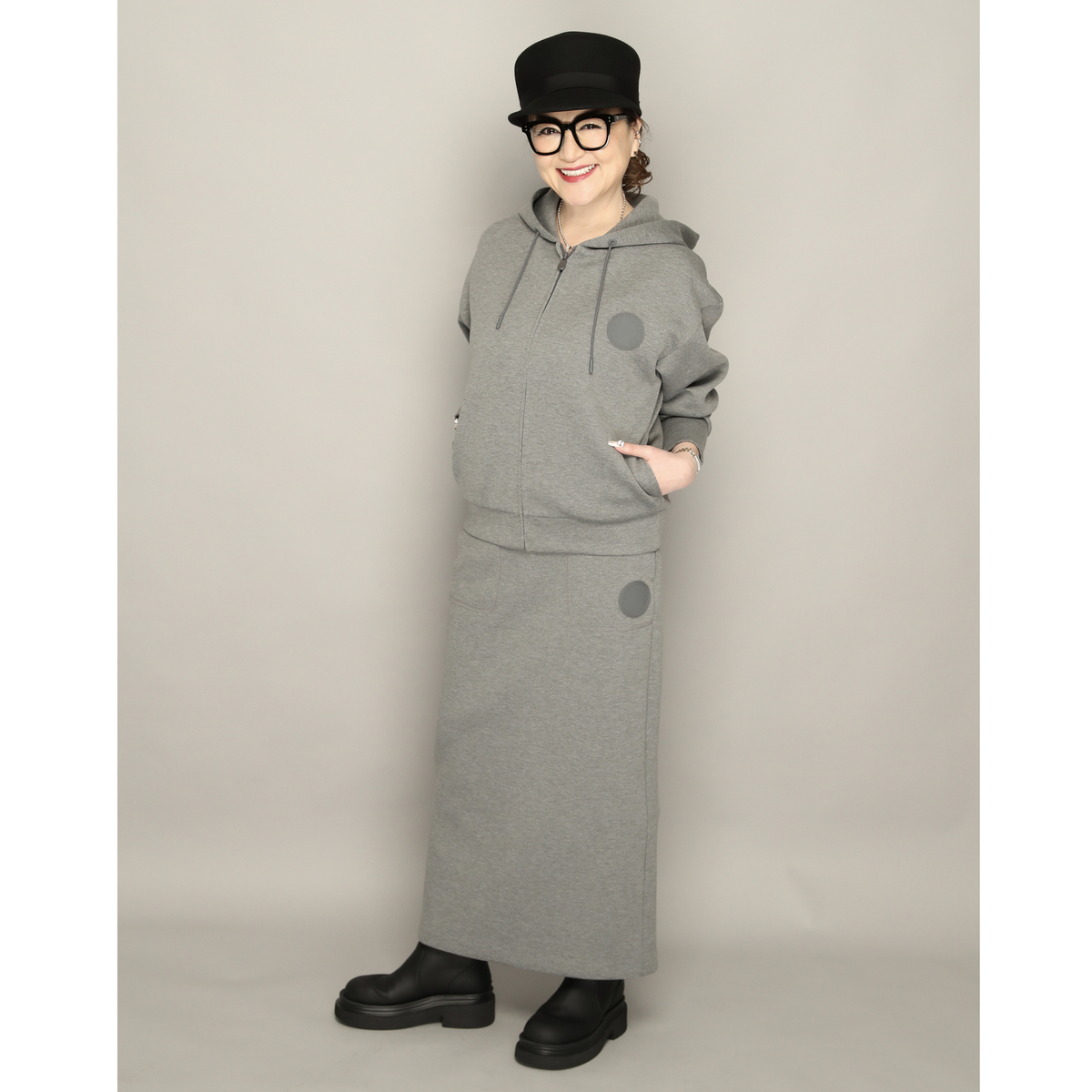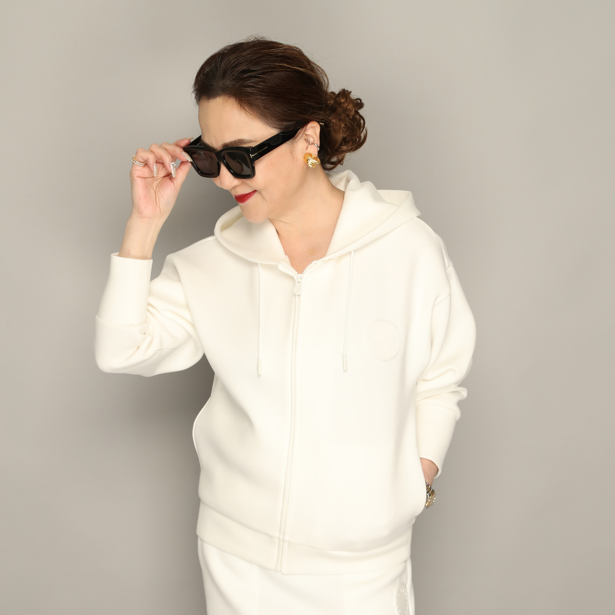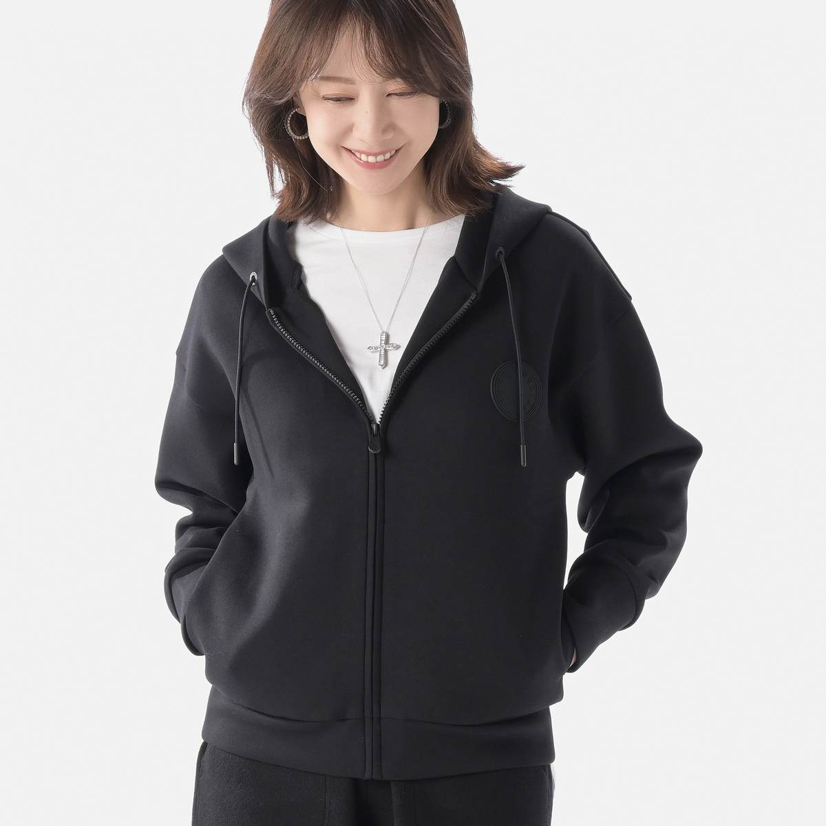 ファスナー引手やループエンドにもロゴを入れ、細部までこだわった仕様。同素材のスカートとセットアップコーデも楽しめます