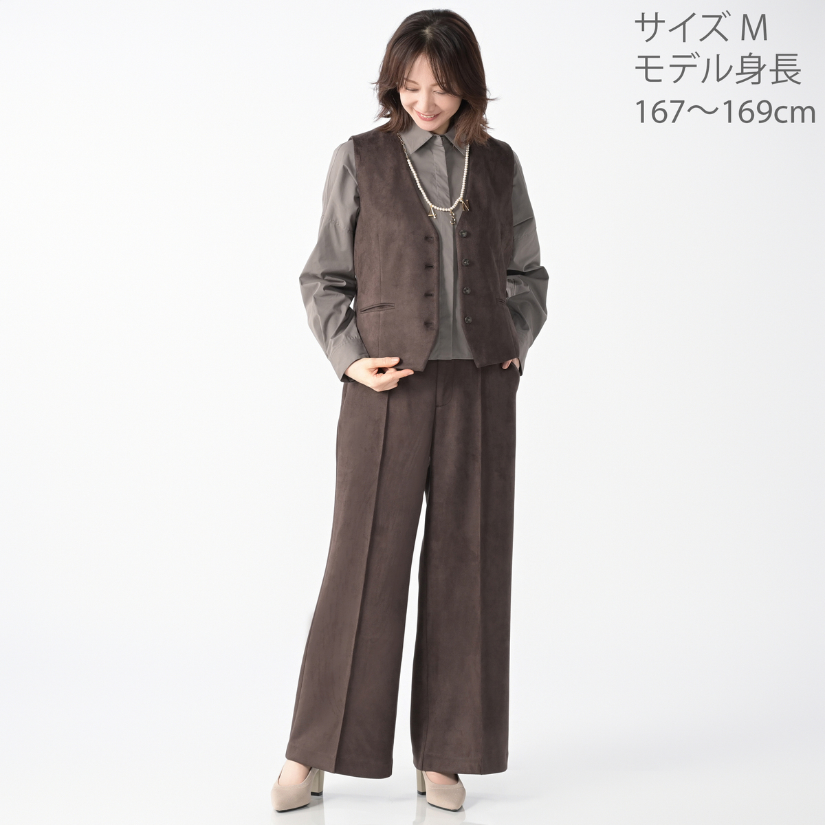 No. 749267 Anne Coquine ストレッチフェイクスウェードワイドパンツ