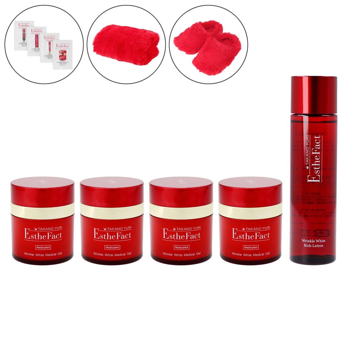 [セット内容] ・薬用モイストジェルS(医薬部外品)50g×4 ・薬用N化粧水na CN(医薬部外品)150mL <プレゼント> ・薬用N美容液na CN (医薬部外品)1.5mL ・薬用N化粧水na CN (医薬部外品)2mL ・エステファクト リンクルホワイトプロテクトエッセンス (医薬部外品)1g ・薬用モイストジェルS(医薬部外品)2g ・オリジナルブランケット ・オリジナルスリッパ [ブランケット詳細] サイズ:幅89×高さ60cm 重量:約460g [スリッパ詳細] 対応サイズ:22.5〜26cm 重量:約125g(両足) ■医薬部外品 ・薬用モイストジェルS(肌あれ・あれ性。油性肌。日やけ・雪やけ後のほてりを防ぐ。あせも・しもやけ・ひび・あかぎれ・にきびを防ぐ。かみそりまけを防ぐ。メラニンの生成を抑え、しみ、そばかすを防ぐ。皮膚にうるおいを与える。皮膚をすこやかに保つ。シワを改善する。肌をひきしめる。肌を整える。肌を清浄にする ・薬用N化粧水na CN(シワを改善する。メラニンの生成を抑え、しみ、そばかすを防ぐ。肌あれ。あれ性。あせも・しもやけ・ひび・あかぎれ・にきびを防ぐ。油性肌。かみそりまけを防ぐ。日やけ・雪やけ後のほてりを防ぐ。肌をひきしめる。肌を清浄にする。肌を整える。皮膚をすこやかに保つ。皮膚にうるおいを与える) ・薬用N美容液na CN:シワを改善する。メラニンの生成を抑え、しみ、そばかすを防ぐ。肌あれ。あれ性。あせも・しもやけ・ひび・あかぎれ・にきびを防ぐ。油性肌。かみそりまけを防ぐ。日やけ・雪やけ後のほてりを防ぐ。肌をひきしめる。肌を清浄にする。肌を整える。皮膚をすこやかに保つ。皮膚にうるおいを与える) ・エステファクト リンクルホワイトプロテクトエッセンス(シワを改善する。メラニンの生成を抑え、しみ、そばかすを防ぐ。肌あれ。あれ性。あせも・しもやけ・ひび・あかぎれ・にきびを防ぐ。油性肌。かみそりまけを防ぐ。日やけ・雪やけ後のほてりを防ぐ。肌をひきしめる。肌を清浄にする。肌を整える。皮膚をすこやかに保つ。皮膚にうるおいを与える。皮膚を保護する。皮膚の乾燥を防ぐ) 【日本製(ブランケット、スリッパは中国製)】 [注意事項] ※お肌に異常が生じていないかよく注意して使用してください ※天然由来の成分を使用しているため色調、香調に変化が見られる場合がありますが、品質に問題ありません ※化粧品がお肌に合わないとき、すなわち次のような場合は、使用を中止してください。そのまま化粧品類の使用を続けますと、症状を悪化させることがありますので、皮ふ科専門医等にご相談されることをおすすめします (1)使用中、赤み、はれ、かゆみ、刺激、色抜け(白斑等)、黒ずみ、眼に異物感が残る等の場合 (2)使用したお肌に、直射日光があたって上記のような異常があらわれた場合 ※傷やはれもの、しっしん等、異常のある部位にはお使いにならないでください ※目に入ったときは、直ちに洗い流してください [成分] 薬用モイストジェルS: 有効成分:ナイアシンアミド、グリチルリチン酸2K その他の成分:ヒマワリ新芽エキス、豆乳発酵液、水溶性ツボクサエキス、ヒメフウロエキス、ニーム葉エキス、サクラ葉抽出液、キウイエキス、グレープフルーツエキス、コメヌカスフィンゴ糖脂質、セラミド2、ステアロイルフィトスフィンゴシン、ヒドロキシステアリルフィトスフィンゴシン、アルギニン、アスパラギン酸、グリシン、アラニン、セリン、L-バリン、プロリン、スレオニン、L-イソロイシン、他 エステファクト リンクルホワイトリッチローション: <有効成分>ナイアシンアミド、グリチルリチン酸ジカリウム <その他の成分>環状リゾホスファチジン酸ナトリウム、ヒアルロン酸ナトリウム(2)、エクトイン、水溶性コラーゲン液(魚起源)、酵母エキス(1)、ハトムギ発酵液、L-アスパラギン酸マグネシウム、他 エステファクト リンクルホワイトセラムローション: <有効成分>ナイアシンアミド、グリチルリチン酸ジカリウム <その他の成分> 環状リゾホスファチジン酸ナトリウム、ヒアルロン酸ナトリウム(2)、水溶性コラーゲン液(魚起源)、エクトイン、酵母エキス(1)、ハス種子乳酸菌発酵液、ハトムギ発酵液、セイヨウナシ果汁発酵液、L-アスパラギン酸マグネシウム、グルコン酸亜鉛、グルコン酸銅、他 エステファクト リンクルホワイトプロテクトエッセンス: 有効成分:ナイアシンアミド、グリチルリチン酸ジカリウム その他の成分:海藻エキス(1)、エクトイン、アルテミアエキス、グルコシルヘスペリジン、ジメチルシラノール・ヒアルロン酸縮合液、プラセンタエキス発酵液、プルーン酵素分解物、水溶性コラーゲン液(魚起源)、マカデミアナッツ油、マリンエラスチン、他