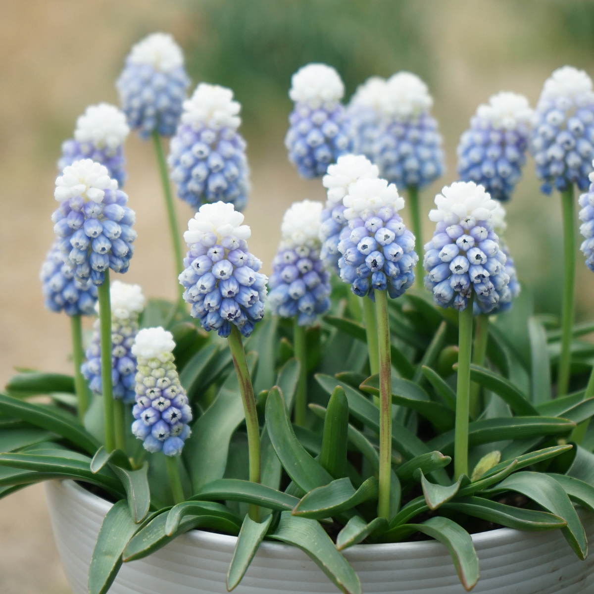 春の訪れにお庭を彩るムスカリ球根10球入りです。手軽にガーデニングを楽しめます。チューリップなどと一緒に植えると、華やかな彩りが広がり、お庭やベランダが明るくなります