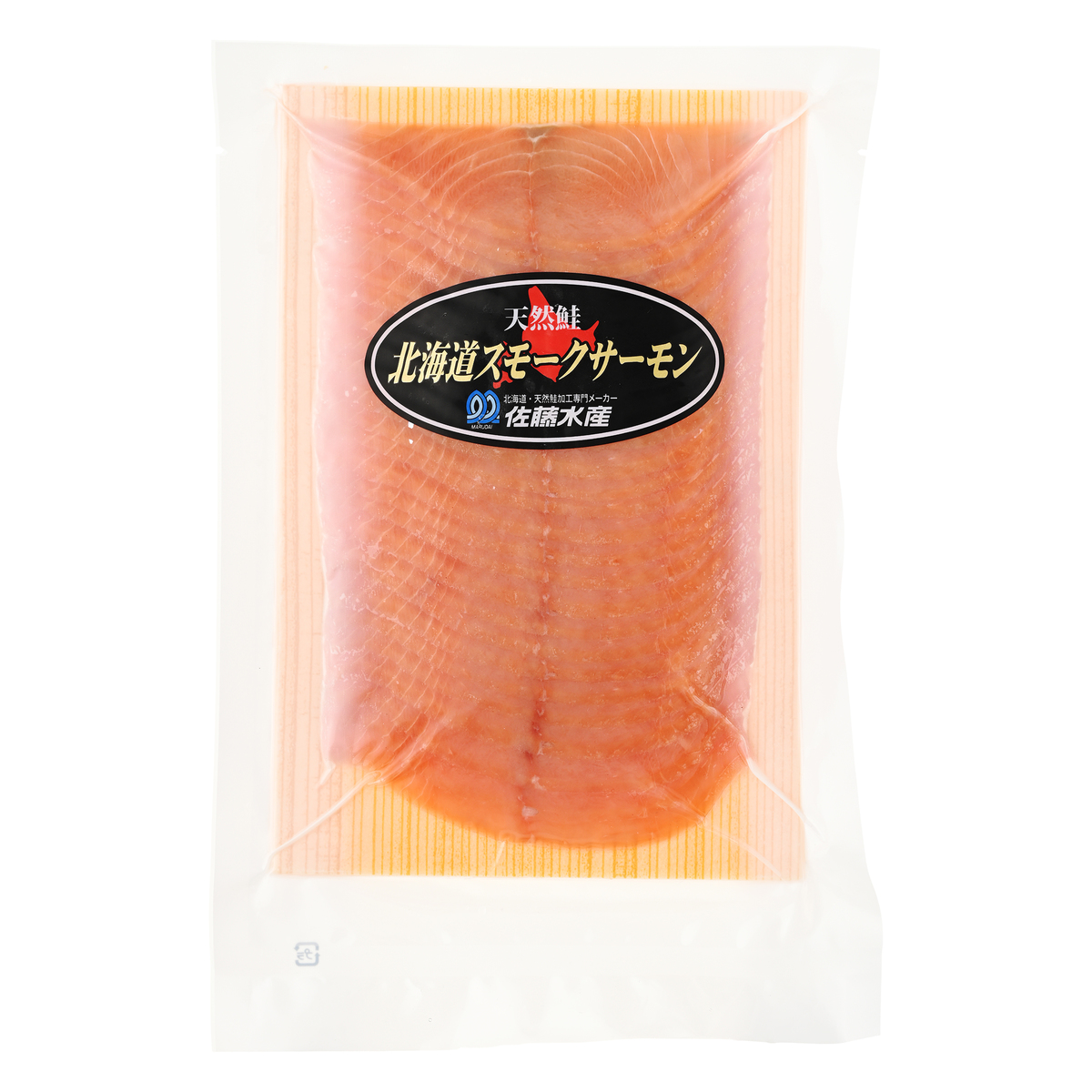 北海道産の天然秋鮭を使ったスモークサーモン。塩と香辛料のシンプルな材料で仕上げ、素材の味を引き立てています
