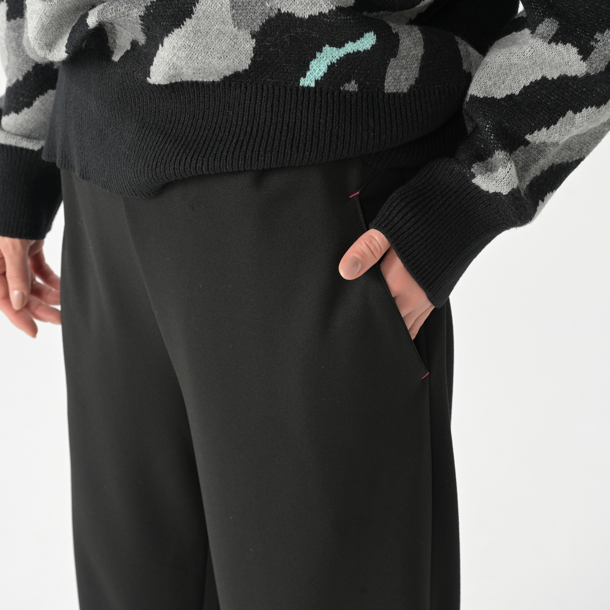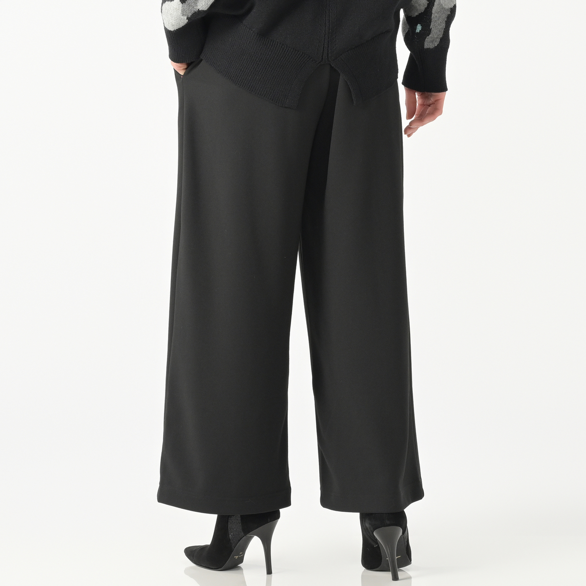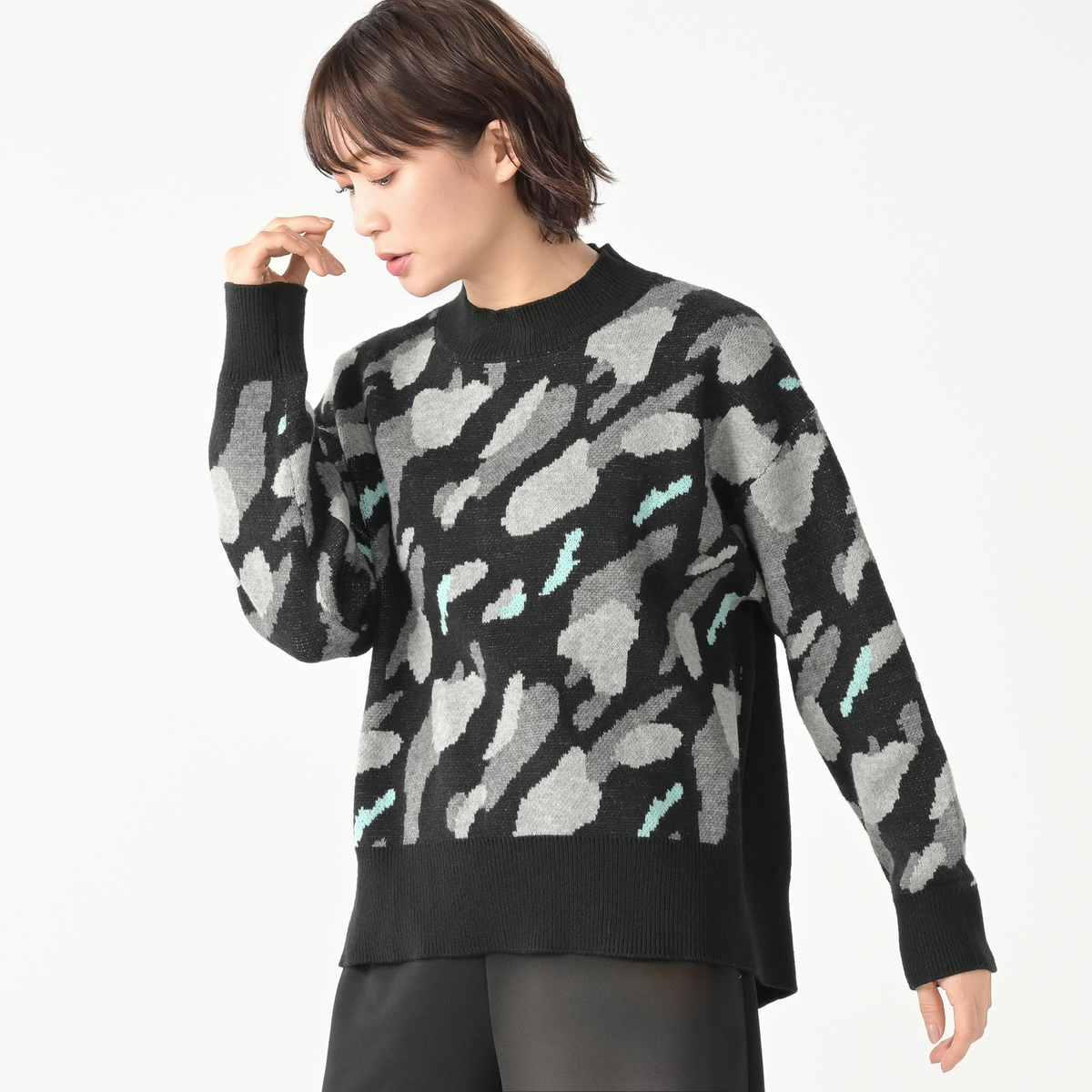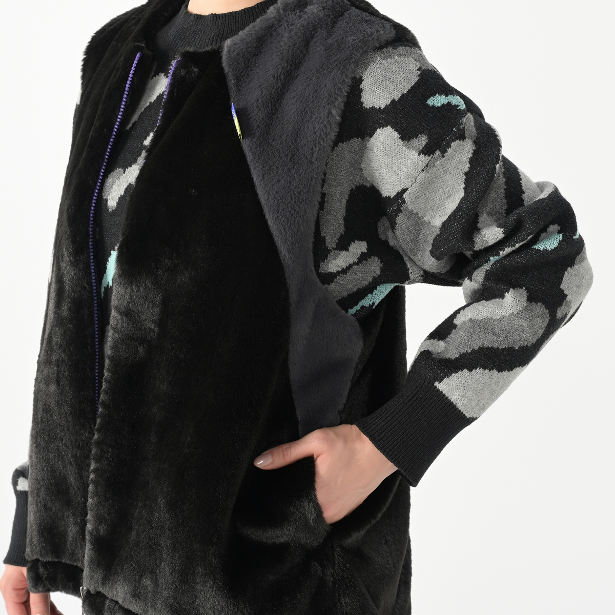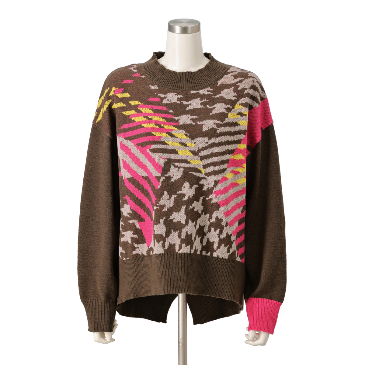 4色ジャガードのニットプルオーバー、配色切替が楽しいフェイクファーのジレ、着回し自在なワイドパンツ、柔らかなネックウォーマーの4点セットです。組合せに迷わず、手軽に華やかなスタイルをお楽しみいただけます