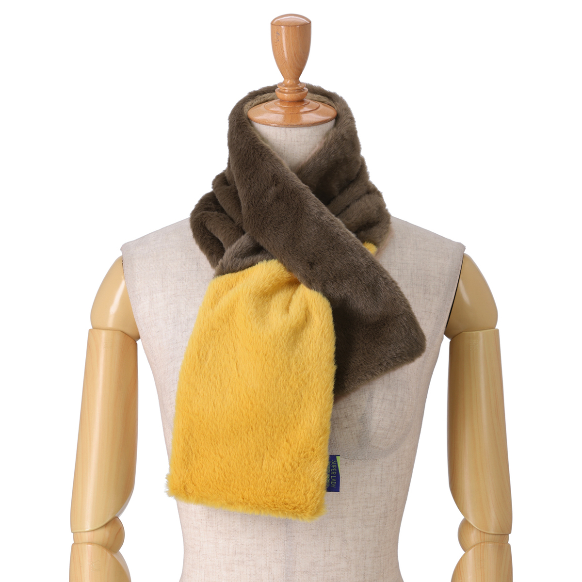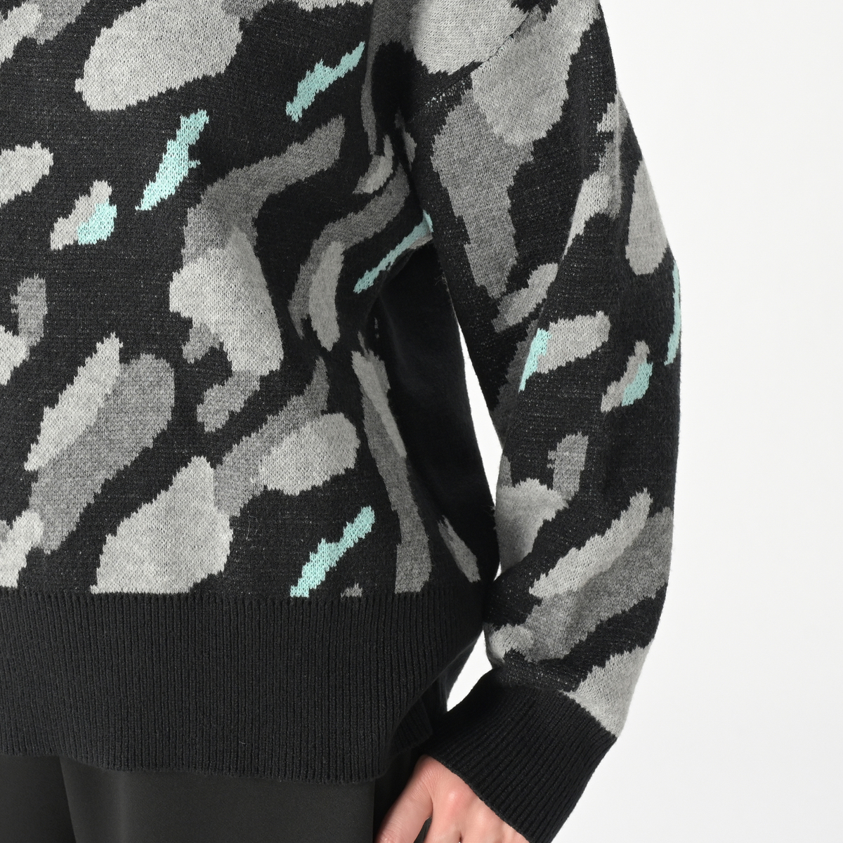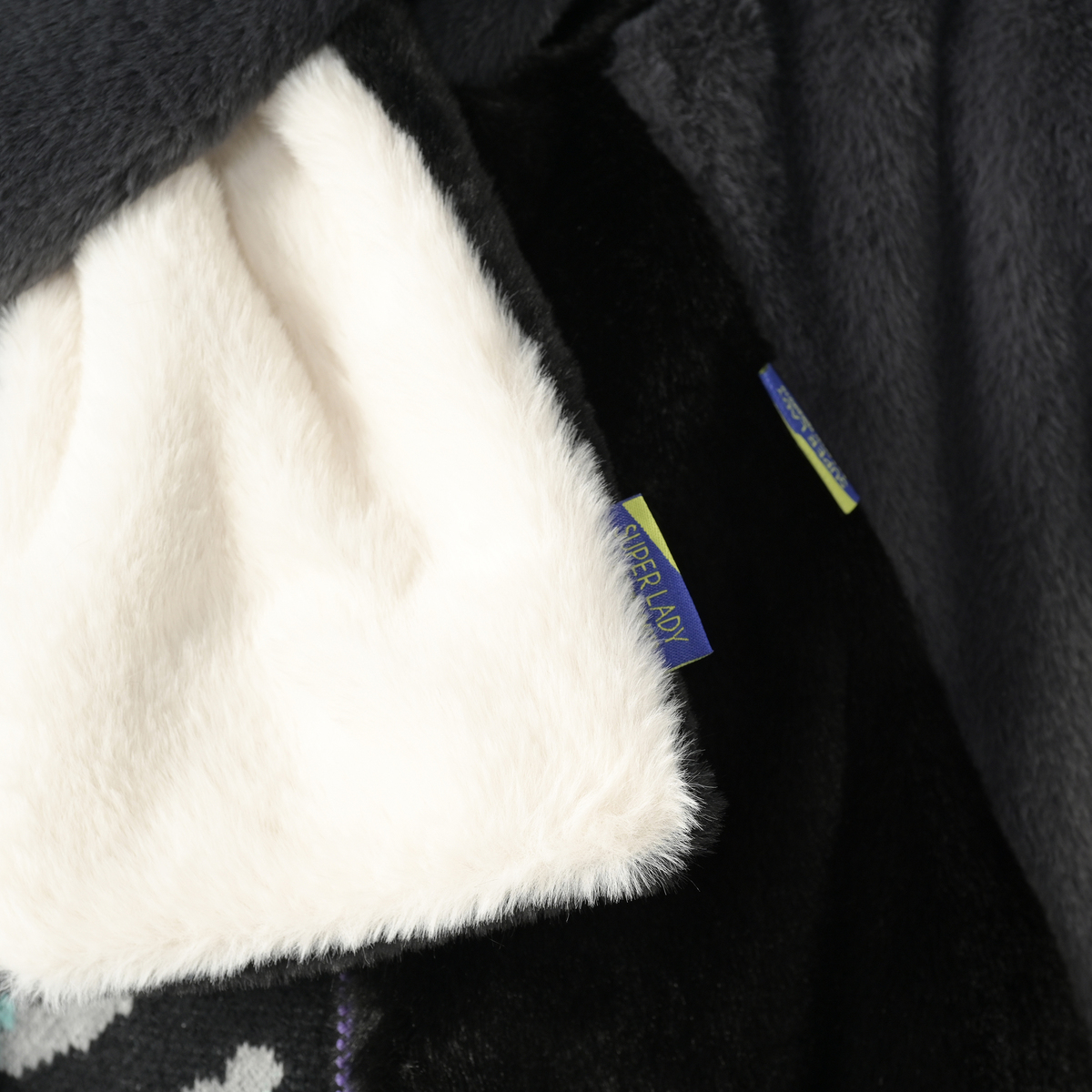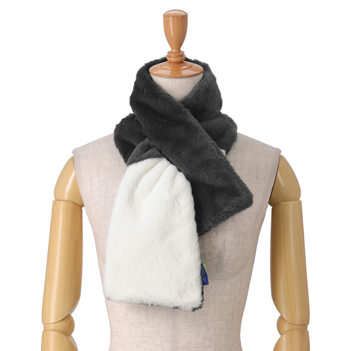4色ジャガードのニットプルオーバー、配色切替が楽しいフェイクファーのジレ、着回し自在なワイドパンツ、柔らかなネックウォーマーの4点セットです。組合せに迷わず、手軽に華やかなスタイルをお楽しみいただけます