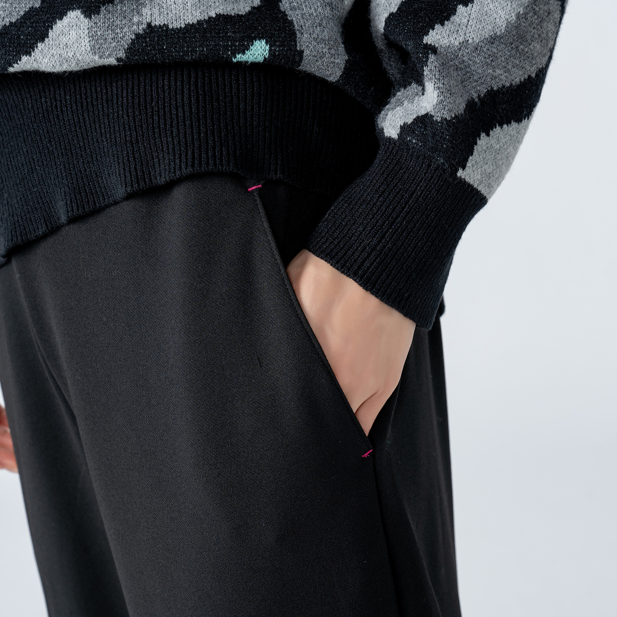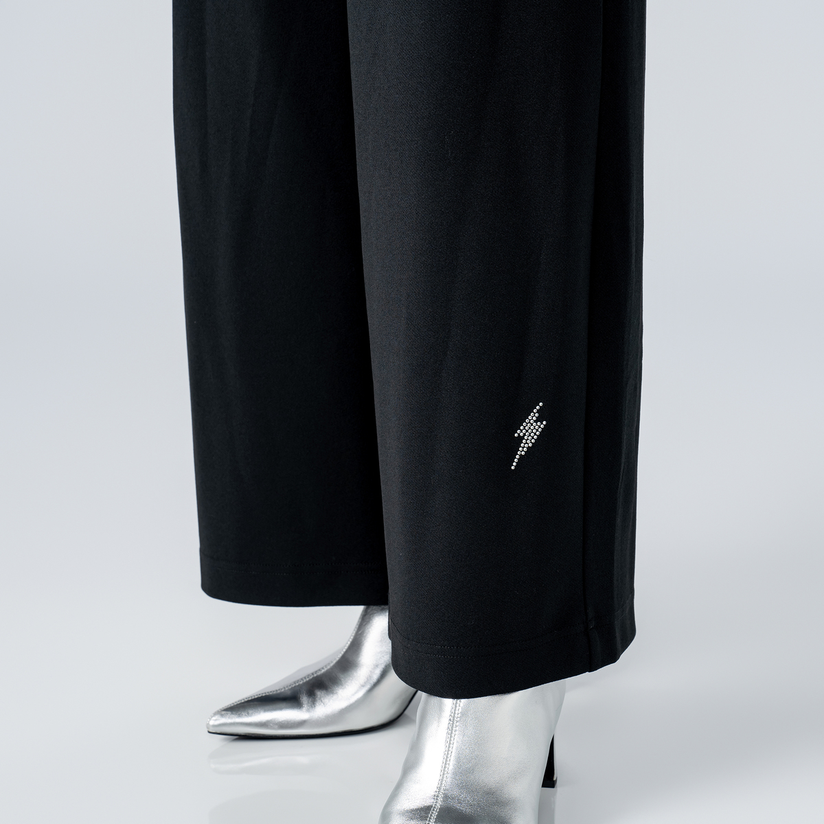 試作を重ねて作り上げた、絶妙なワイドシルエットのパンツ。渡り幅と膝幅、裾幅のバランス、さらに生地のドレープ感とハリ感にこだわり、絶妙なシルエツトが完成しました