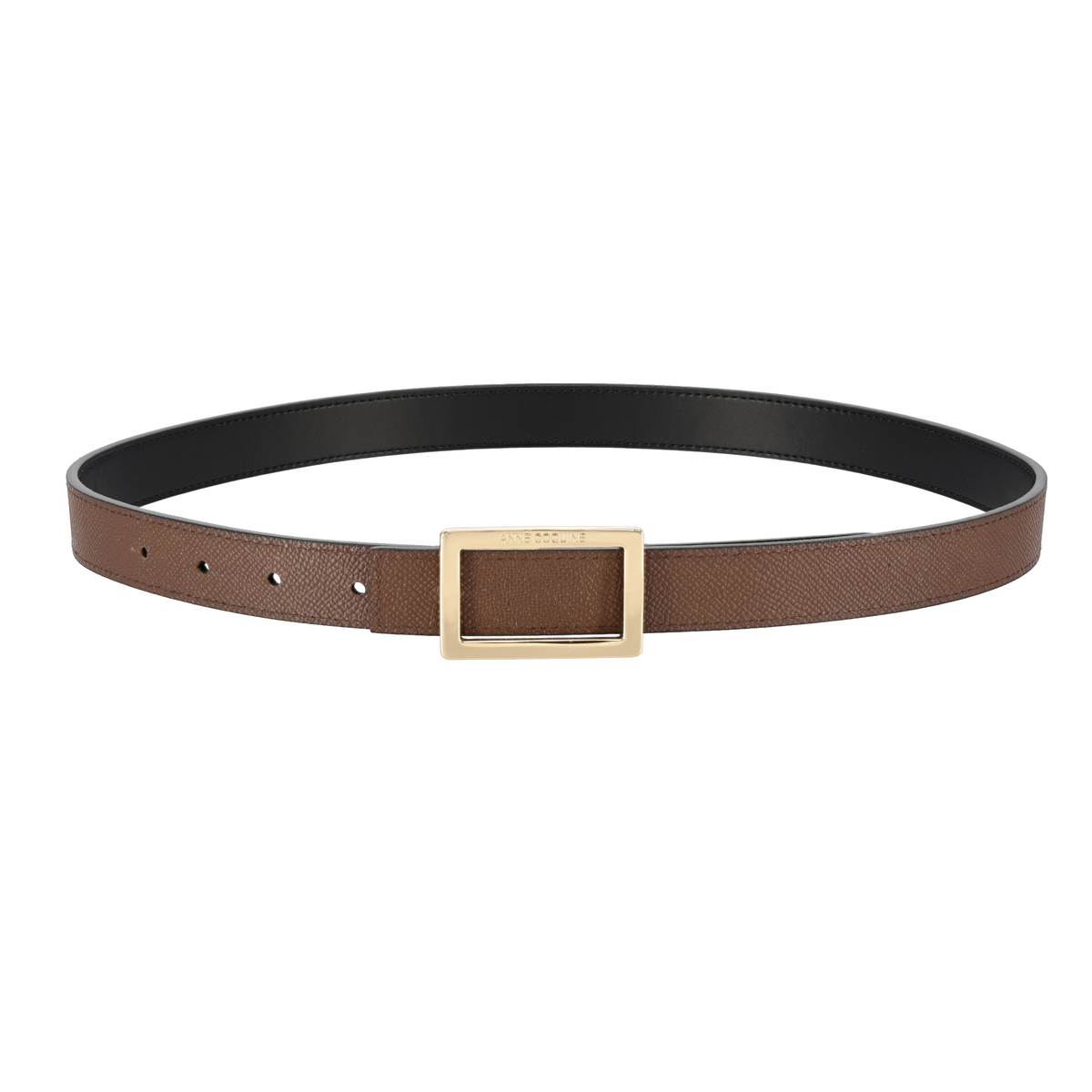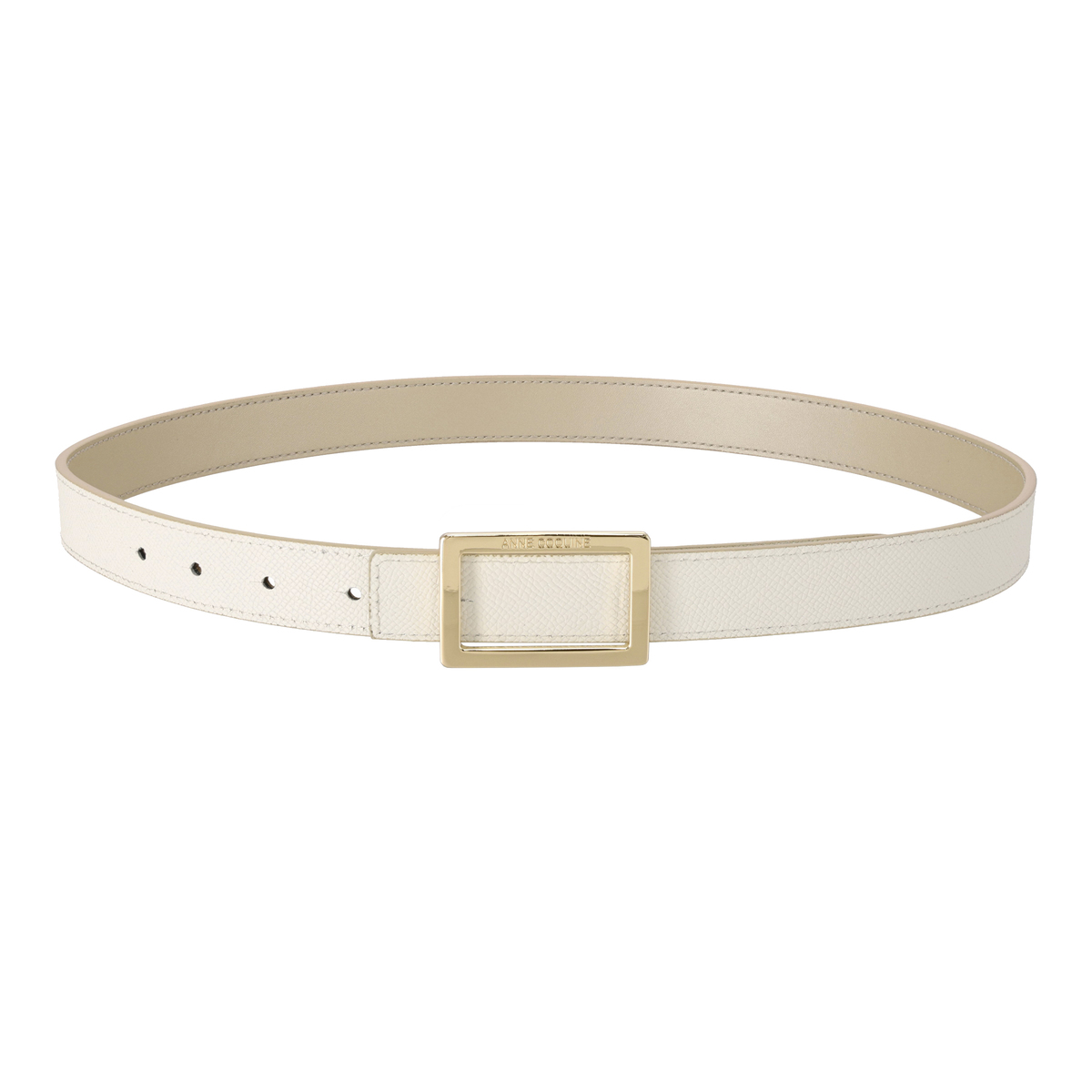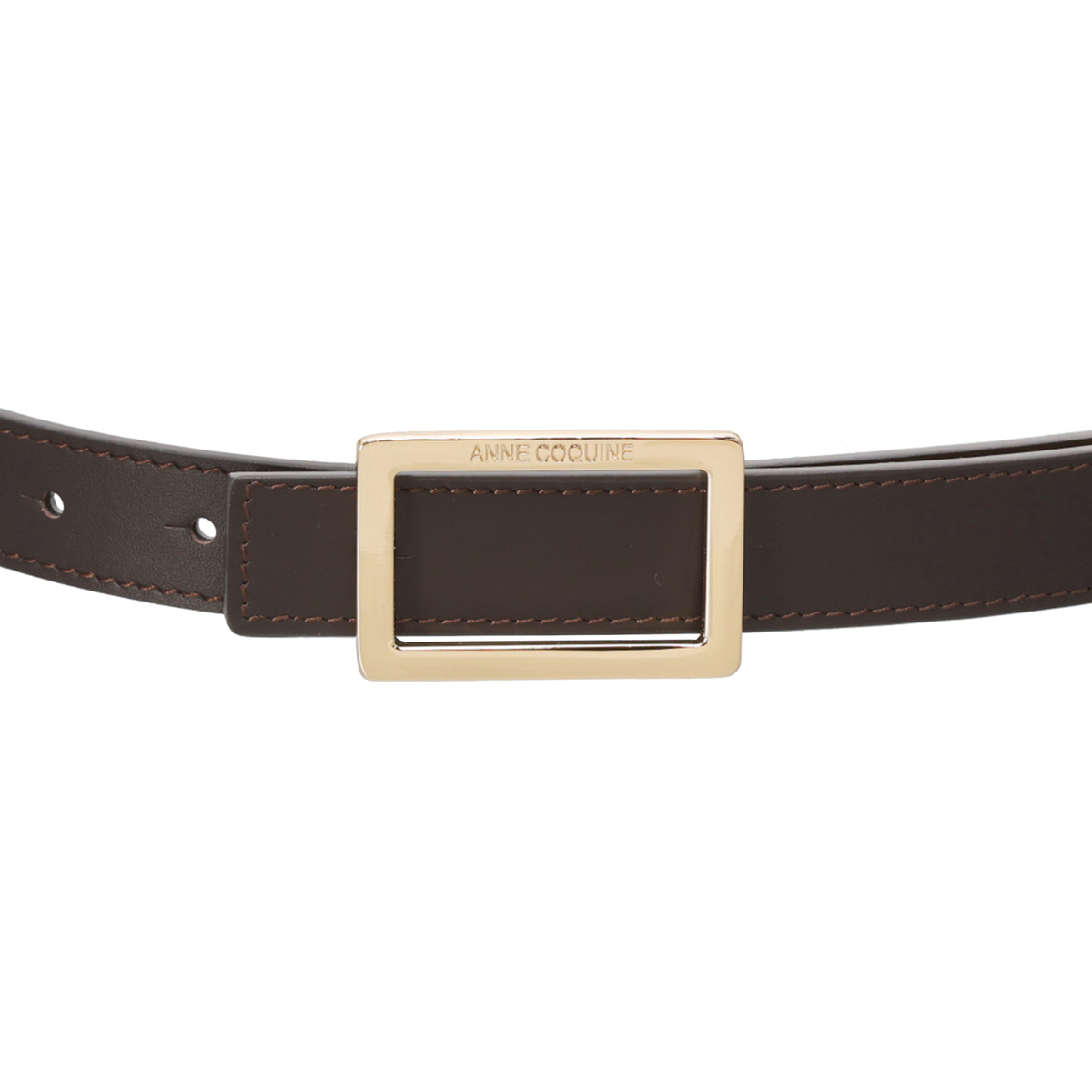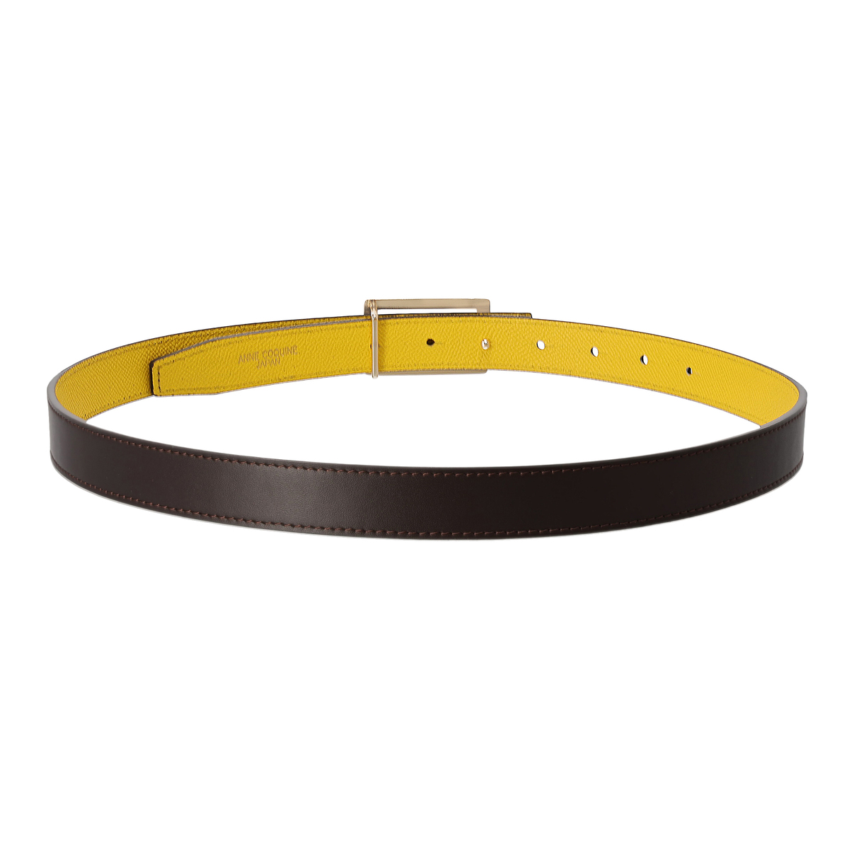 牛革を使用しているので、長く使うほどに風合いが増します。スクエア型のバックルにはブランドロゴを彫刻し、モダンな雰囲気を添えています