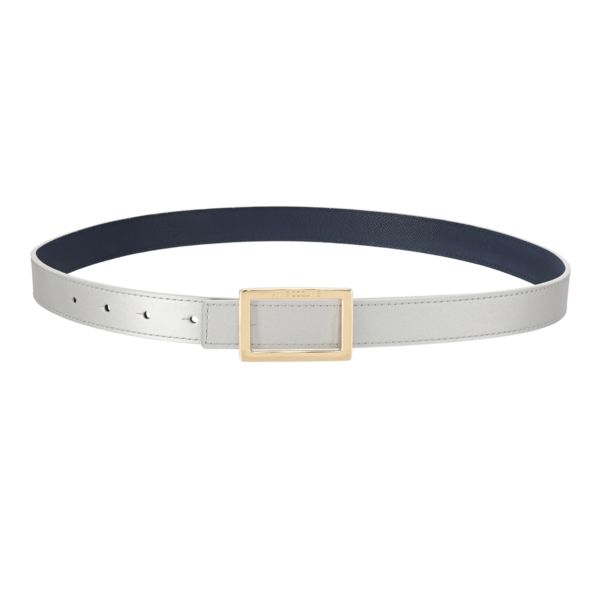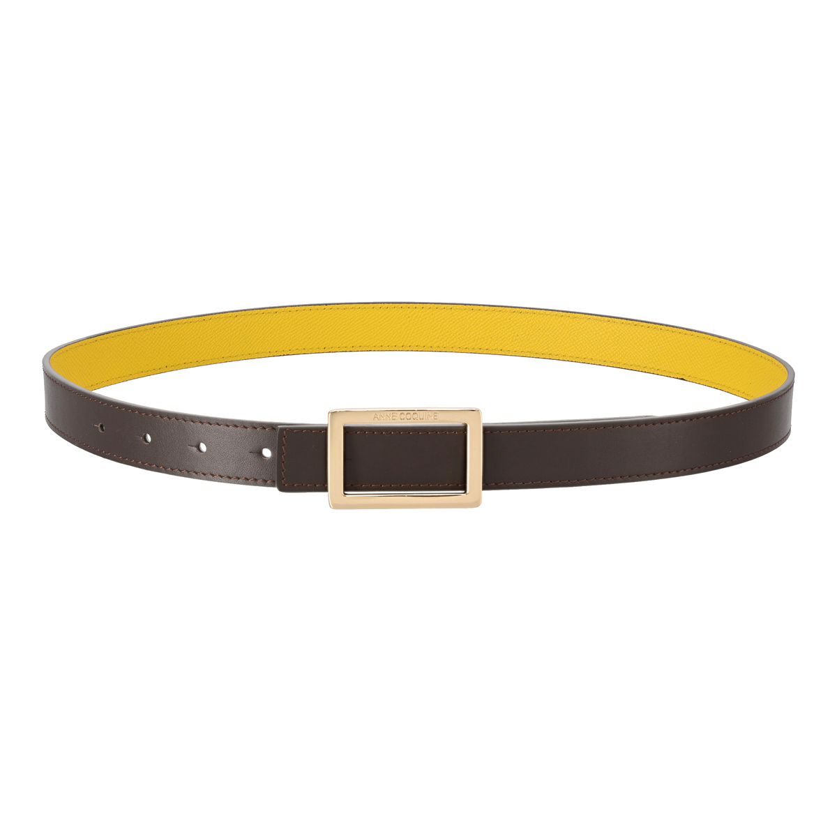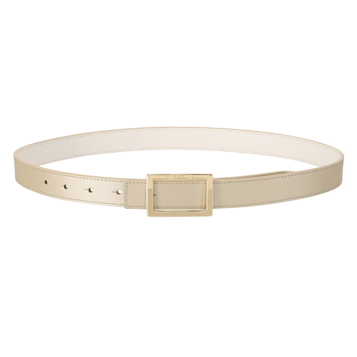 牛革を使用しているので、長く使うほどに風合いが増します。スクエア型のバックルにはブランドロゴを彫刻し、モダンな雰囲気を添えています