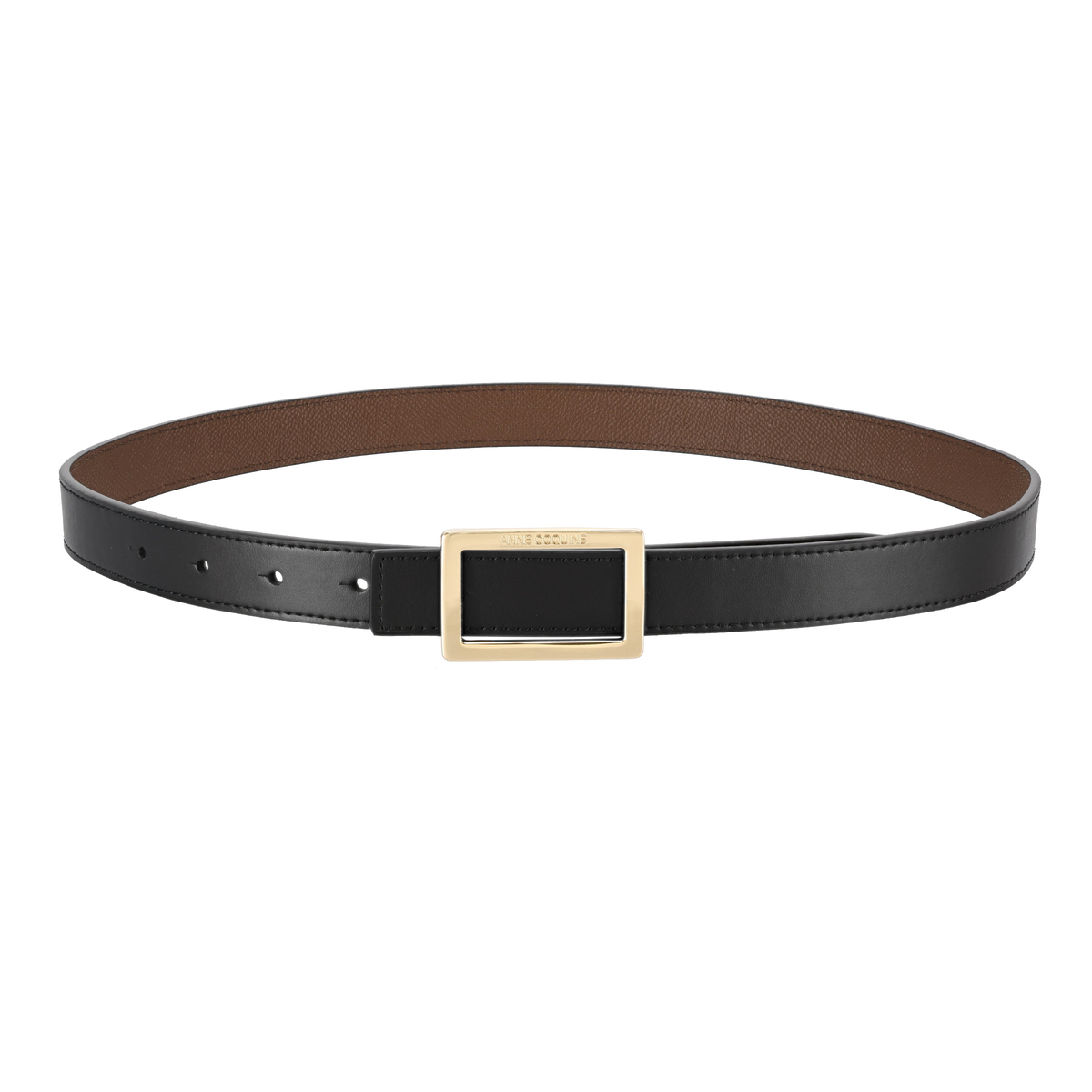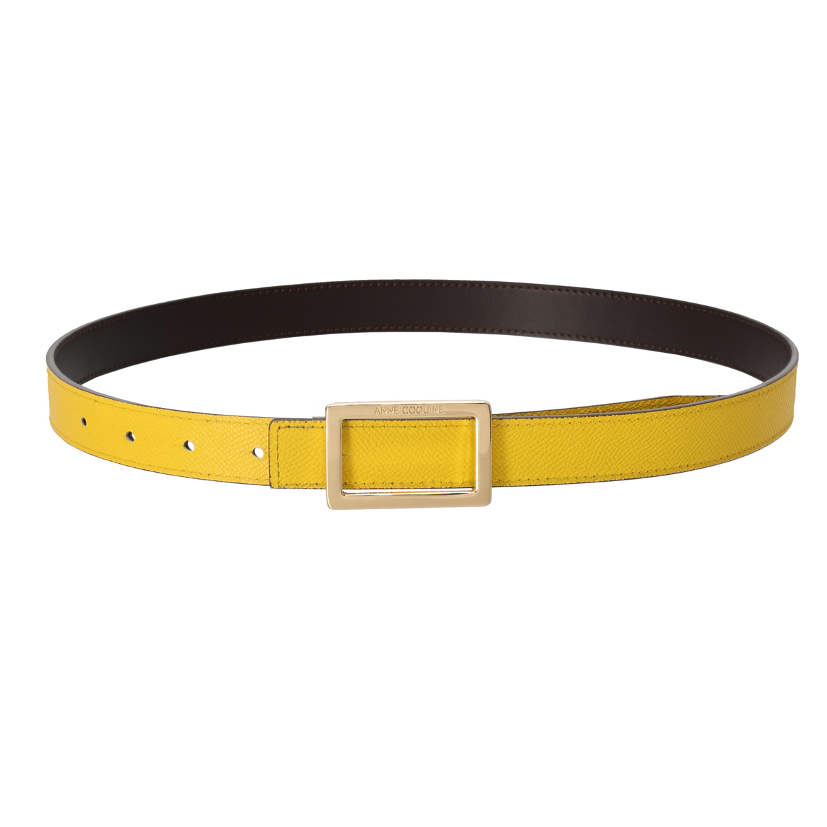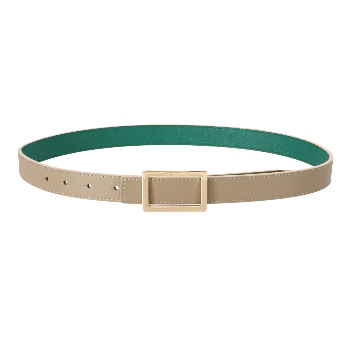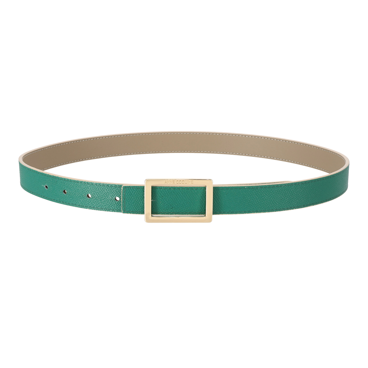 牛革を使用しているので、長く使うほどに風合いが増します。スクエア型のバックルにはブランドロゴを彫刻し、モダンな雰囲気を添えています