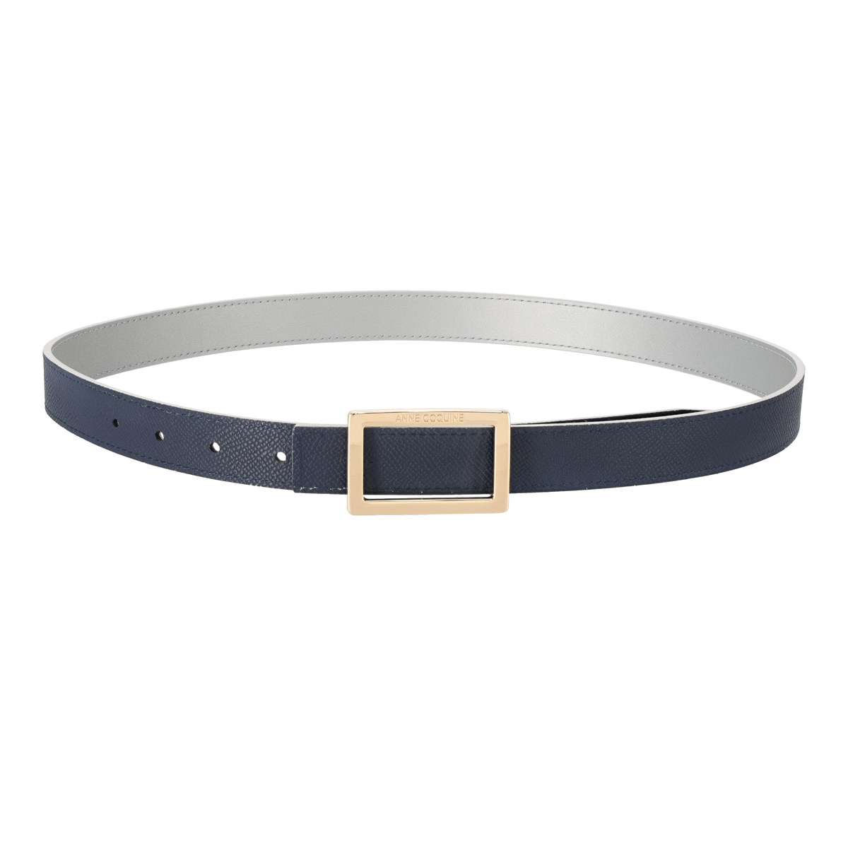 1本で2通りの表情を楽しめるリバーシブル仕様のベルト。片面はスムース、もう片面はシボ感のあるシュリンクレザーを使い、装いに合わせて使い分けができます