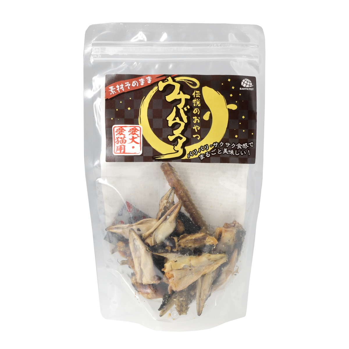 うなぎ料理店から出る鰻の頭や骨を活用し、フードロス削減の想いを込めて作ったペット用おやつ。乾燥させてサクサクとした食感にして、ワンちゃんや猫ちゃんが夢中になるおやつに仕上げました