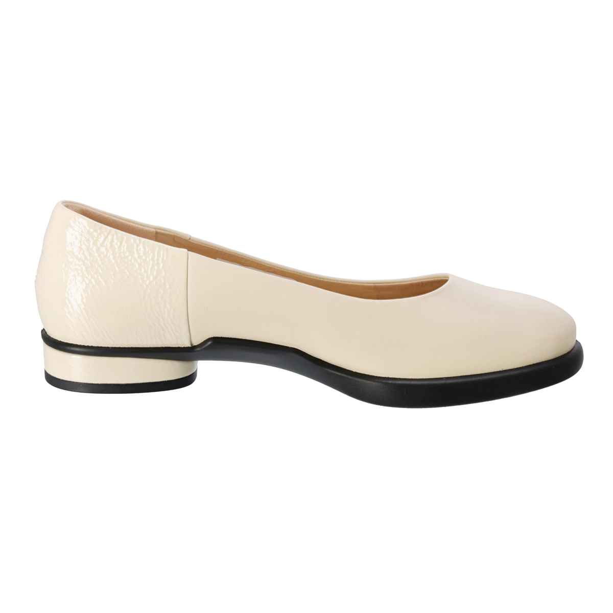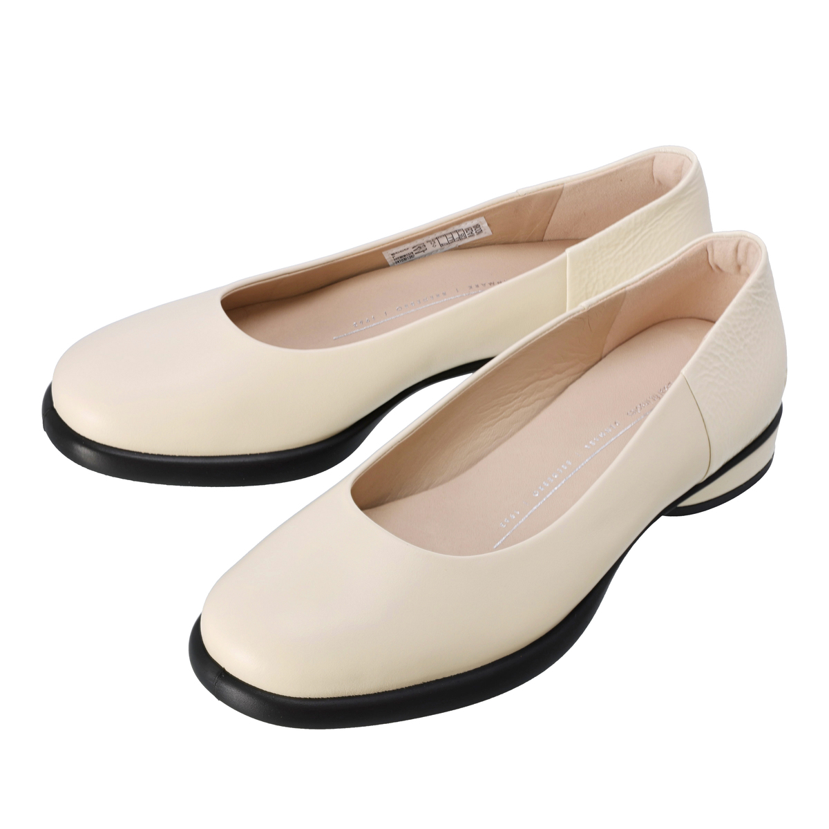 バレエシューズの木型を使ったフラットシューズ。一体成型製法で仕上げたフルイドフォルムのソールが足裏に沿い、一体感のある快適な履き心地です