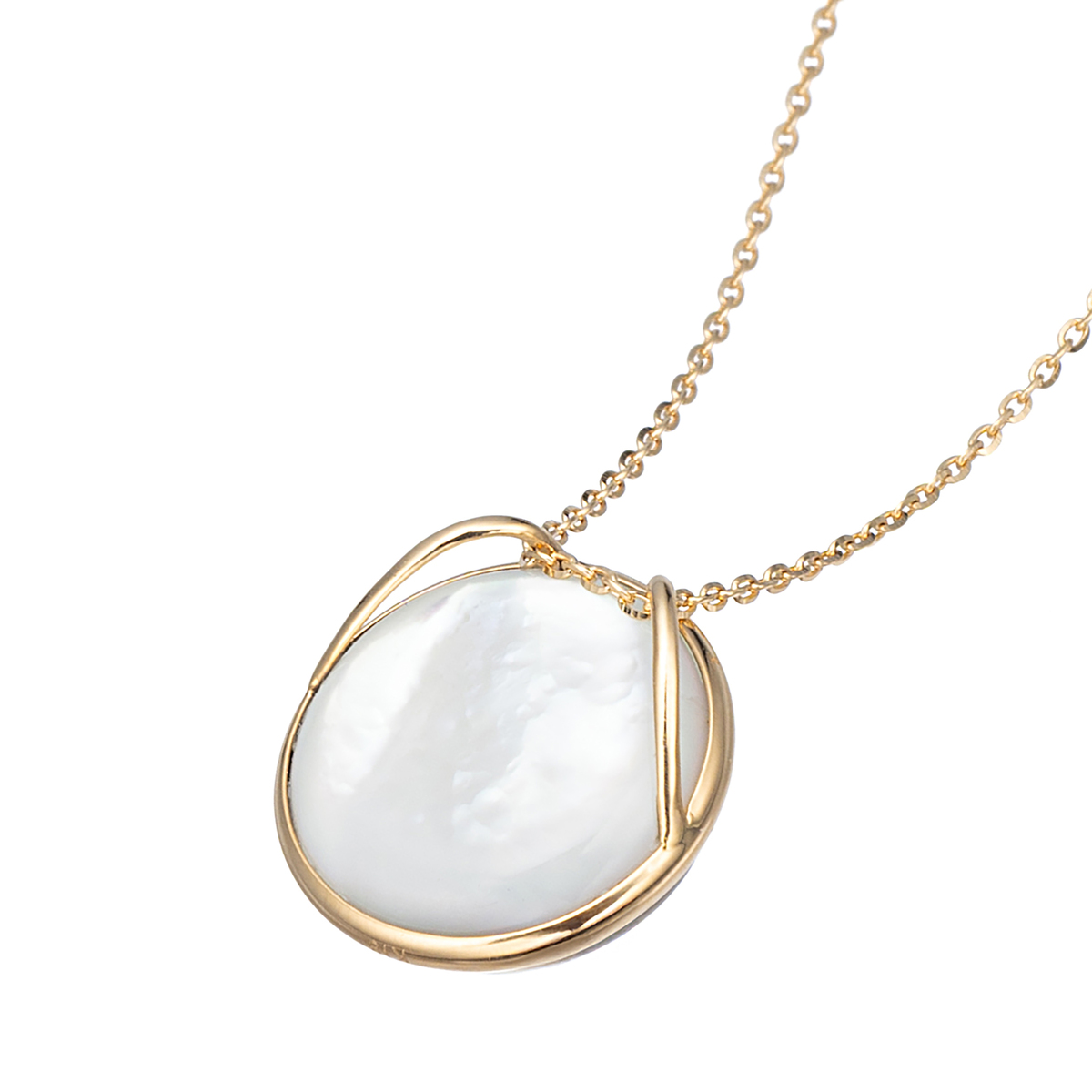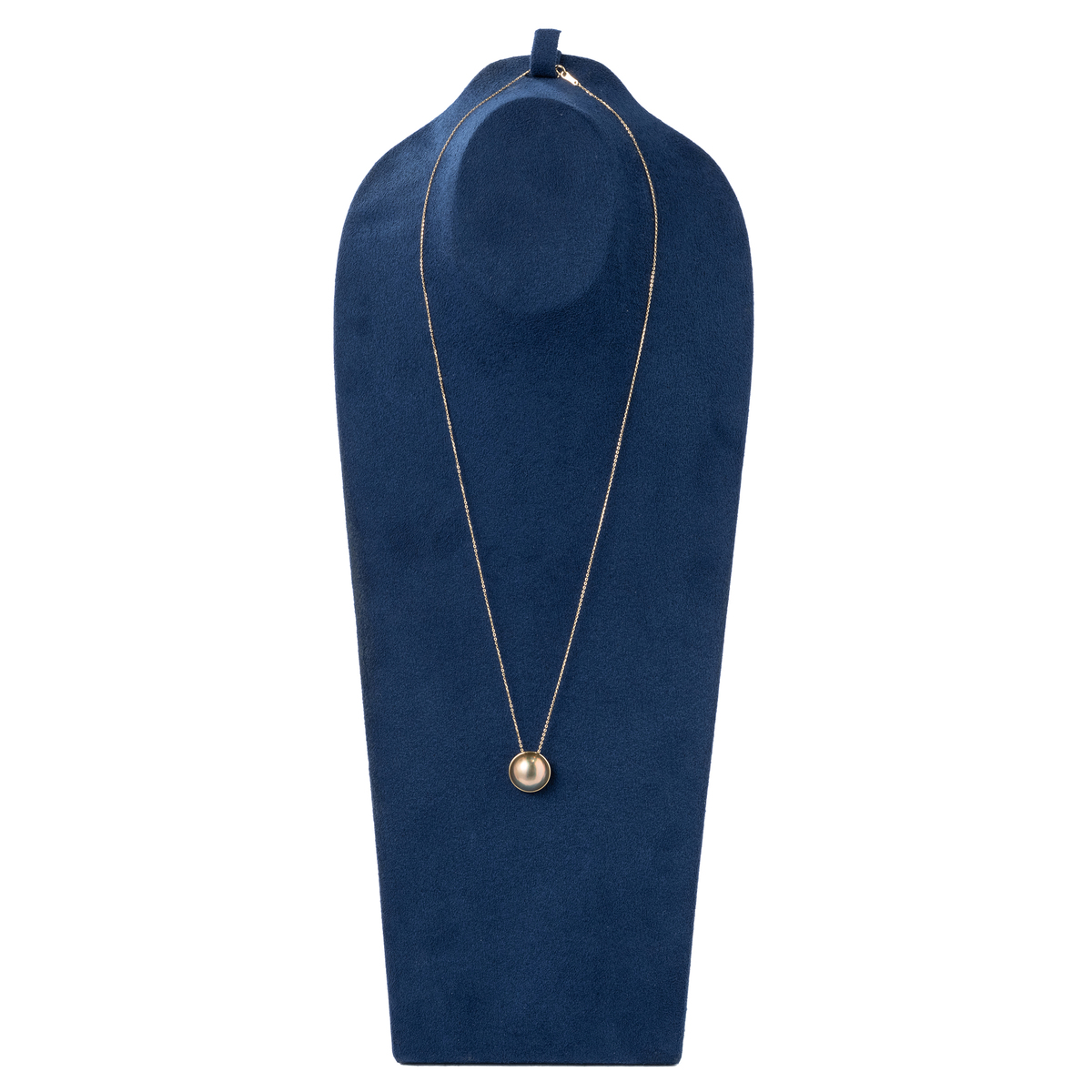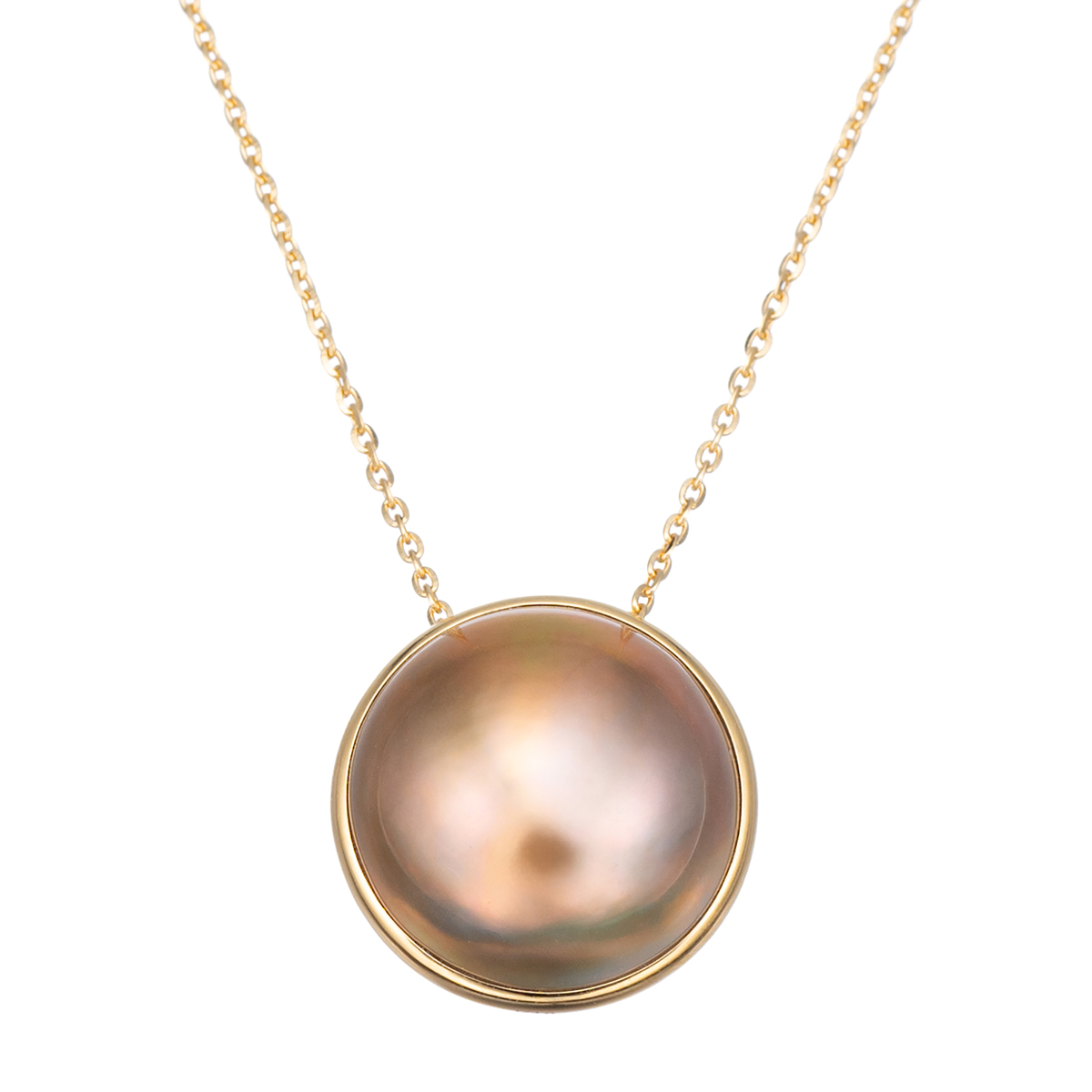 ゴールド系の地色に干渉色が合わさり、独特の色相を生み出すマベパールを使用したペンダント。胸元を上品に彩るジュエリーです