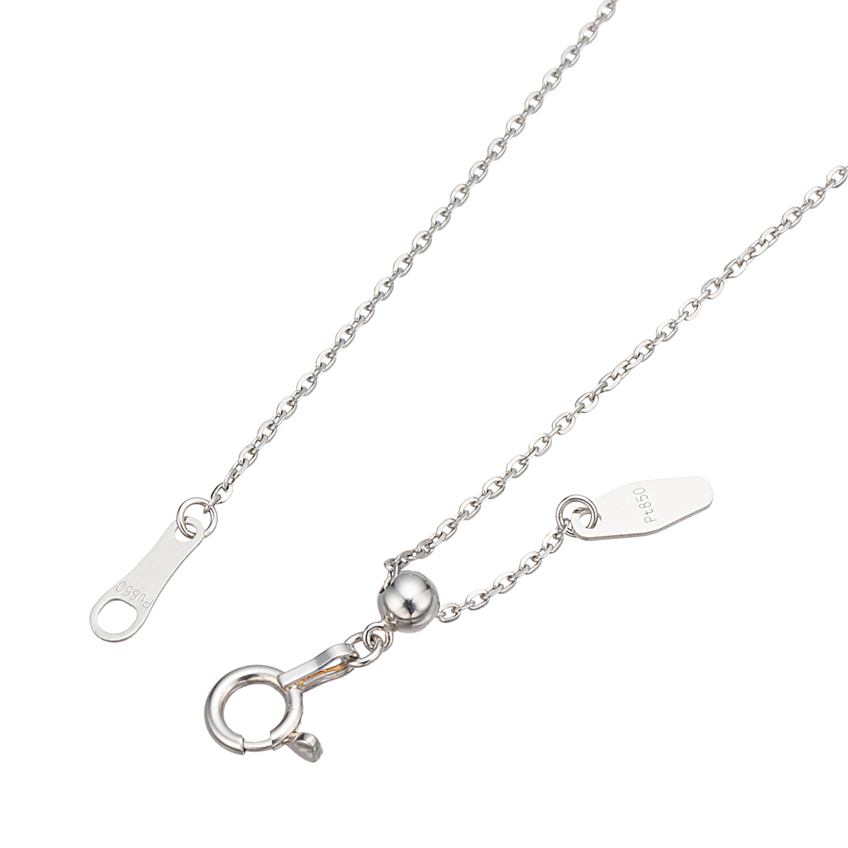 チェーンの長さはパールのサイズによって異なり、15.0mmUPは約60cm、13.0mmUPは約45cmとなります。スライド式アジャスター付で、お好みの長さに調節可能です