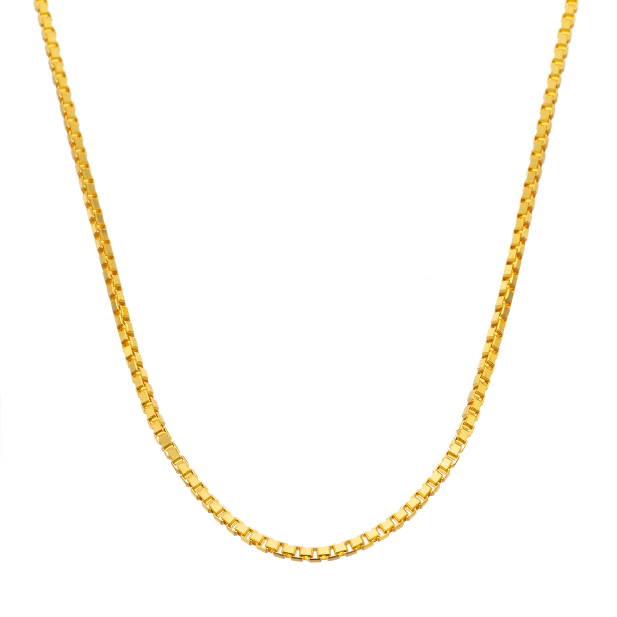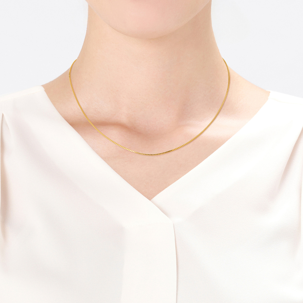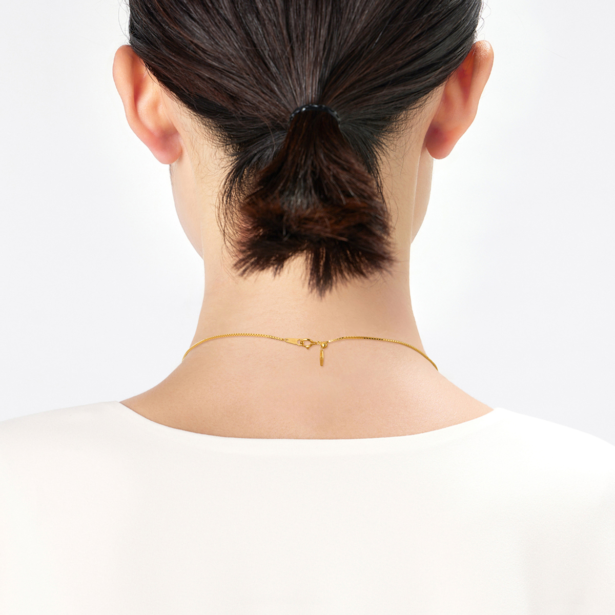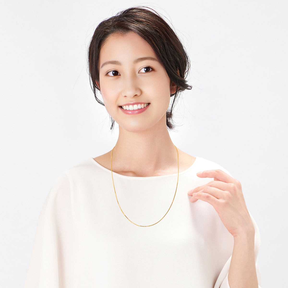しなやかに流れるような輝きで胸元を彩る純金ベネチアンチェーンネックレス。こだわったのは8面カットの美しさです