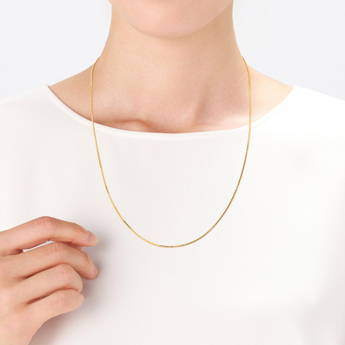 [地金]24Kゴールド 総重量(約) 42cm:4.3g 60cm:6.0g 長さ(約) 42.0cm 60.0cm 幅(約) 1.0mm チェーンの形状 ベネチアン 留具の形状 引き輪 アジャスターの有無 有(スライド式) 留め具の受け側 最大幅×高さ 3.8×2.1mm ■受注発注商品のためデザイン・価値に影響のない範囲で仕様が変わる場合がございます ■素材の大きさ・形・色合い、製品のサイズは1点1点多少異なります 【日本製】