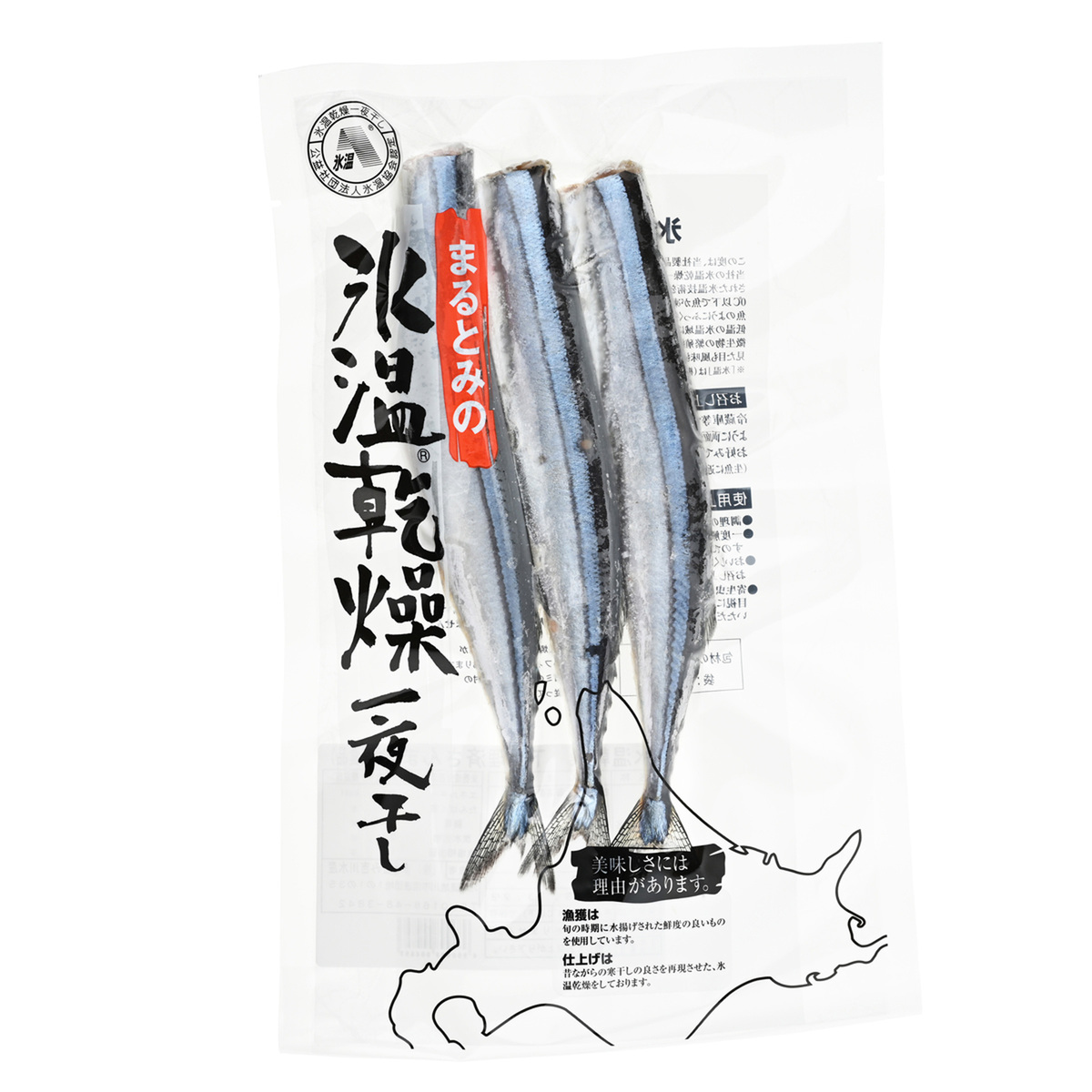 北海道産の鮮度の良いさんまを下処理し、氷温乾燥で一夜干しにしました。0 ℃以下の魚が凍る直前の低温(氷温)で時間をかけて除湿することで、生鮮魚のようにふっくらとした干物に仕上がります