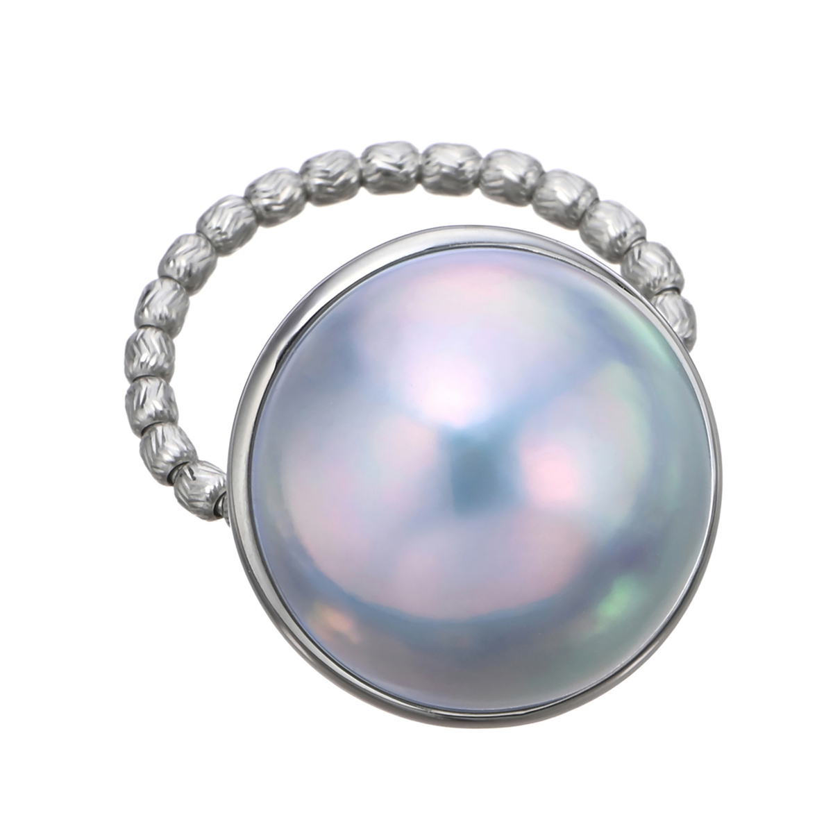 15.0mmUPの奄美大島産マベパールを存在感たっぷりにあしらったストレッチリング。指元を優雅に照らします