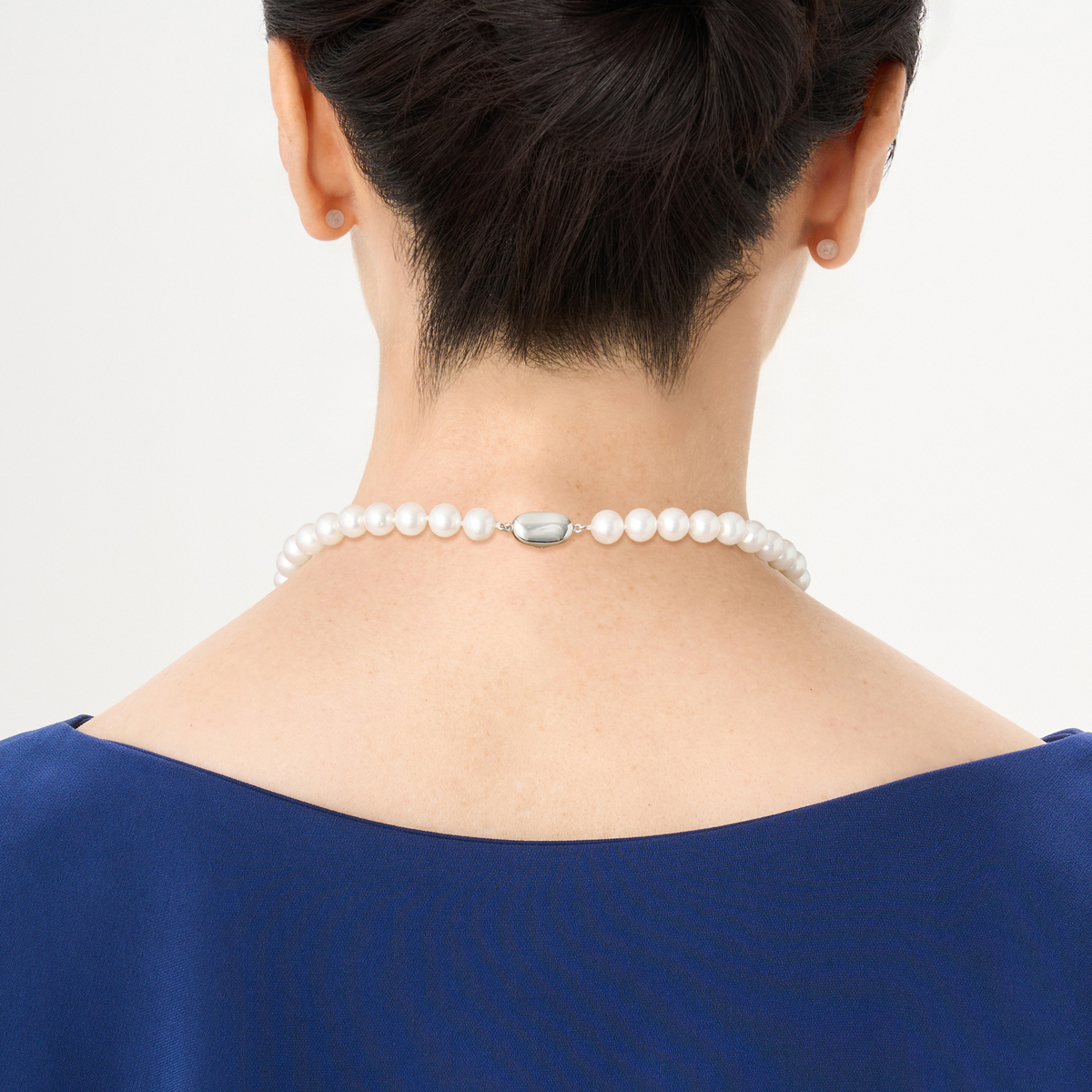 ネックレスとセットでお届けするイヤリングまたはピアスも、8.5mmUP珠で存在感たっぷりに。美しいテリが、装いを上品に仕上げてくれます