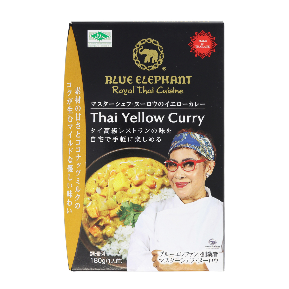 [アレルギー物質特定原材料8品目] 小麦 [内容量] 180g [賞味期限] 出荷時点で賞味期限まで240日以上ある商品をお届けします [保存方法] 開封前:直射日光、高温多湿を避けて常温で保存 開封後:開封後は保存ができませんので使い切ってください [お召し上がり方] <電子レンジの場合> 耐熱性の容器に袋の中身を移してラップをかけて温めてください 加熱時間の目安:500Wで2分、600Wで1分30秒 ※加熱時間は機種により異なる場合がありますので加減してください。時間は少しずつ設定・調整してください <湯煎で温める場合> パウチを開けずに、沸騰したお湯に入れ5〜7分温めてください ※加熱直後は中身が大変熱くなっています ※開封時やラップを取る際に、熱くなった中身がはねることがありますのでやけどにご注意ください [注意事項] ※開封後は保存ができませんので使い切ってください ※開封時に袋のフチや切り口で手を切らないようご注意ください ※香辛料が入っておりますので、辛い食べ物が苦手な方やお子様はご注意ください ※本品はレトルトパウチ食品です [原産国] タイ [原材料] マッサマンカレー: ココナッツミルク、野菜(さつまいも、エシャロット、にんじん、ヒヨコ豆、枝豆)、マッサマンカレーペースト(マッサマンカレーパウダー、植物油脂、エシャロット、にんにく、タマリンドペースト、乾燥赤唐辛子、しょうが、レモングラス、食塩、その他)、ココナッツシュガー、植物油脂、タマリンドペースト、砂糖、食塩、香辛料、(一部に大豆を含む) グリーンカレー: ココナッツミルク、野菜(ナス、タケノコ、スズメナス、枝豆、にんにく、エシャロット)、グリーンカレーペースト(にんにく、レモングラス、唐辛子、エシャロット、ナンキョウ(ガランガル)、タマリンドペースト、コリアンダーの根、その他)、香辛料、ココナッツシュガー、植物油脂、食塩、(一部に大豆を含む) イエローカレー: ココナッツミルク、野菜(玉ねぎ、にんじん、じゃがいも、枝豆、エシャロット、ヒヨコ豆、にんにく、しょうが)、イエローカレーペースト(レモングラス、にんにく、植物油脂、エシャロット、タマリンドペースト、コリアンダーの根、食塩、その他)、ココナッツシュガー、植物油脂、タマリンドペースト、砂糖、食塩、香辛料、(一部に小麦、大豆を含む)