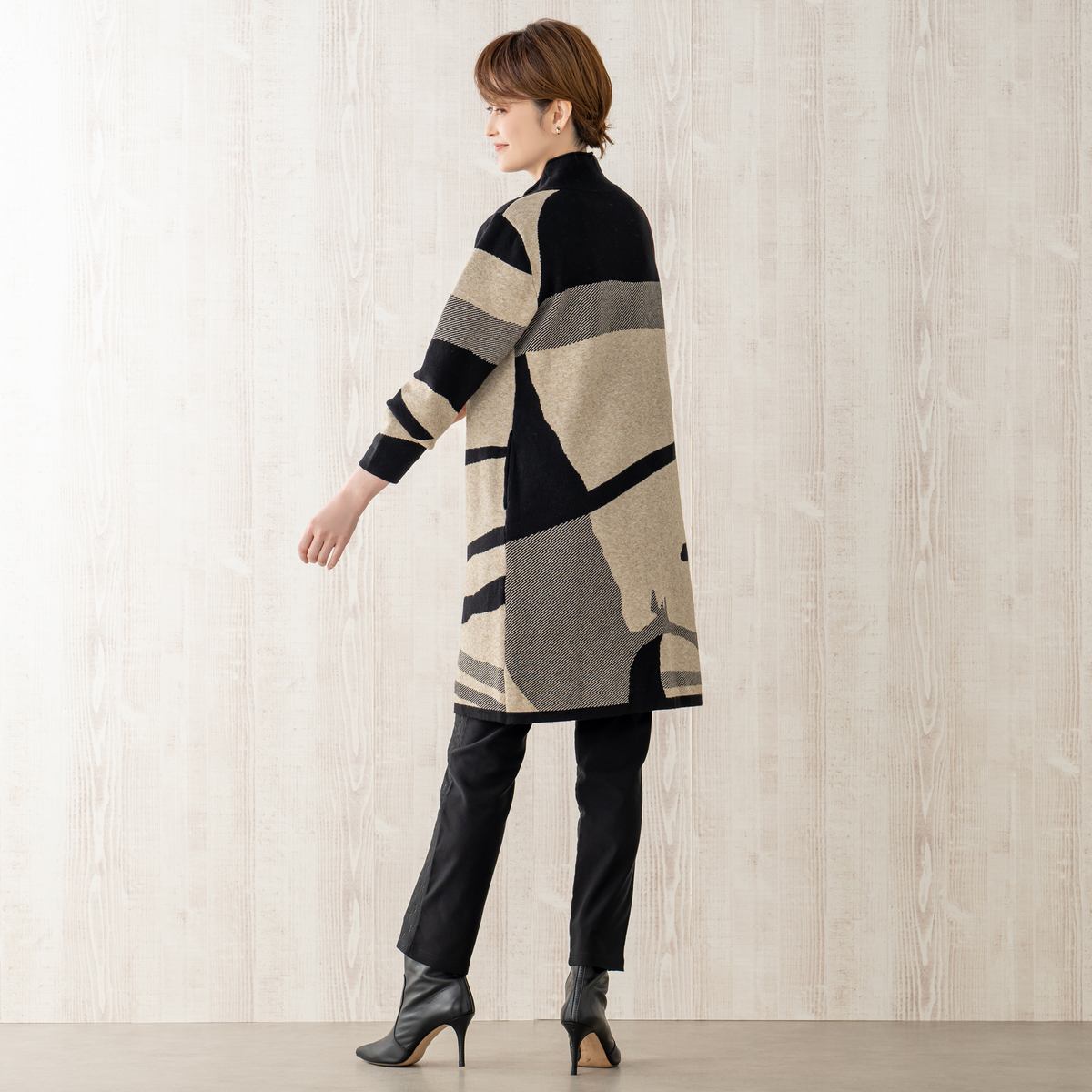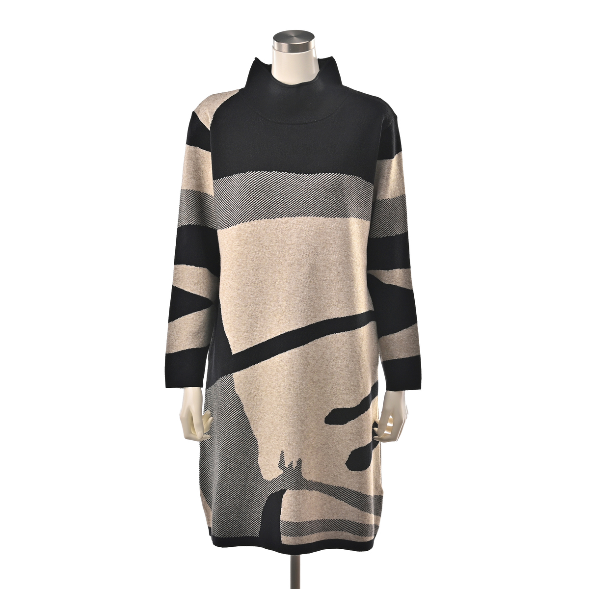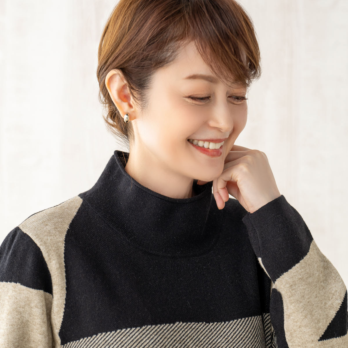 レーヨン・ポリエステル・ナイロンをブレンドした柔らかな素材で、伸びがあり、動きやすいジャカードニットチュニック。型崩れしにくく、手洗いOKでお手入れ簡単。パンツと合わせてチュニック風に、タイツでワンピース風にも楽しめます