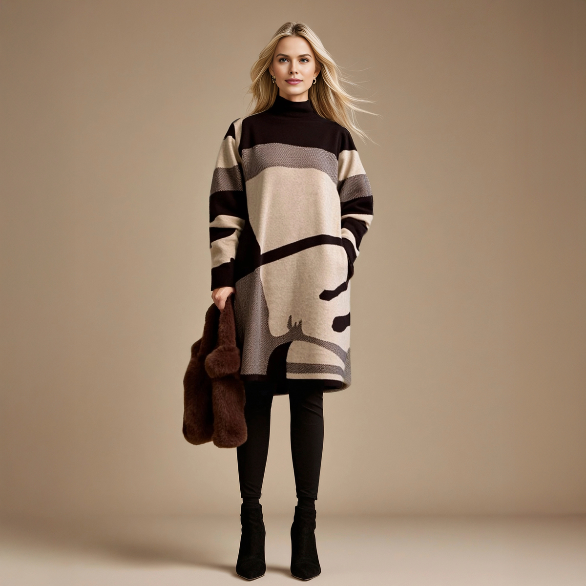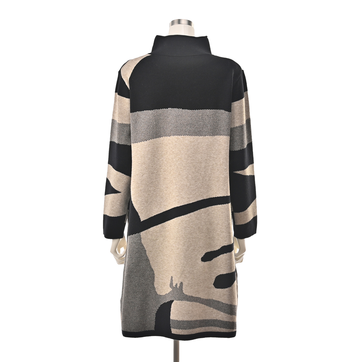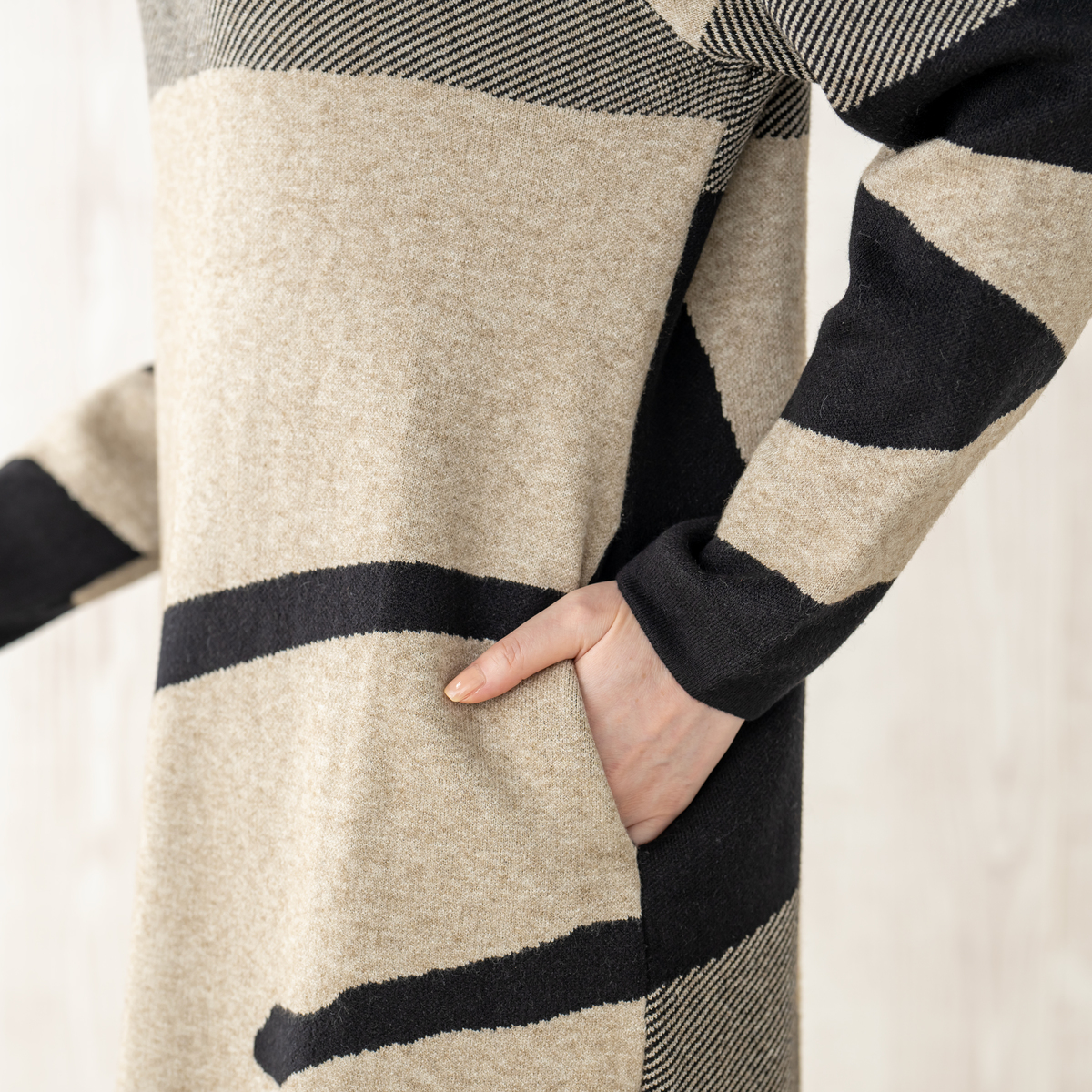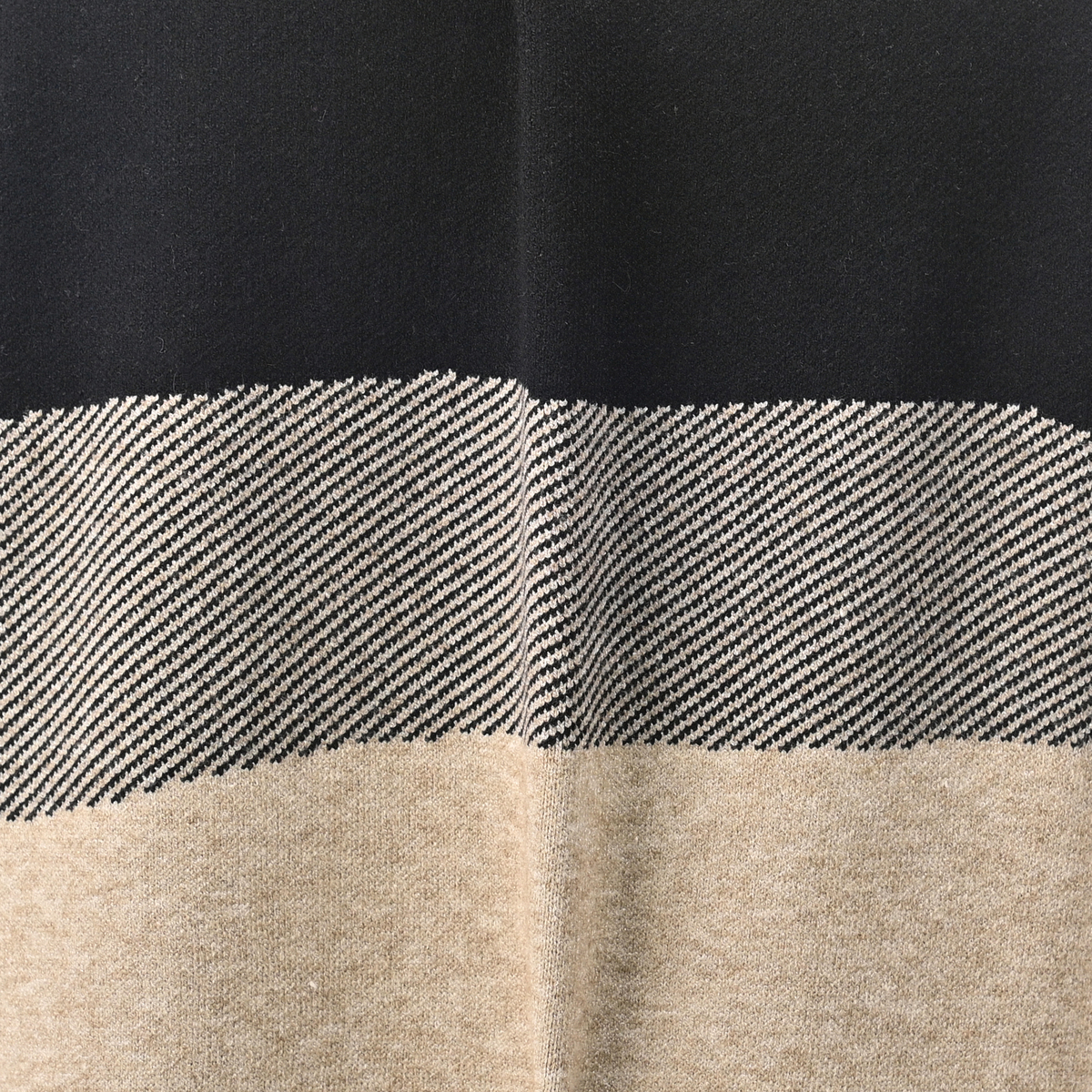 レーヨン・ポリエステル・ナイロンをブレンドした柔らかな素材で、伸びがあり、動きやすいジャカードニットチュニック。型崩れしにくく、手洗いOKでお手入れ簡単。パンツと合わせてチュニック風に、タイツでワンピース風にも楽しめます