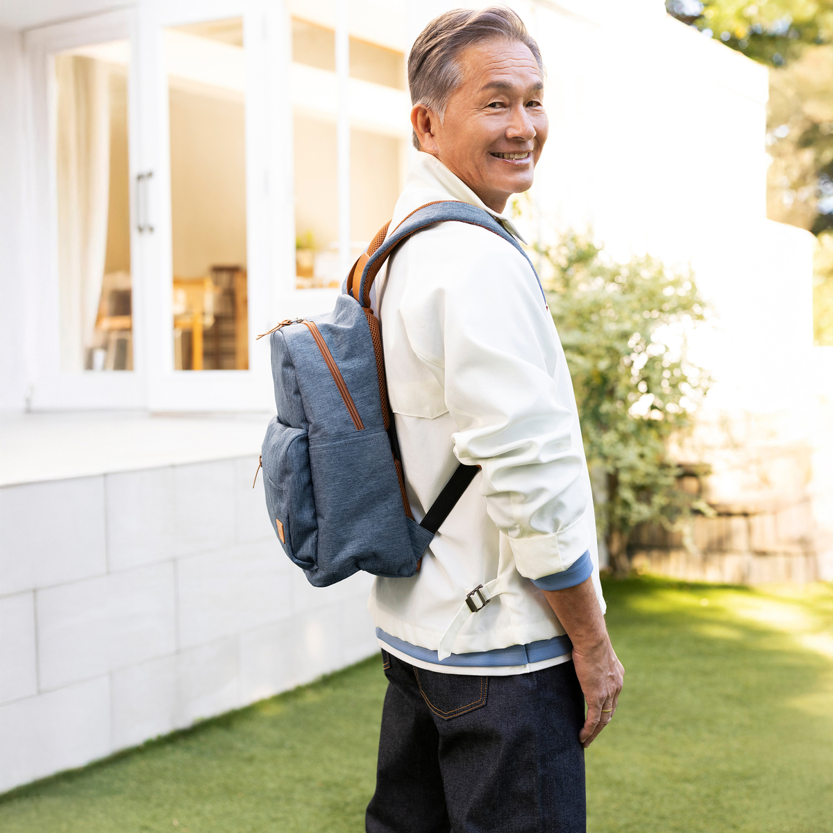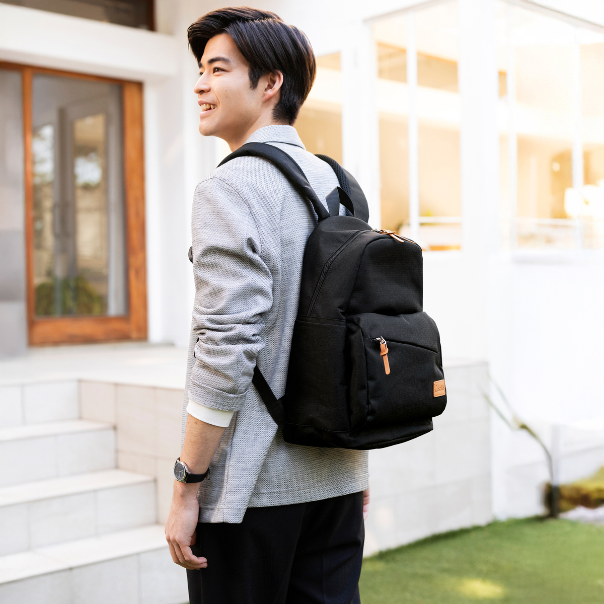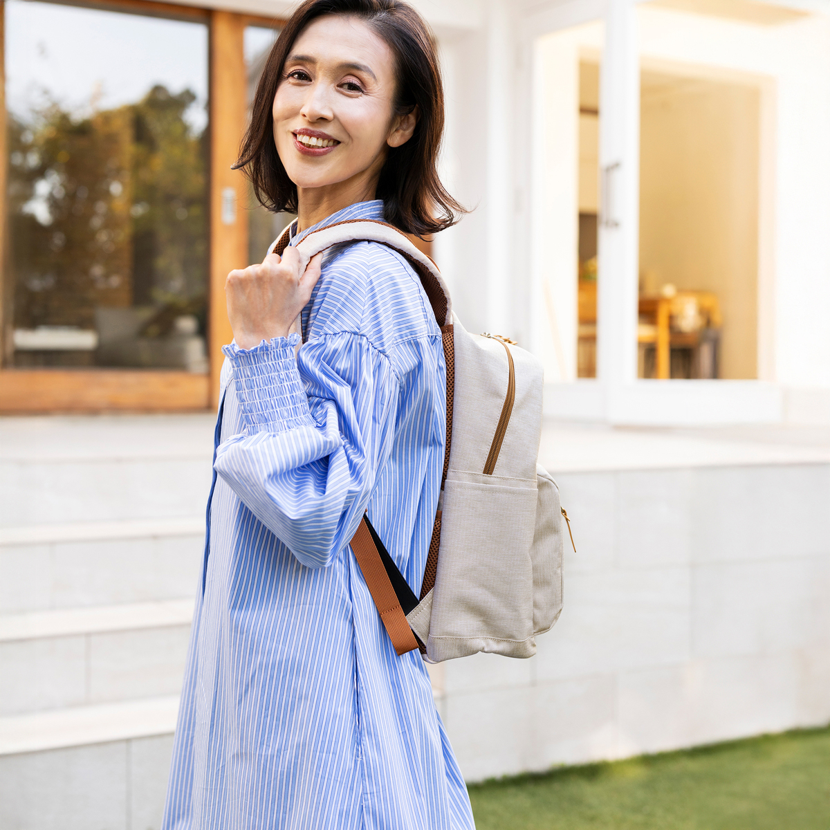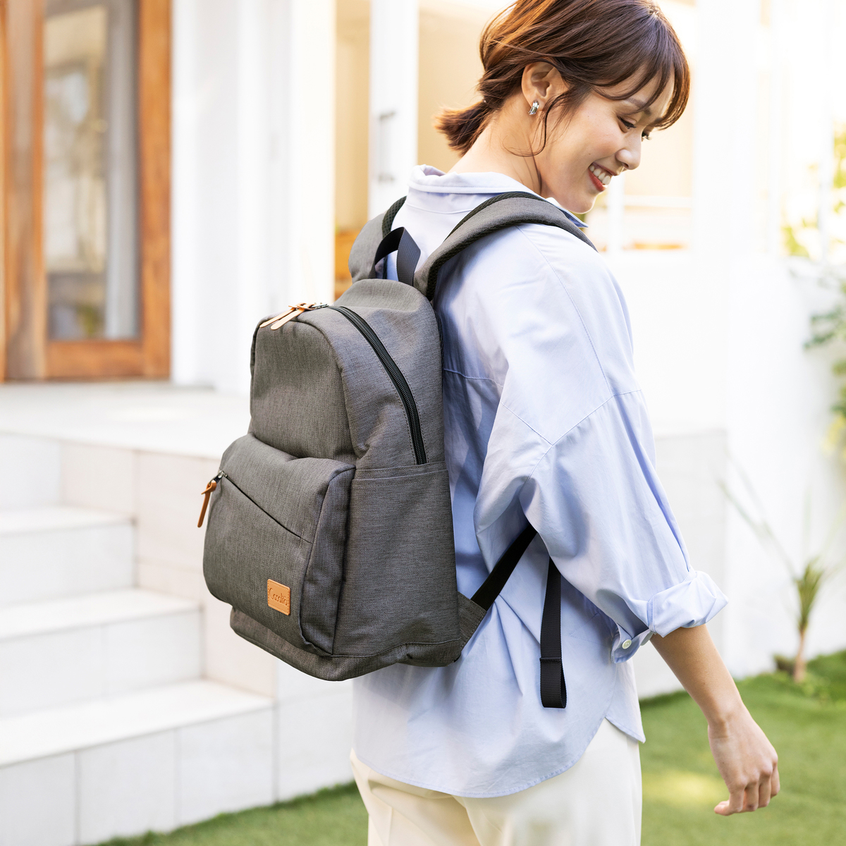 誰でも合わせやすいサイズ感で、すっきりとしたデザインながらも、見た目以上の収納力があります。本体重量は約730gと軽量。メインルームの間口は大きく開き荷物を出し入れしやすく、必要な物をサッと取り出せます