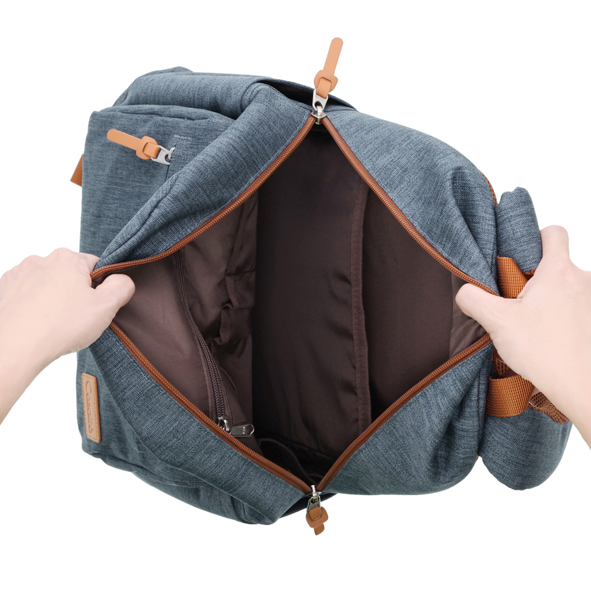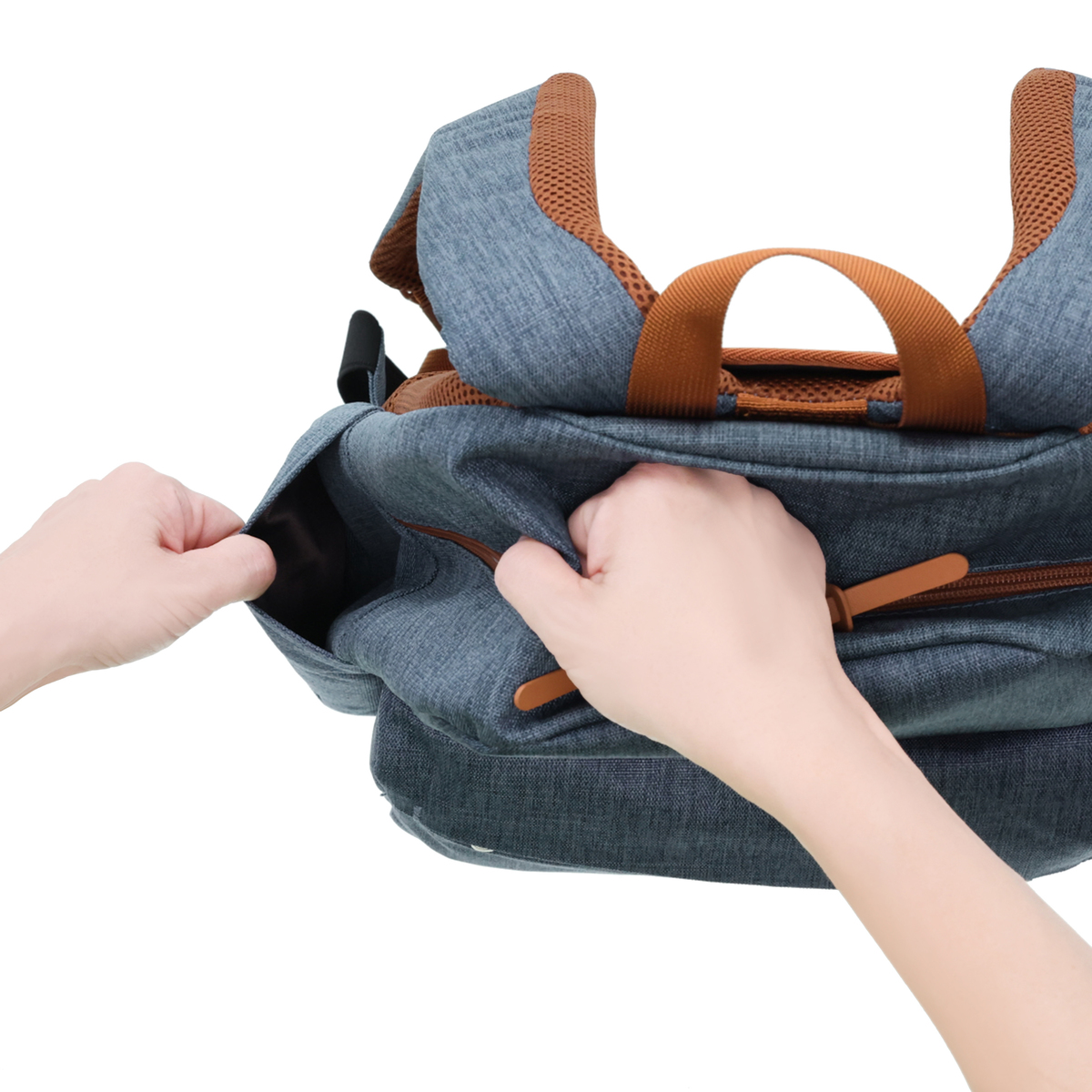 ペットボトルや折り畳み傘などを収納できる左右のサイドポケットをはじめ、お財布などの貴重品を収納するのにぴったりの背面ポケットなど、合計13カ所にポケット付き。小物を整理して収納できます