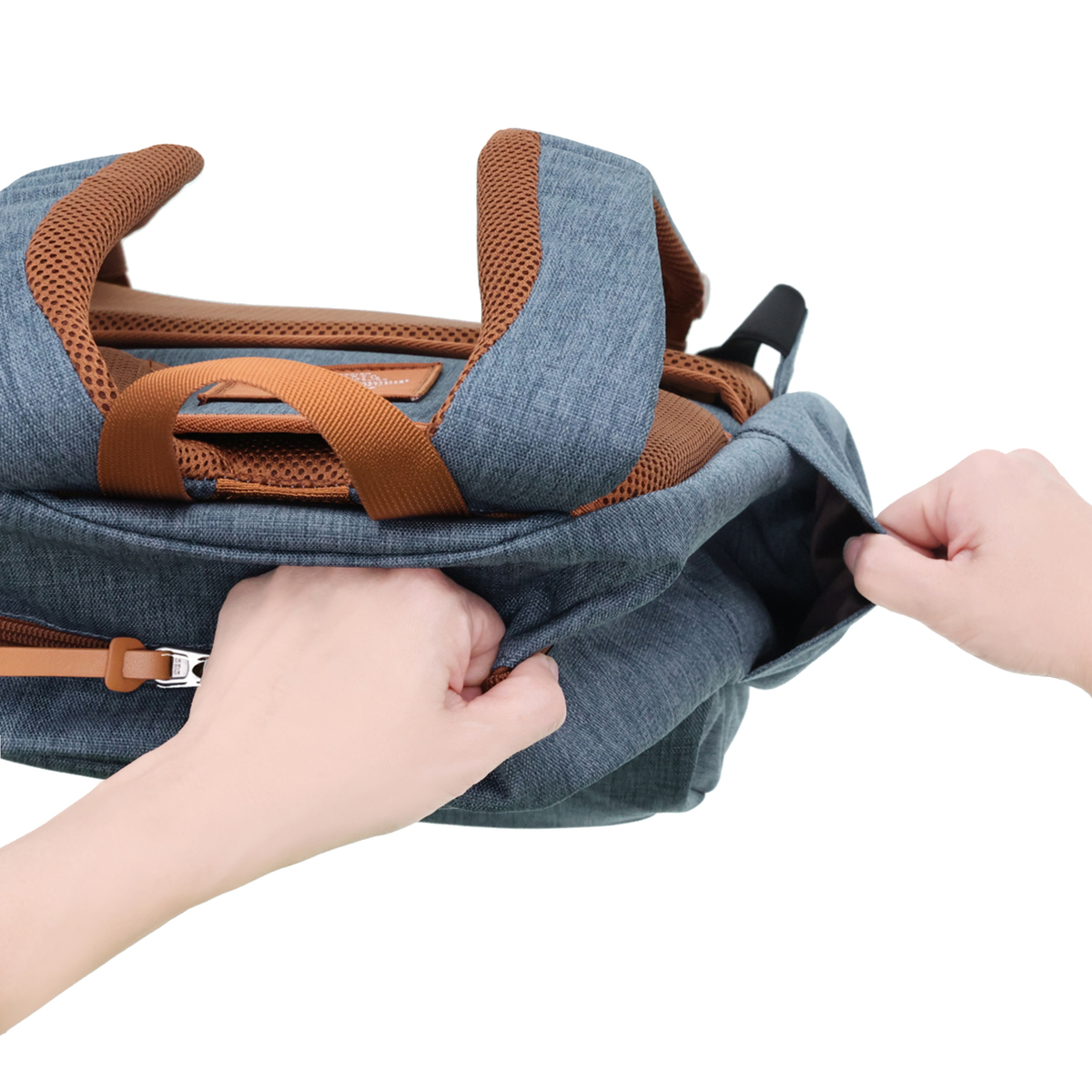 ANTI GRAVITY SYSTEM(AGS)機能を採用したリュック。伸縮性のあるショルダーストラップにより首や背中、腰への負荷を軽減します。伸縮性の強いゴムを利用し、上に弾む働きにより肩への圧力を軽減。サスペンションのように衝撃を吸収します