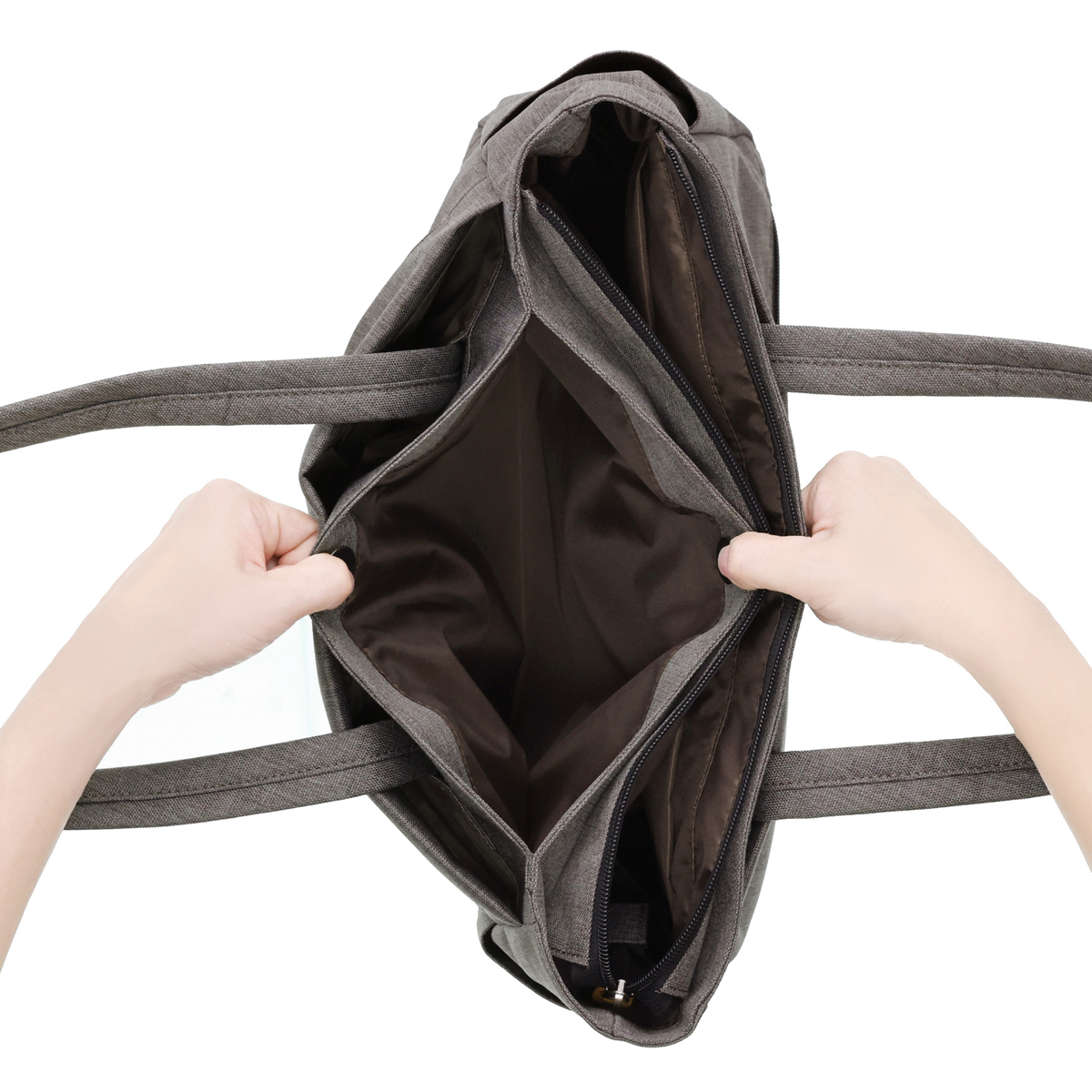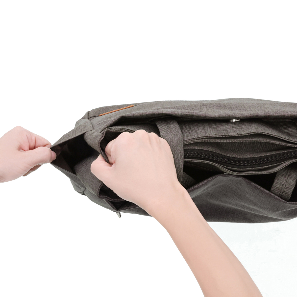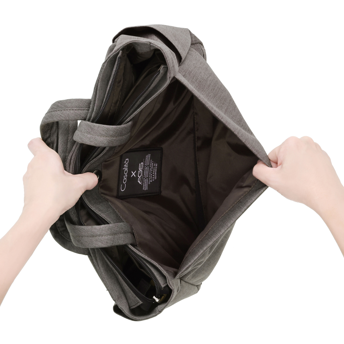 ANTI GRAVITY SYSTEM(AGS)機能を採用したトートバッグ。伸縮性の強いゴムを利用し、上に弾む働きにより肩への圧力を軽減。サスペンションのように衝撃を吸収します
