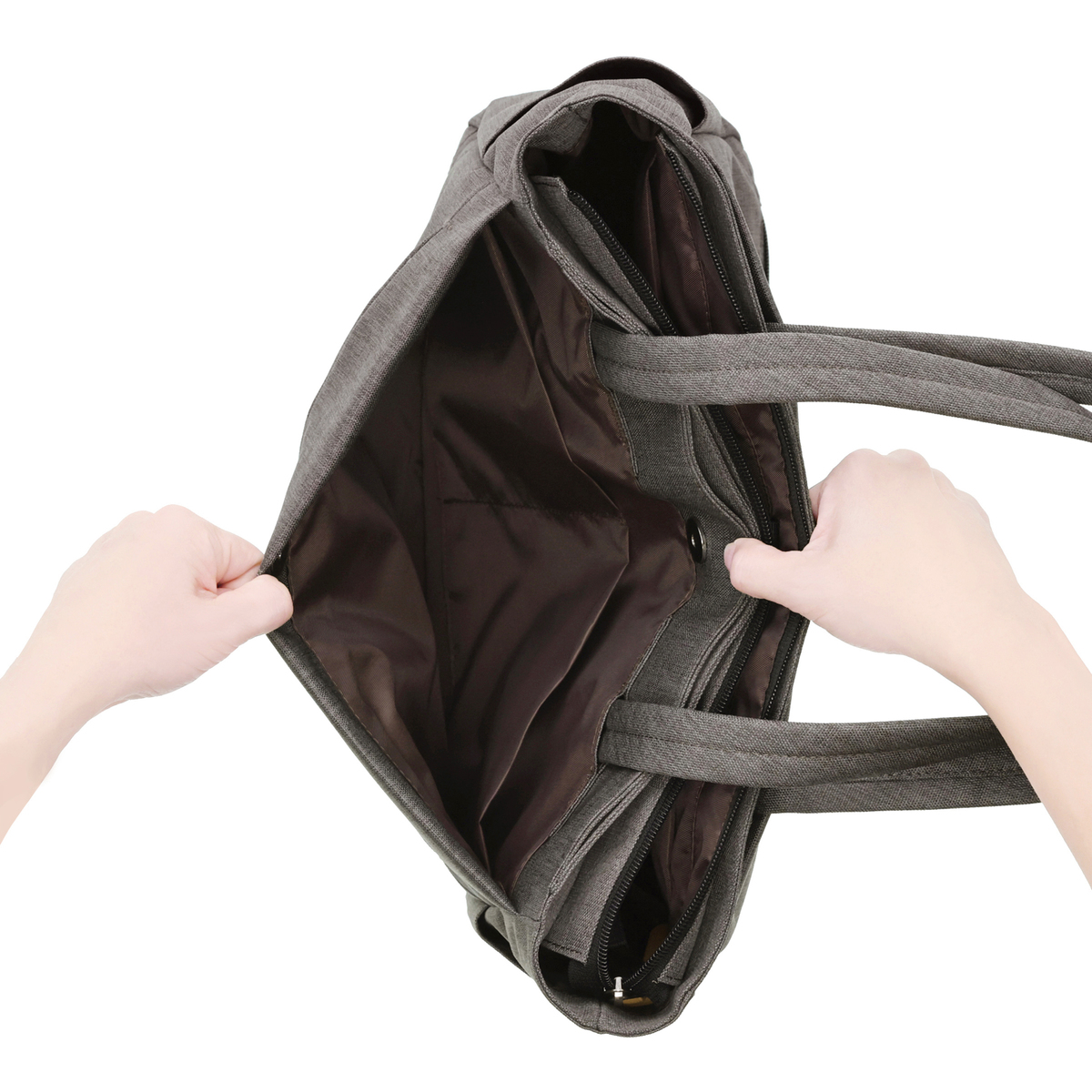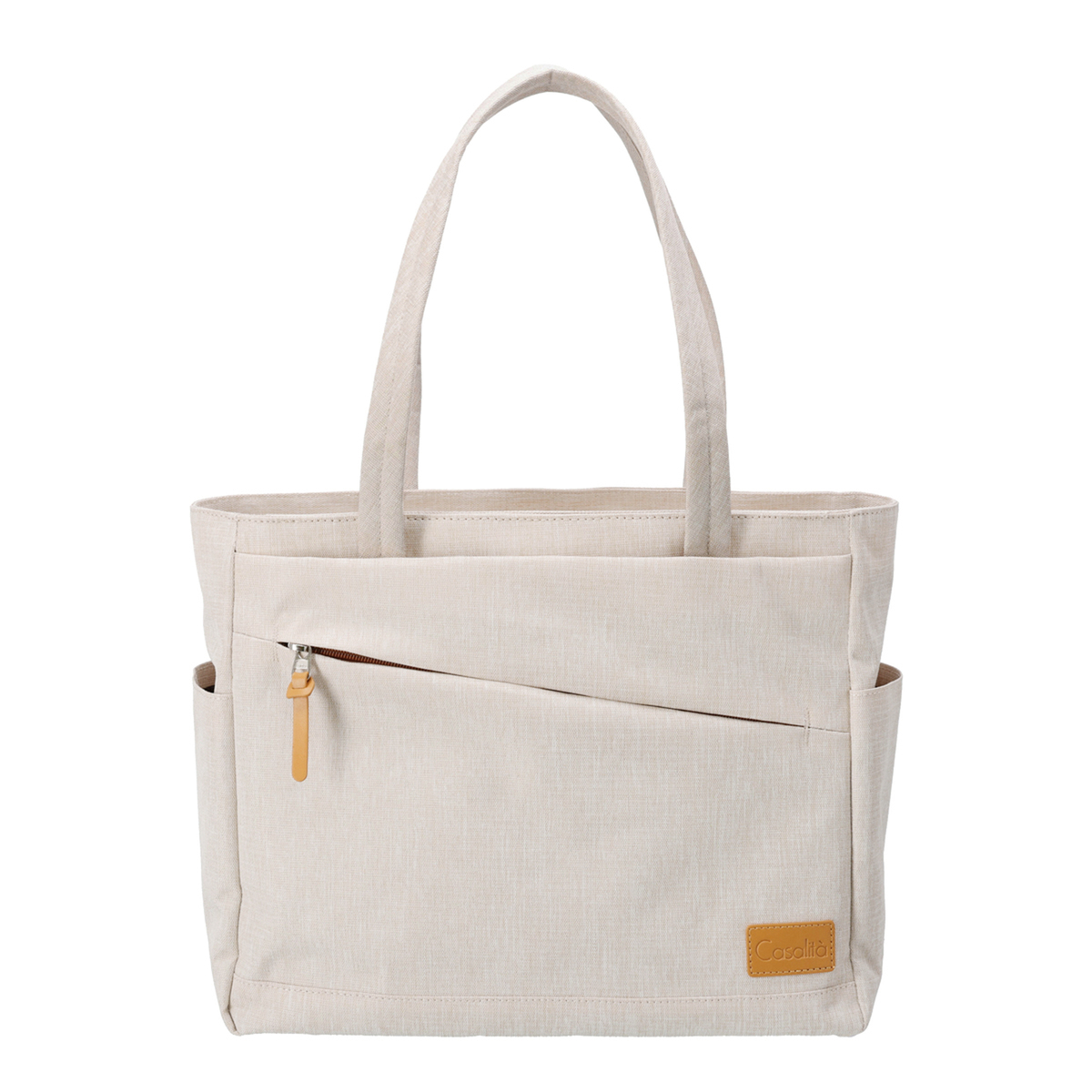 本体重量は約740gと軽量。生地表面には撥水加工を施しています(*)。A4サイズが収納でき、13.3inchのPCにも対応。マグネットボタンで開閉できるアオリポケット仕様で、書類などもスムーズに収納できます