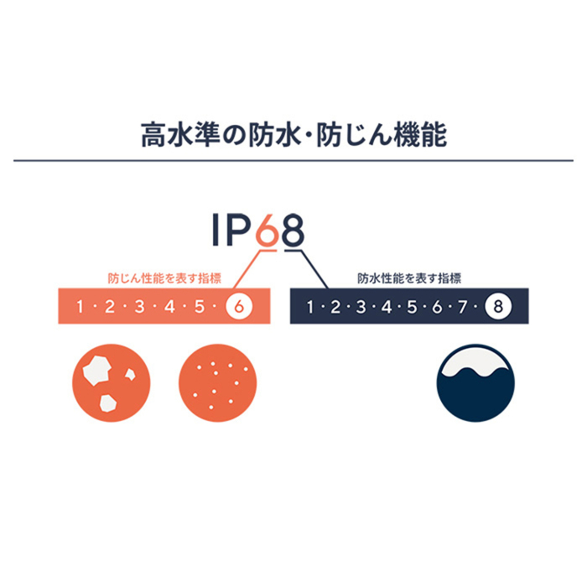 防水8級:継続的に水中に沈めた場合でも機器が影響を受けないもの