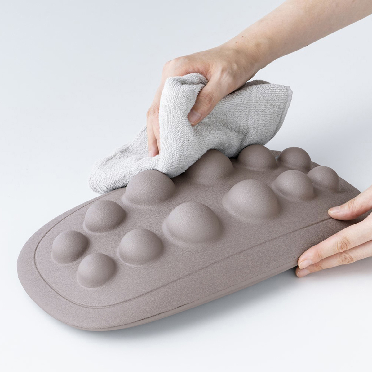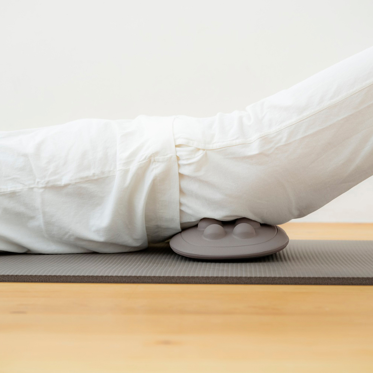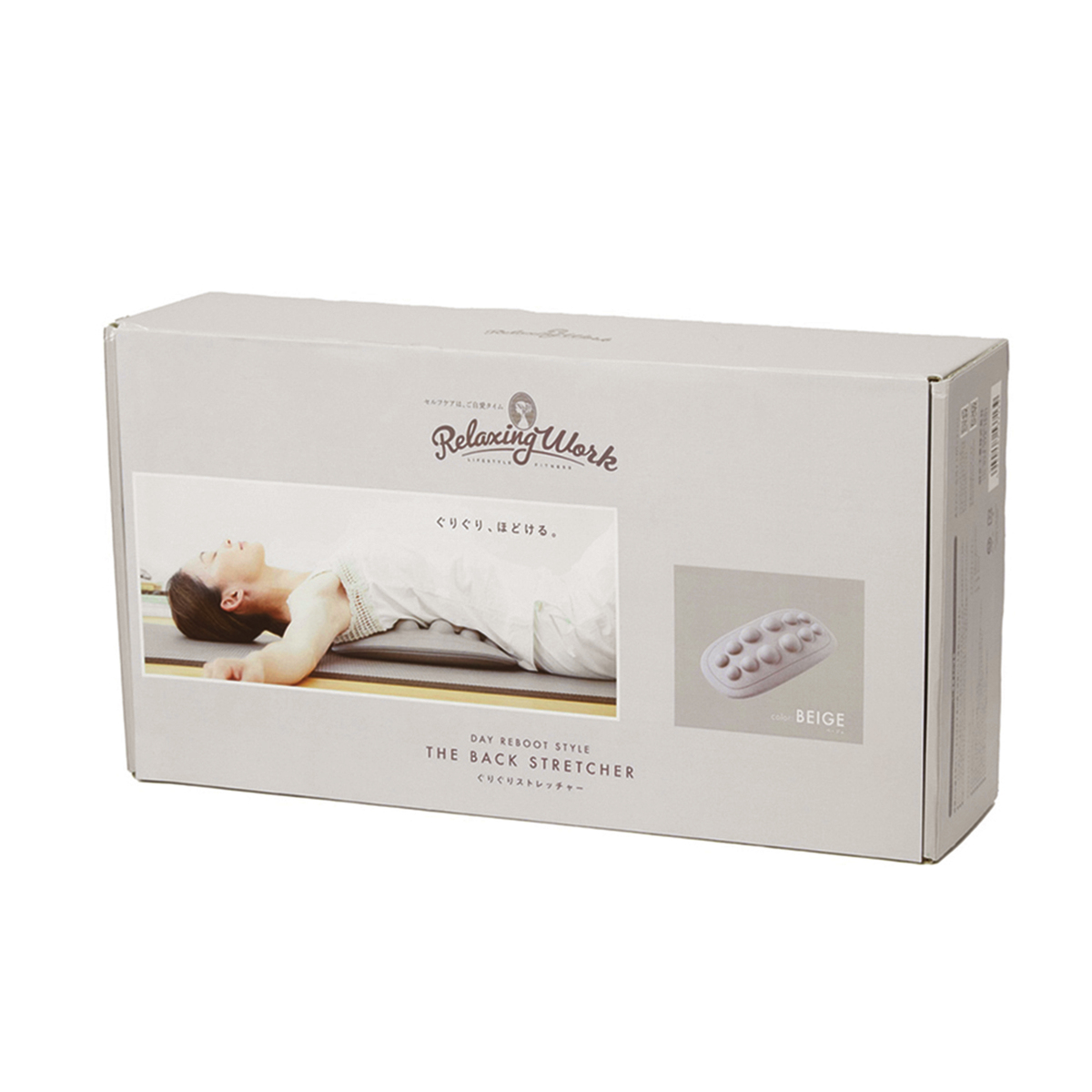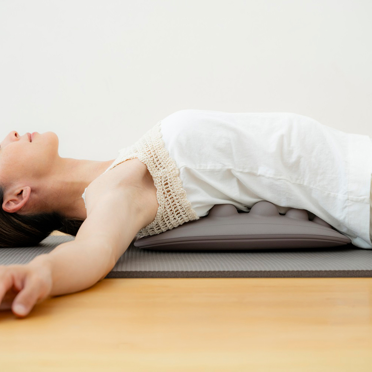 仰向けで乗ることで、大小12個の突起が背中を刺激するぐりぐりストレッチャー。縦横で方向を変えることで当て方をアレンジできます