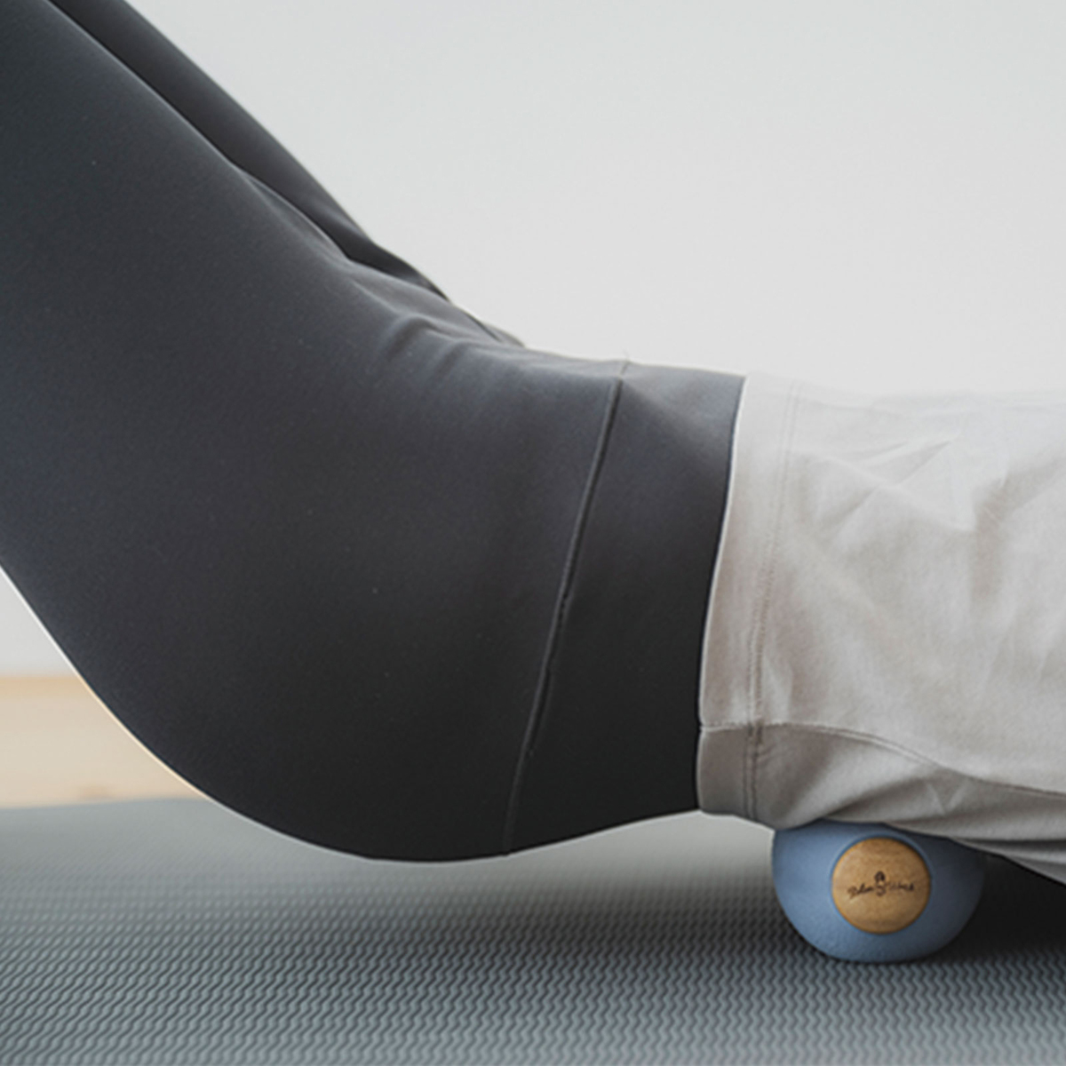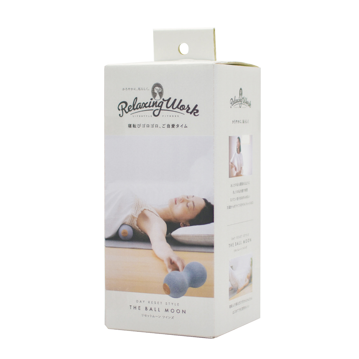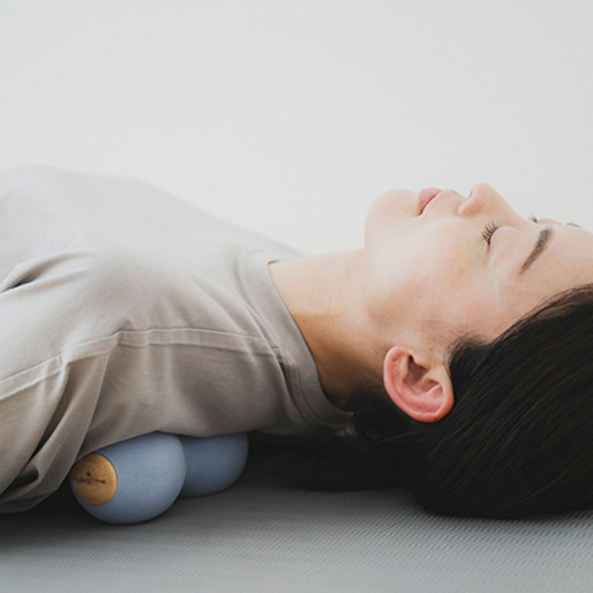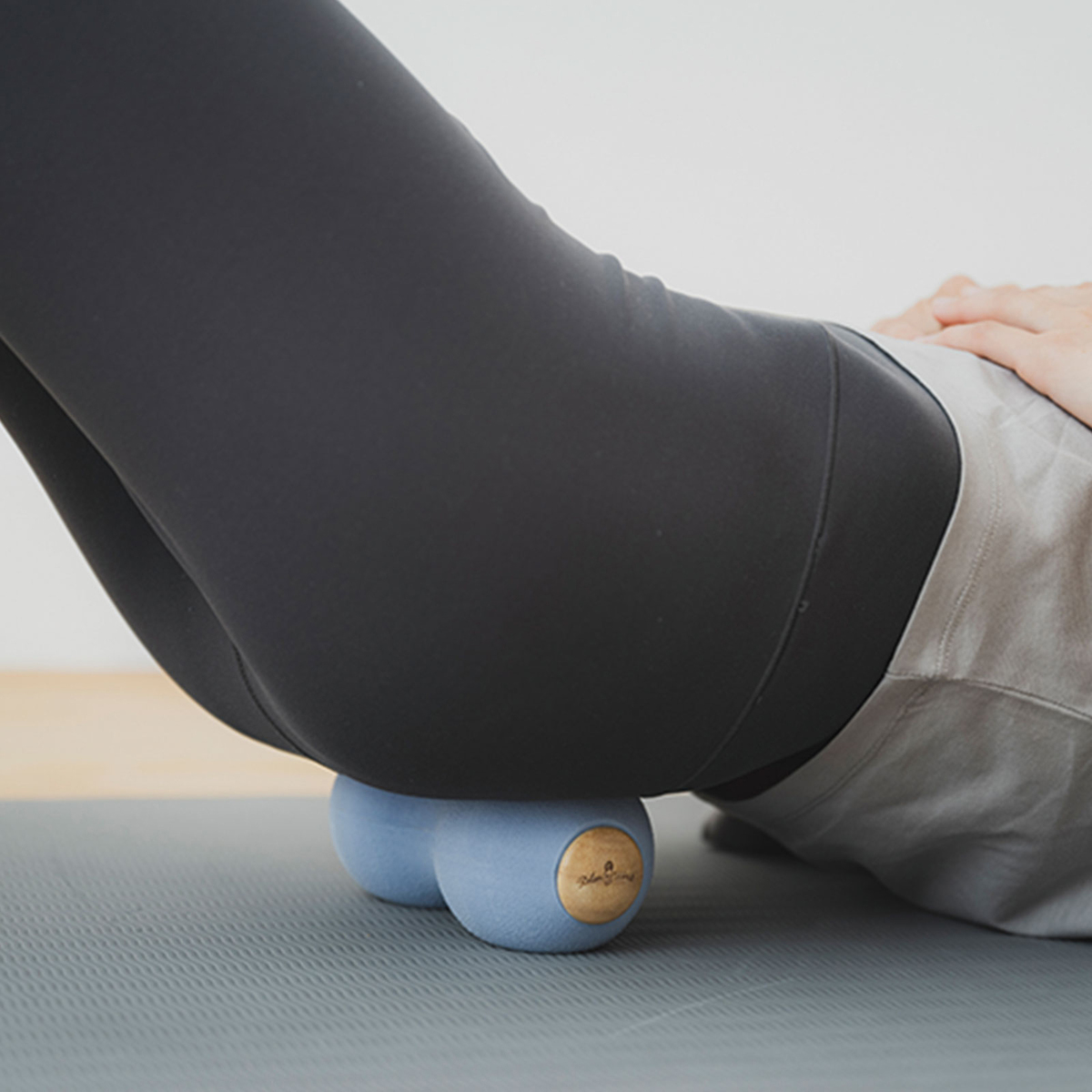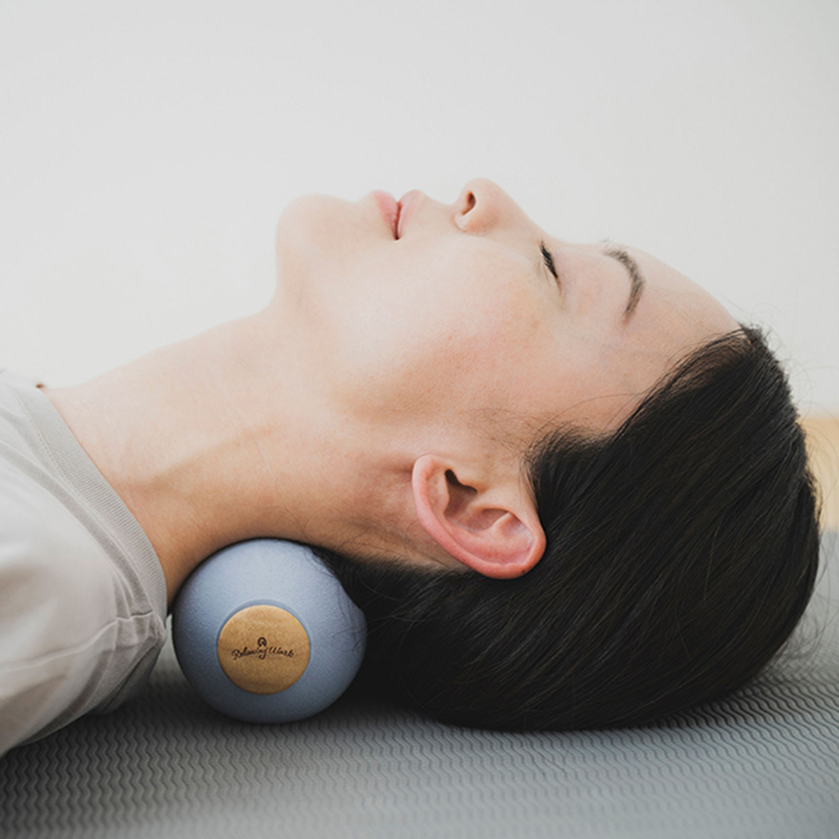 2つのテニスボールを合わせたくびれボール。本体を首、背中、肩等に当てて、ゆっくり体重を徐々にかけて、ほどよい気持ち良さを試しながら当ててお使いください
