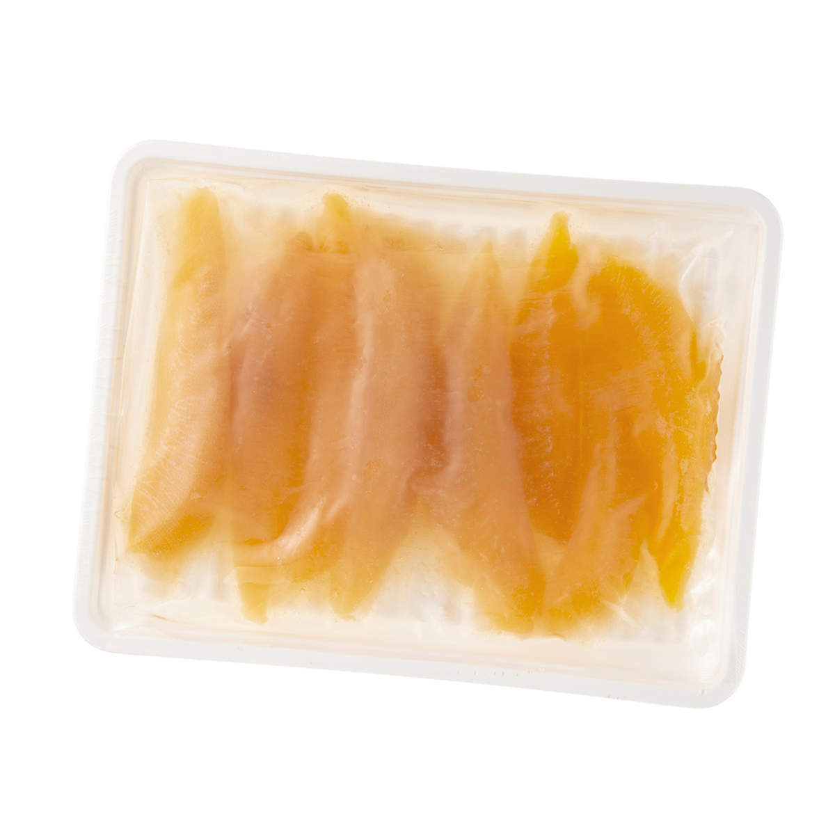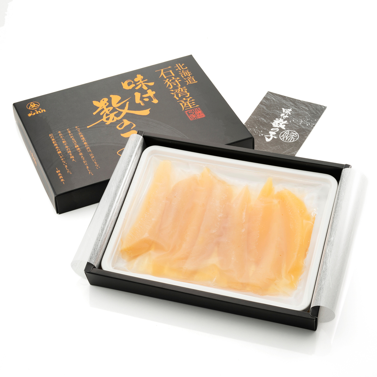 北海道石狩湾産のにしんから取り出した数の子を使用した、味付数の子です。昆布風味の醤油ベース調味液で漬込みました。無漂白にこだわり、数の子本来の自然な色合いや、旨味を味わえます