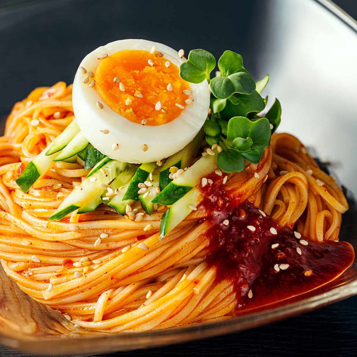料理研究家J.ノリツグさんがレシピ監修した万能ジャン。挽き方の異なる2種類の韓国産唐辛子を使用。長期発酵熟成(1年以上)させた、発酵アミ塩辛(アミエビ、アキアミ)*を使用し(製品全体で約0.13%)、旨味やコクを引き立てています。そのままかけて、また料理の隠し味としてもお使いください