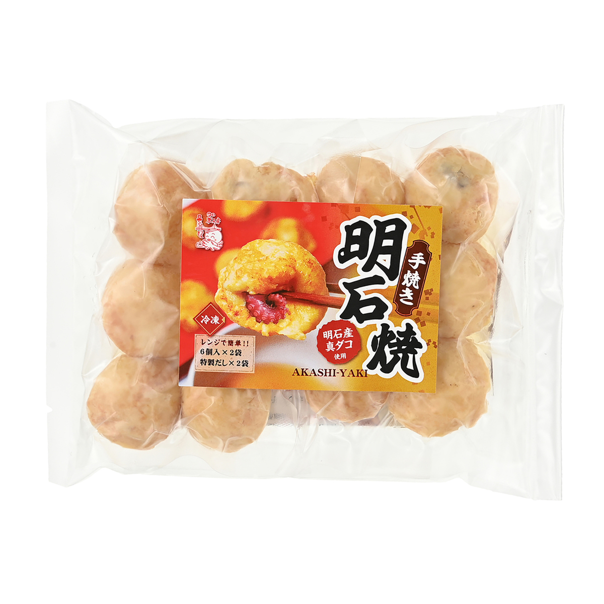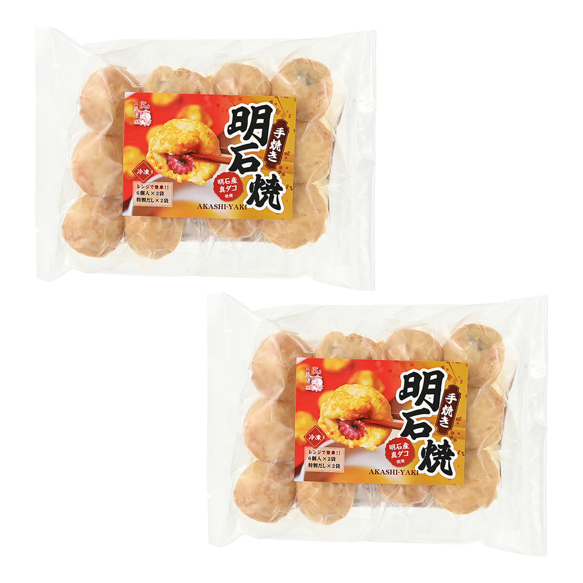 [アレルギー物質特定原材料8品目] 卵、小麦 [内容量] (23g(6玉×2)、だし汁(40ml×2))×2袋 [賞味期限] 出荷時点で賞味期限まで120日以上ある商品をお届けします [保存方法] 開封前:冷凍(-18℃以下)で保存してください 開封後:お早めにお召し上がりください [お召し上がり方] 1.冷凍庫からあかし玉子焼(明石焼)を取り出し、はさみで袋に2、3cm程度切り込みを入れてください。(蒸気抜きのため) 2.電子レンジで温めます。500W:約6分、700W:約5分20秒 3.温めたあかし玉子焼(明石焼)を袋から取り出します 4.添付の「特製だし」の袋をはさみなどで切り、中身を何個かに割って小鉢などに入れ、電子レンジで温めます(目安:500W 約1分、700W 約40秒) (袋のまま湯煎もできます)固まりが溶け、温かくなれば完成です 5.温めたあかし玉子焼(明石焼)を温めた特製だしに浸してお召し上がりください ※温めすぎはあかし玉子焼(明石焼)の表面が堅くなる場合がございます ※ご利用条件(レンジ機種等)により、温まり時間に若干の誤差がございます [注意事項] ※本商品は、1つ1つ丁寧に手焼き製造されておりますので、商品の一部に焼きむらがあったり、焦げの様なものがありますが商品に問題はございません ※調理後は高温になっているのでやけどに十分ご注意ください ※一度解けたものを再び凍らせると品質が変化することがあります [原料原産地] 明石焼:鶏卵(国内産)、真蛸(兵庫県明石産)、小麦粉(小麦(国産)) だし汁:魚介エキス(国内製造) [原産国] 日本 [原材料] <明石焼> 鶏卵(国内産)、真蛸(兵庫県明石産)、小麦粉(小麦(国産))、澱粉、醤油、植物油脂/調味料(アミノ酸等)、(一部に卵・小麦・大豆を含む) <だし汁> 魚介エキス(国内製造)、醤油、みりん、清酒、食塩、砂糖、かつおぶし、さばぶし/調味料(アミノ酸等)、酸味料、(一部に小麦・大豆・さばを含む)