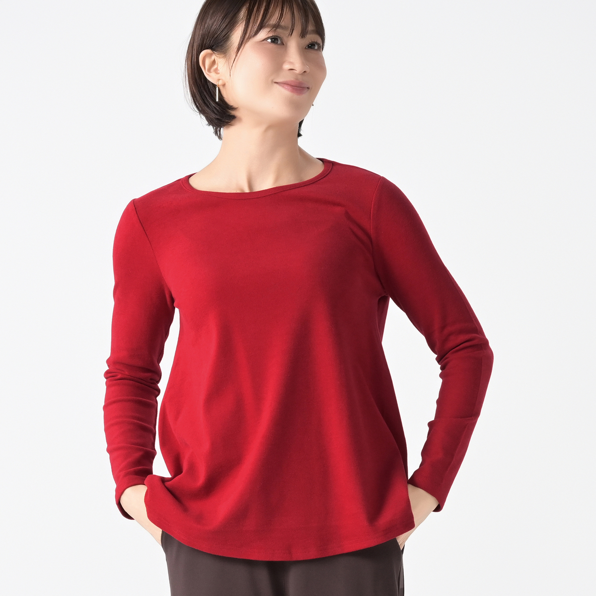 素材にこだわって仕上げたロングスリーブプルオーバー。シンプルながら存在感のある一着で、デニムやスカートとの組合せも自在、着回し力抜群です