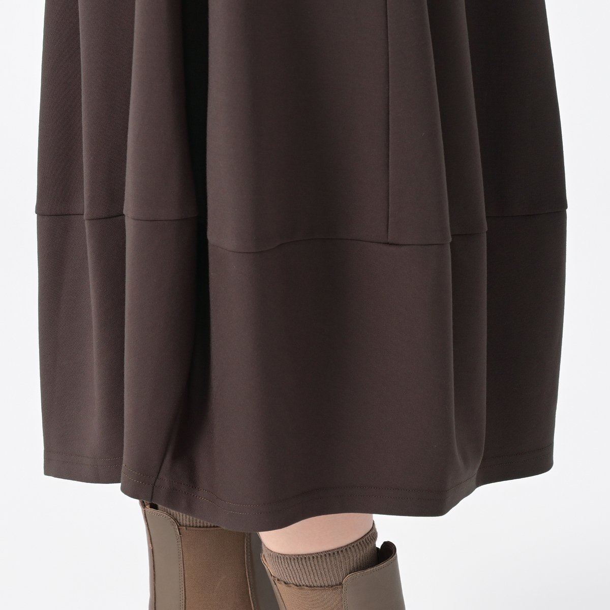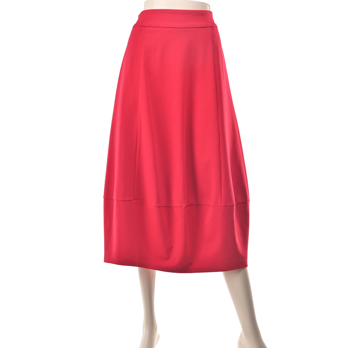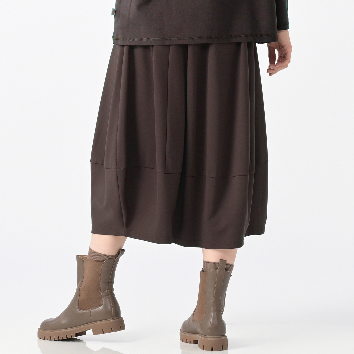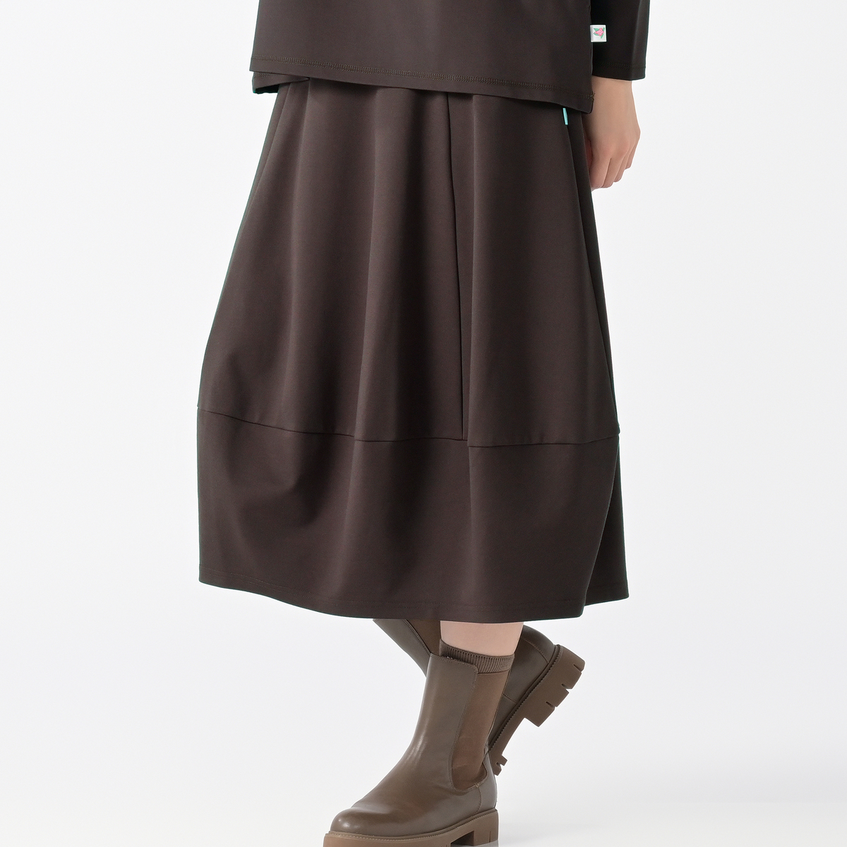 フェミニンな丸みを描くコクーンシルエットのスカート。きれいめポンチ素材で仕立て、ポケット付きで便利、ウエストは後ろゴムでラクなのにすっきり見え。洗濯機洗いできる手軽さもあるので、忙しい日もきれいをキープできます