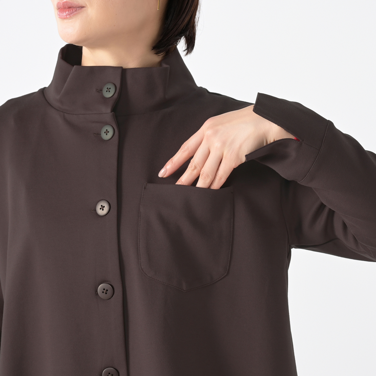 きれいめなポンチ素材を使用したワイドシルエットのジャケット。ゆったりとしたつくりで着心地の良いアイテムです
