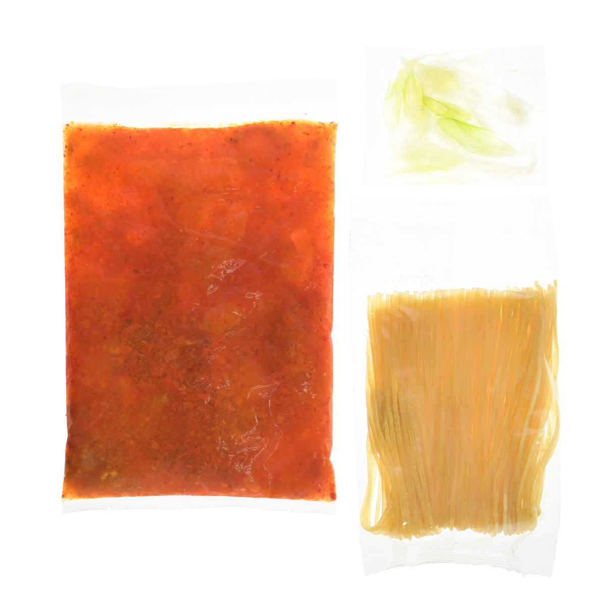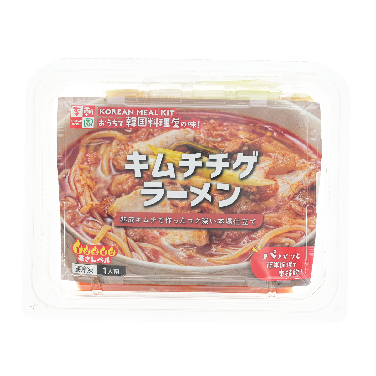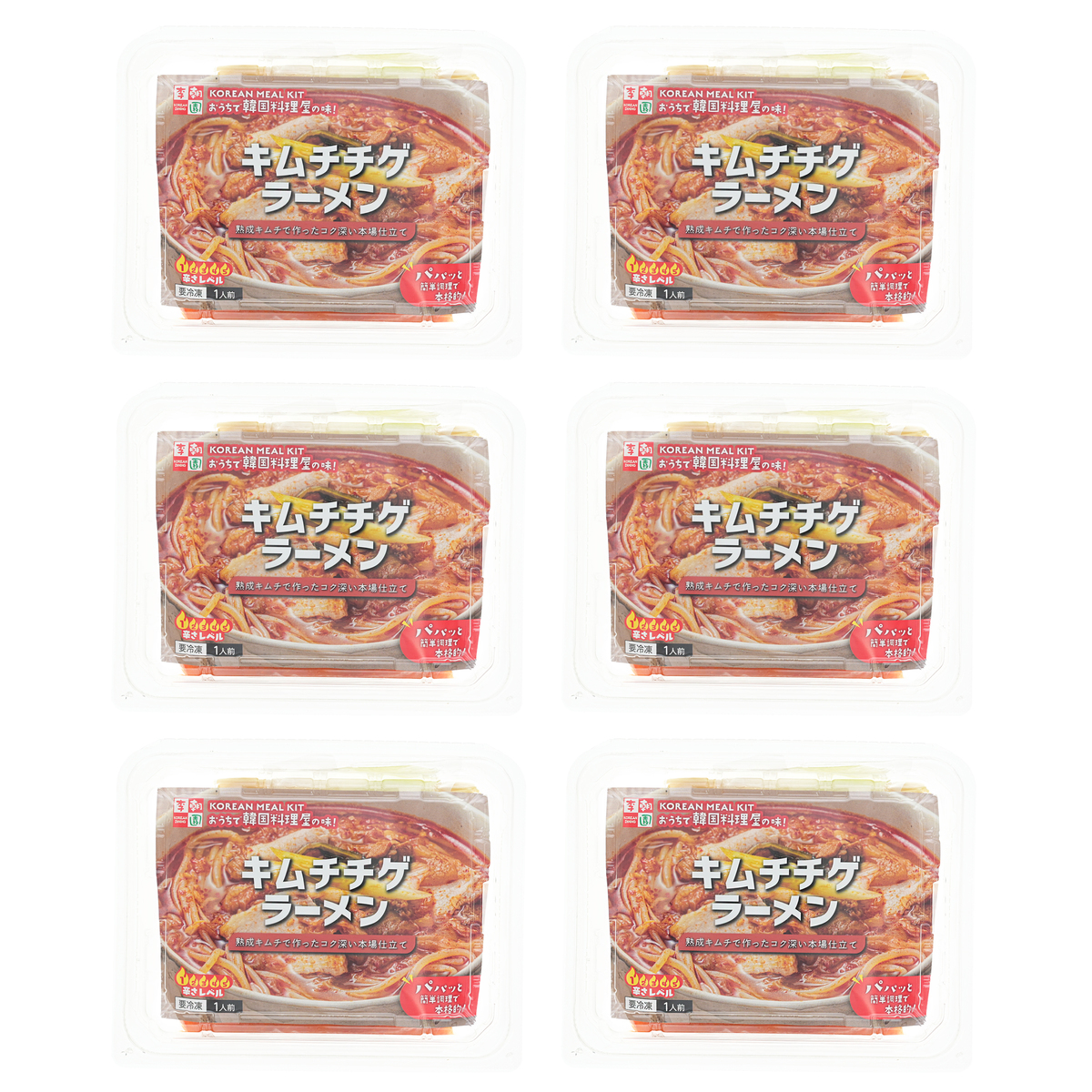 [アレルギー物質特定原材料8品目] 卵、小麦、乳、えび [内容量] 6袋 [賞味期限] 出荷時点で賞味期限まで60日以上ある商品をお届けします [保存方法] 開封前:要冷凍ー18℃以下 開封後:お早めにお召し上がりください [お召し上がり方] スープを流水または事前に冷蔵庫に移して解凍してください 1.スープを温める キムチチゲスープを鍋に移し、白ねぎを加えて中火にかける 2.麺を茹でる 別の鍋にたっぷりのお湯を沸かし、沸騰したら中華麺を約3分茹で、流水でさっと洗いぬめりを取る。麺がぬるくなるので、お湯をかけてあたためる 3.盛り付ける 水気を切った麺を器に盛り、スープを注ぐ [注意事項] ※解凍後の再凍結は品質劣化の恐れがありますので、お避けください ※解凍、開封後は賞味期限にかかわらず、お早めにお召し上がりください [原料原産地] スープ:白菜キムチ(国内製造) めん:小麦粉(国内製造) 白ネギ(国産) [原産国] 日本 [原材料] ●スープ:白菜キムチ(国内製造)、豚バラ肉、玉ネギ、発酵調味料、醤油、米味噌、唐辛子粉、砂糖、ニンニク、食塩、牛ダシダ、水飴、みりん、りんご、青唐辛子、エビパウダー、昆布/調味料(アミノ酸等)、酒精、酸味料、香料、(一部にえび・小麦・乳成分・いか・牛肉・大豆・豚肉・もも・りんごを含む) ●めん:小麦粉(国内製造)、卵たん白、食塩/かんすい、酒精、ソルビトール、着色料(クチナシ)、(一部に小麦・卵を含む) ●白ネギ(国産)