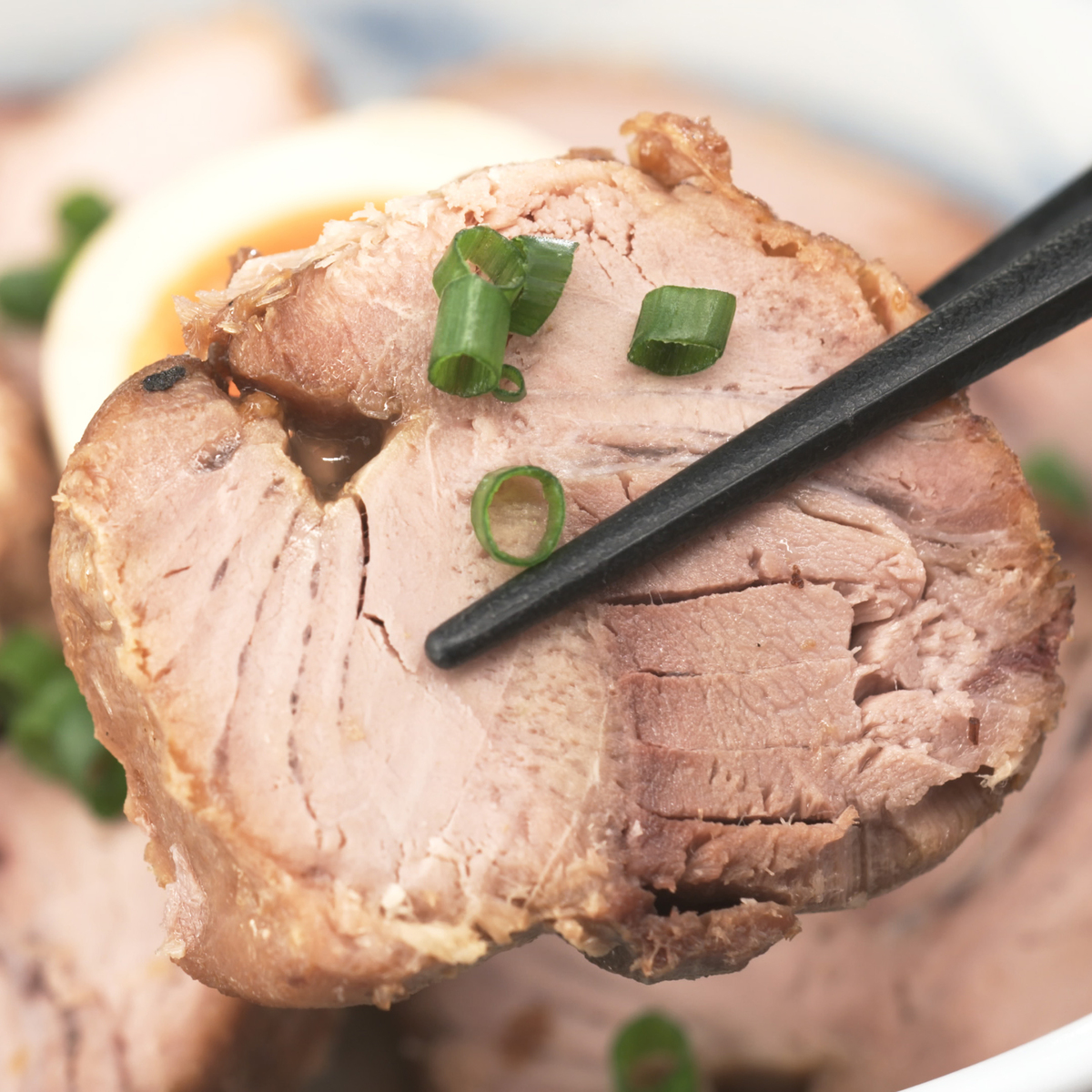本鮪の身を巻き重ねてチャーシューに成型。ラーメンのトッピングやお酒のお供に。チャーハンの具材などに使って美味しく。魚のチャーシューがあっても良いのではという発想から生まれた、従業員のアイデアが商品化された商品です