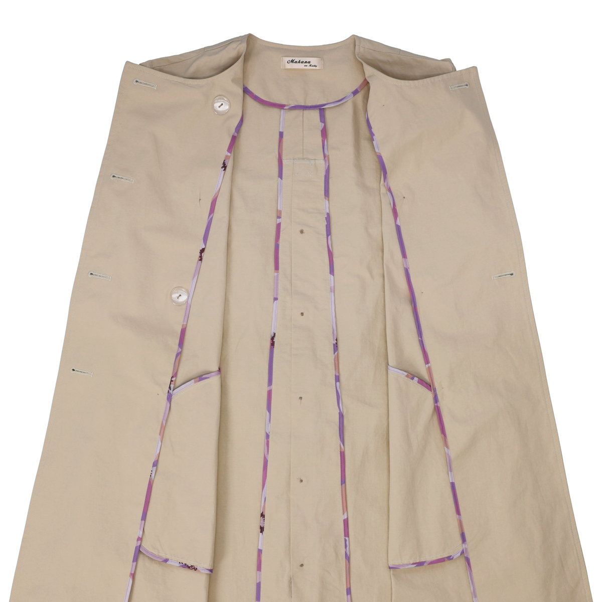 ヴィンテージタフタを使用。程よいワッシャー感でこなれた雰囲気を引き出します。ピーチスキンのようななめらかな表面が上品さを添え、柔らかな手触りながら適度なハリがあり、シルエットをきれいに構築します