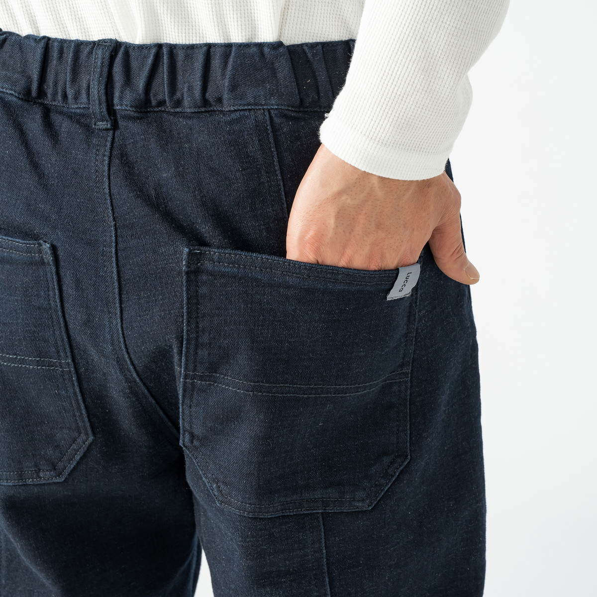 裏起毛のストレッチデニムパンツです。ヒップまわりはゆとりを持たせ、裾にかけてすっきりとしたテーパードラインに。ルッカらしい定番のシルエットが、動きやすさときれいなラインを両立します