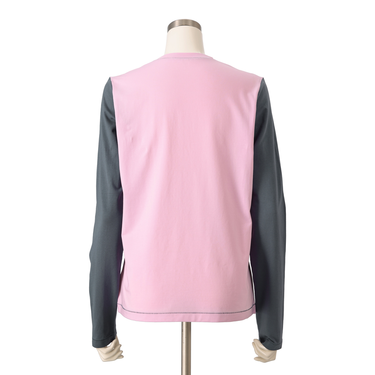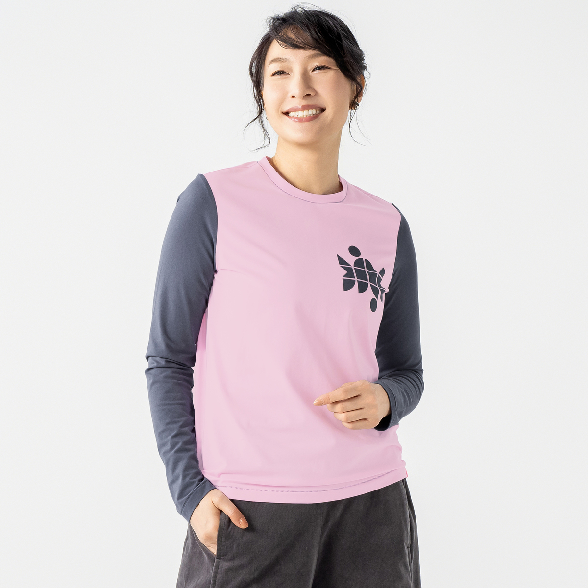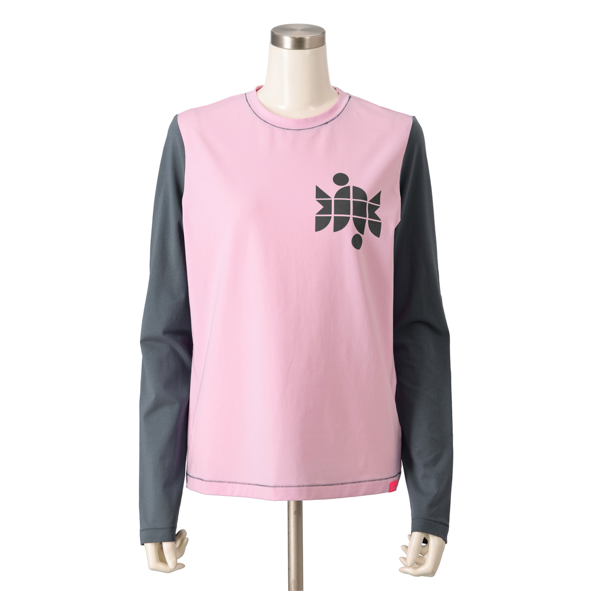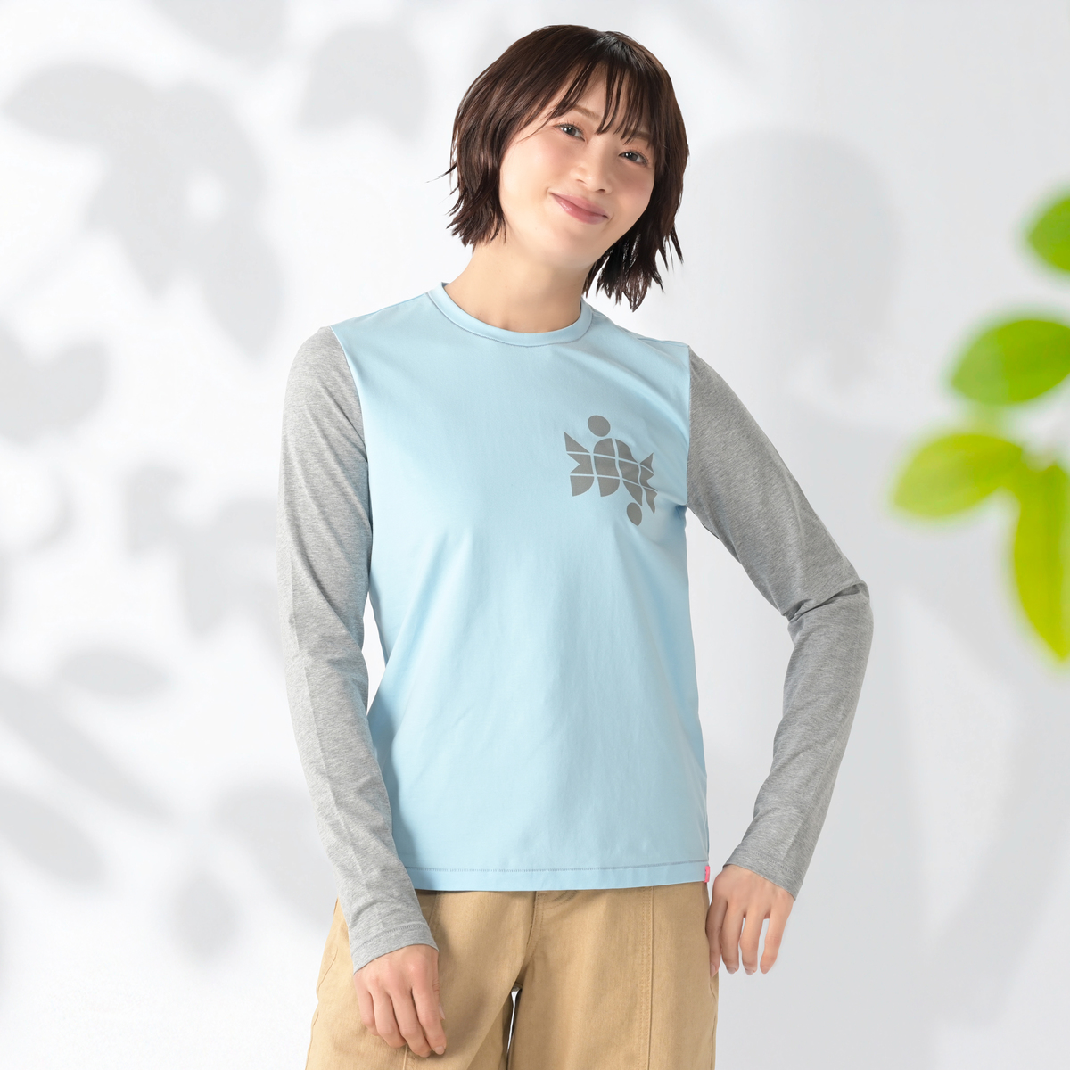 綿ベア天竺を使用した袖配色プルオーバー。左胸のKiKKiロゴプリントがさりげないアクセントに。シンプルながらも配色デザインが華やかさを添え、一枚でも重ね着でも楽しめるアイテムです