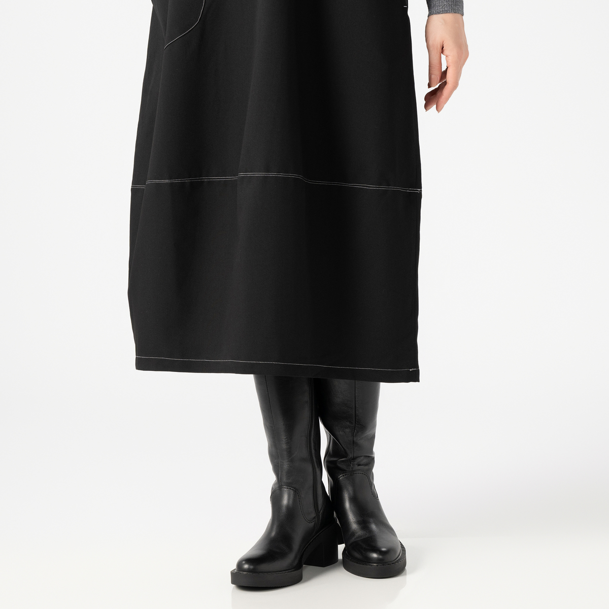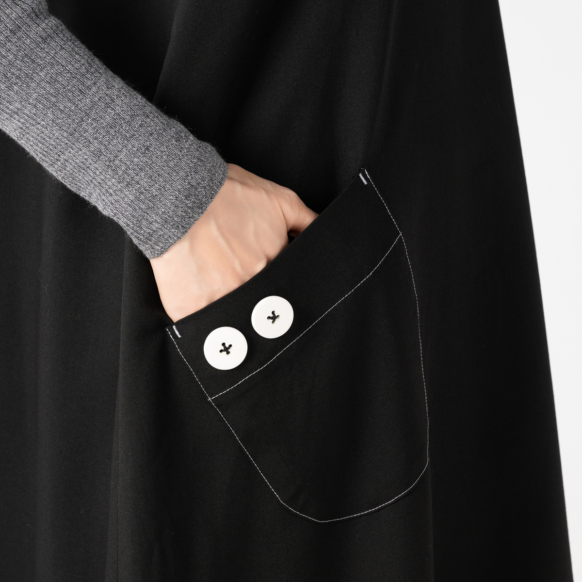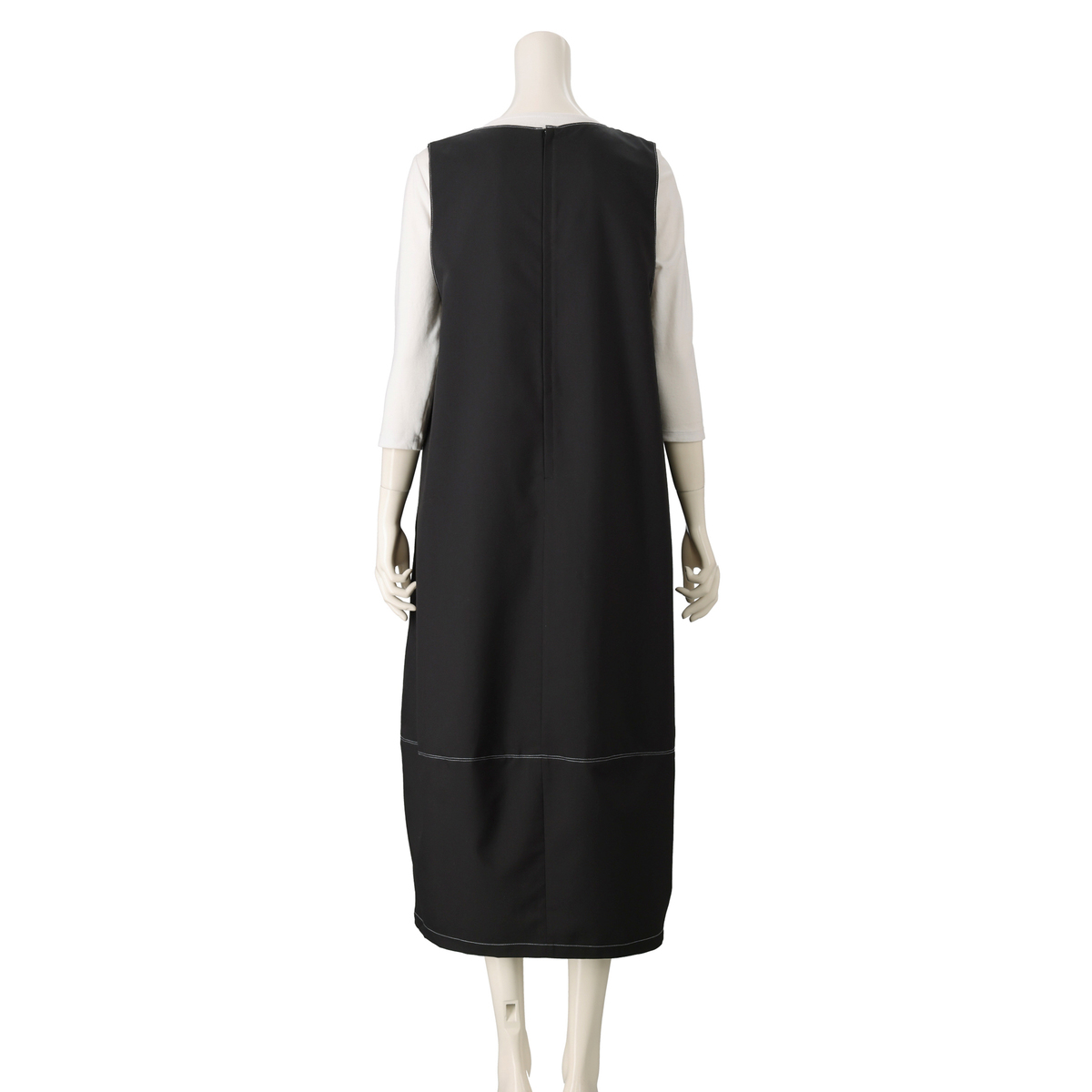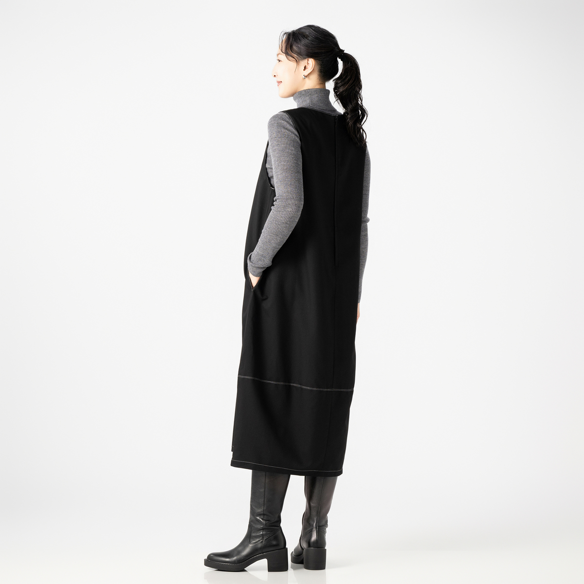 コクーンシルエットがやさしい印象を与えるジャンパースカート。丸みのあるラインで体型を自然にカバーし、リラックス感のある着心地です