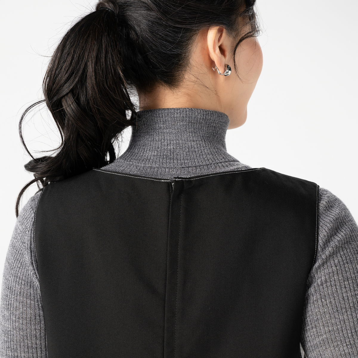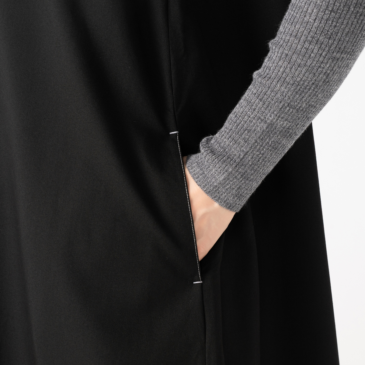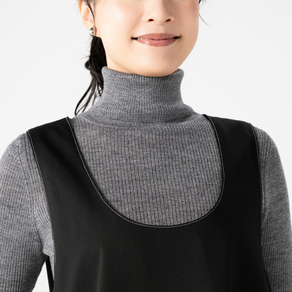 ハイネックインナーやプルオーバーと合わせるだけで、簡単にコーディネートが完成。インナー次第で雰囲気が変わり、日常のさまざまなシーンに活躍します