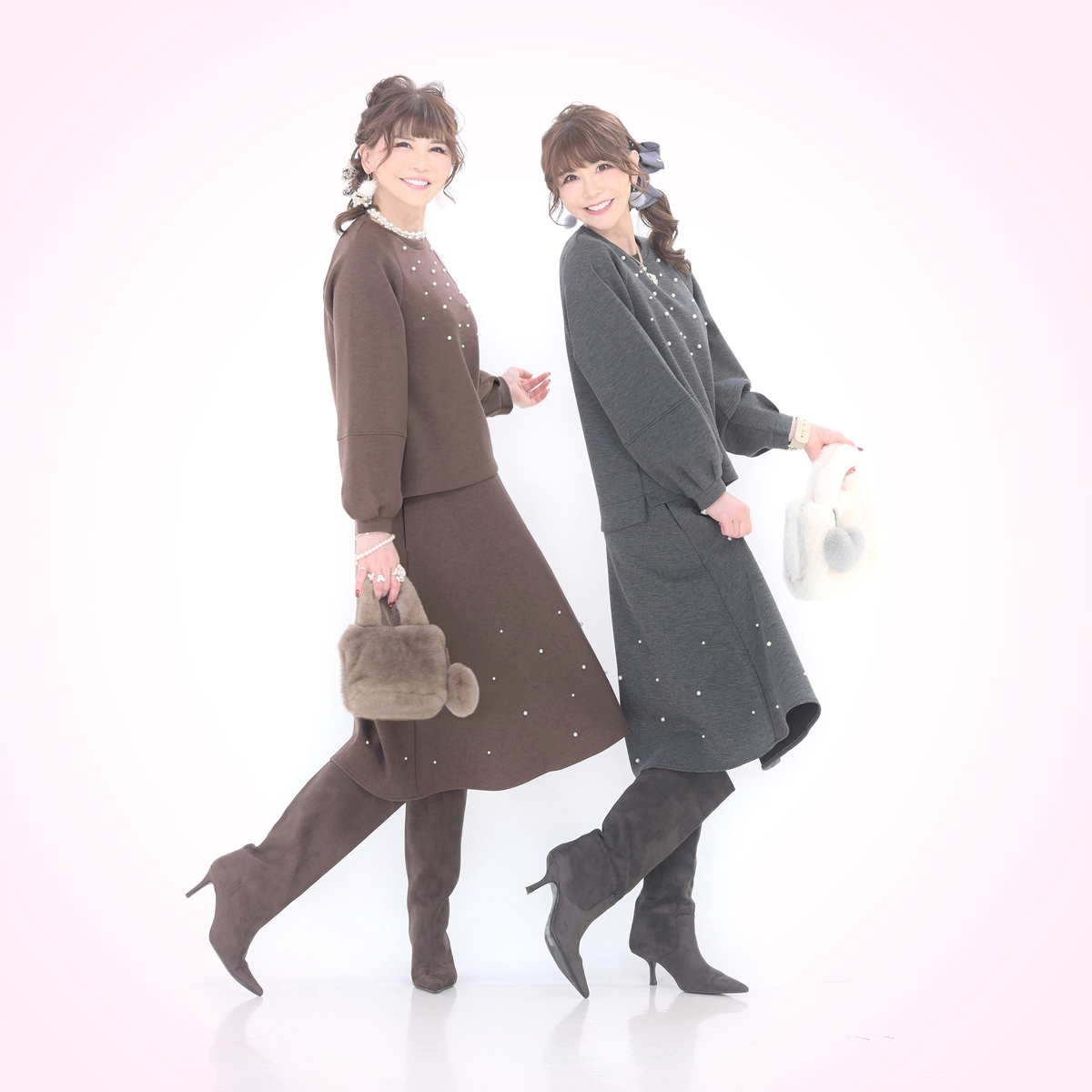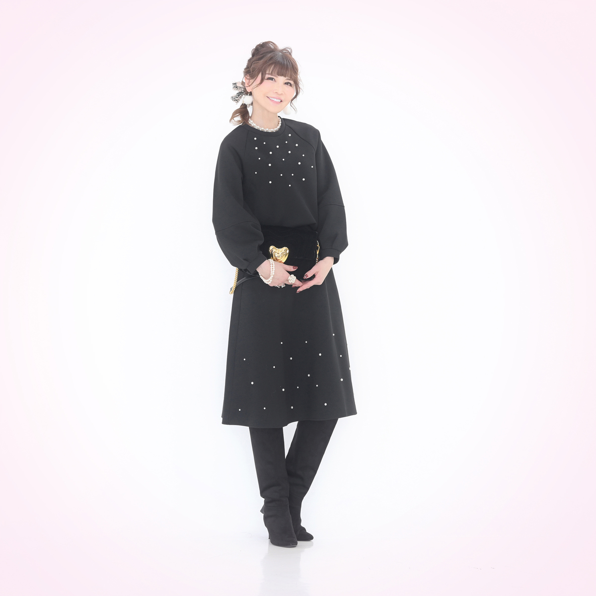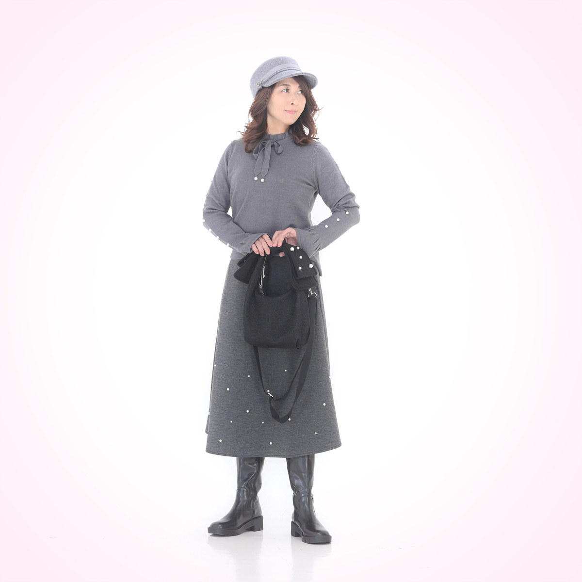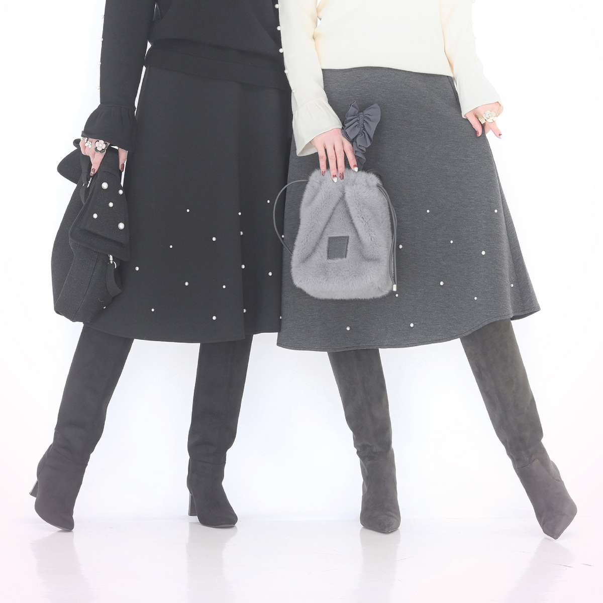 程よい分量感で、ふんわり揺れる裾がエレガントでフェミニンなフレアスカート。異なる2サイズのパール調ビジューをバランスよくランダムにあしらい、動くたびにさりげなく輝きます