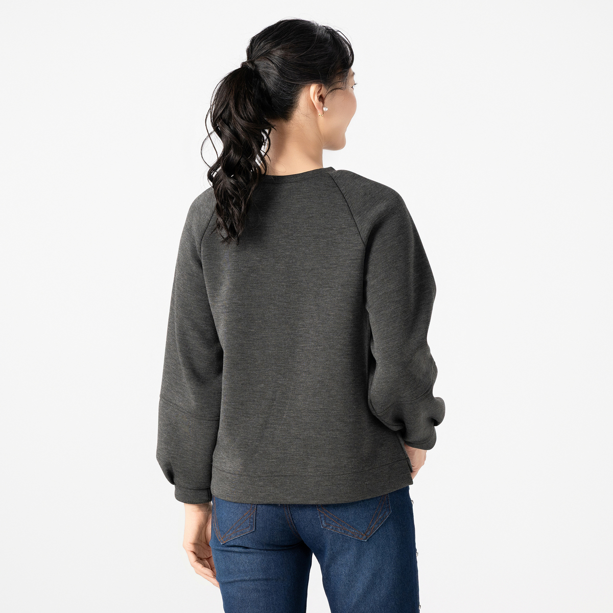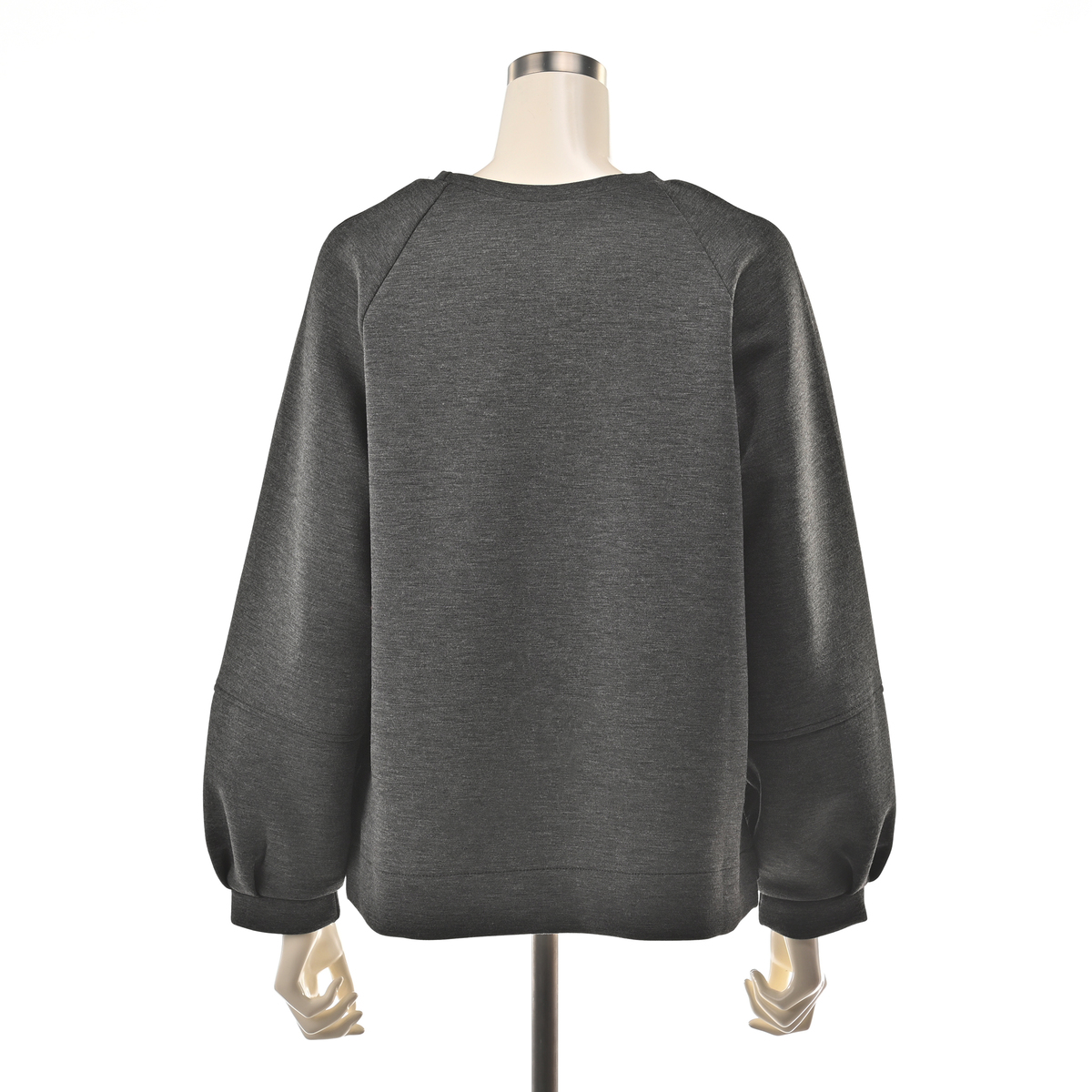 ゆとりのあるボックスシルエットが体のラインを拾いにくく、ヒップ上の丈感でコーディネートしやすい一枚。ラグランスリーブとふんわり広がるランタンスリーブがフェミニンさと動きやすさをプラスします