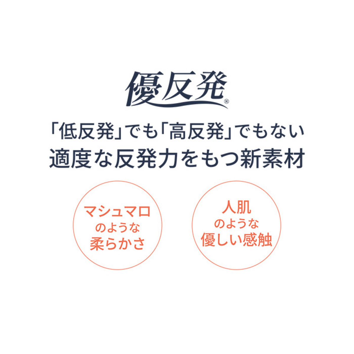 理想的な寝姿勢とスムーズな寝返りをサポートする優反発マットレス。「低反発」でも「高反発」でもない適度な反発力を持つ、独自の製造法で生まれた新素材「優反発」ウレタンフォームを採用。マシュマロのような柔らかさで、人肌のぬくもりのような優しい感触が特徴です