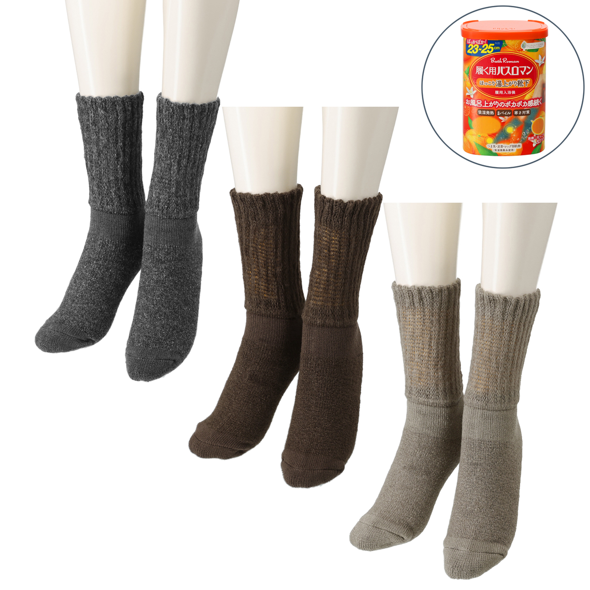 [セット内容] チャコール/ブラウン/ベージュ ・付属箱 [サイズ] 23〜25cm [素材] アクリル、レーヨン、ポリエステル、ナイロン、合成繊維(ホットハウス(R))、ポリウレタン [お手入れ] 洗濯機洗い可 【中国製】