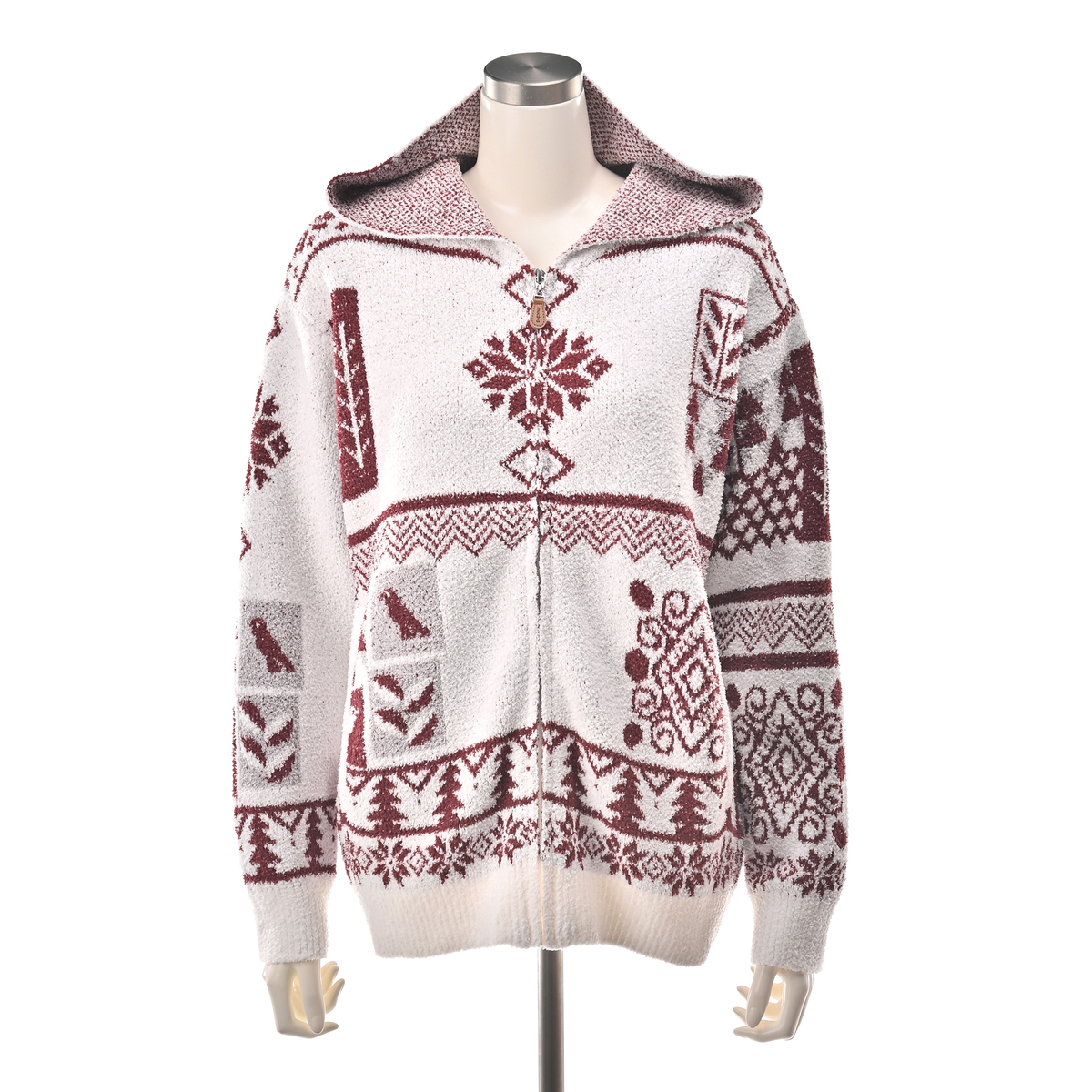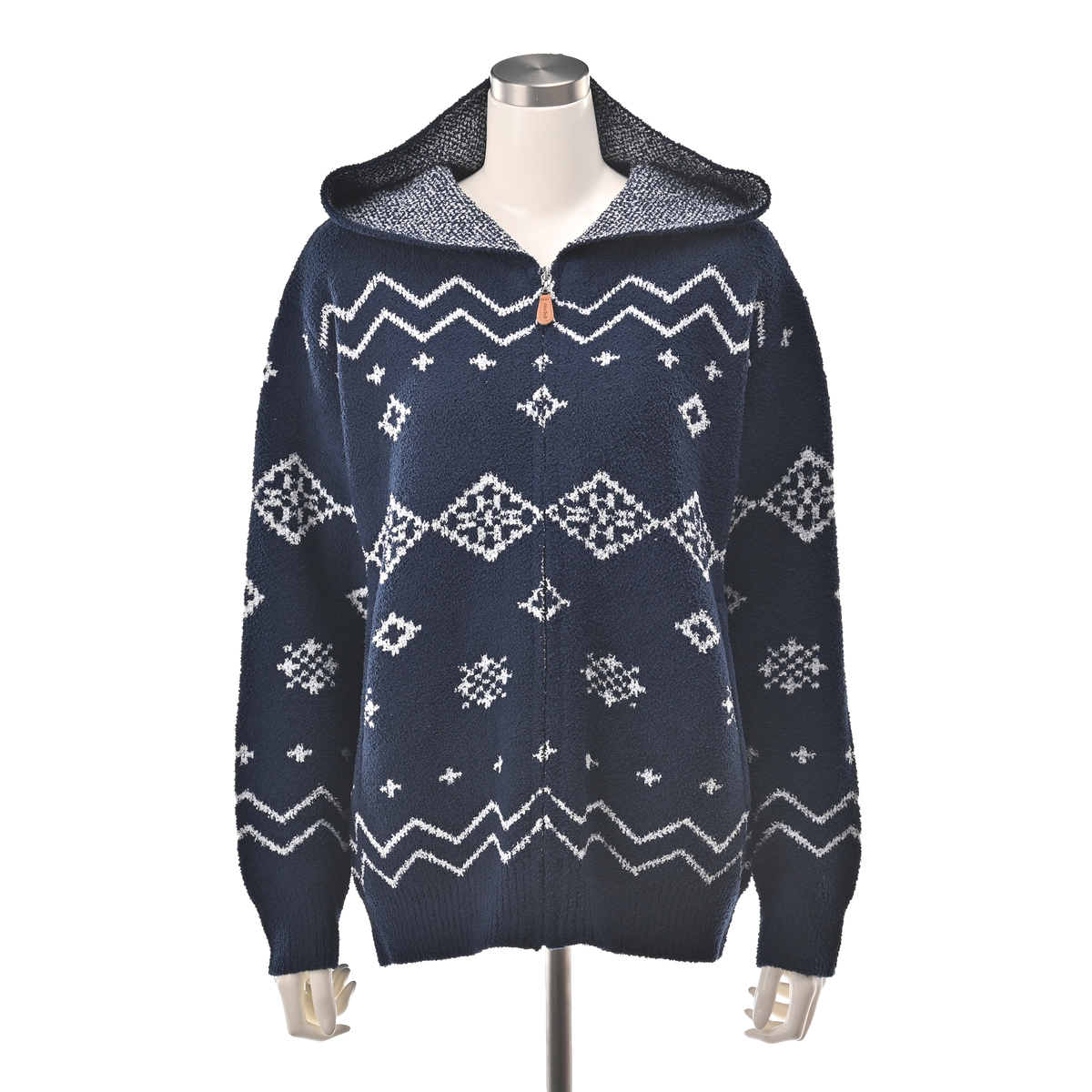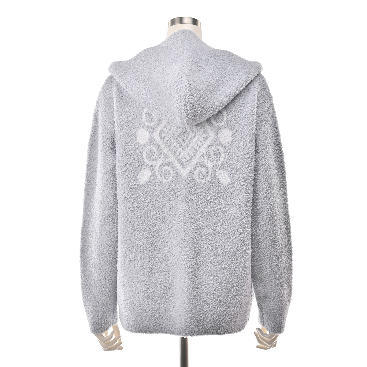 フィンランドの雪の結晶や森をモチーフにした、伝統的なノルディック柄を全面にデザイン。北欧らしい温かみと華やかさを纏い、お部屋着でありながら大人の洗練を感じられるアイテムです